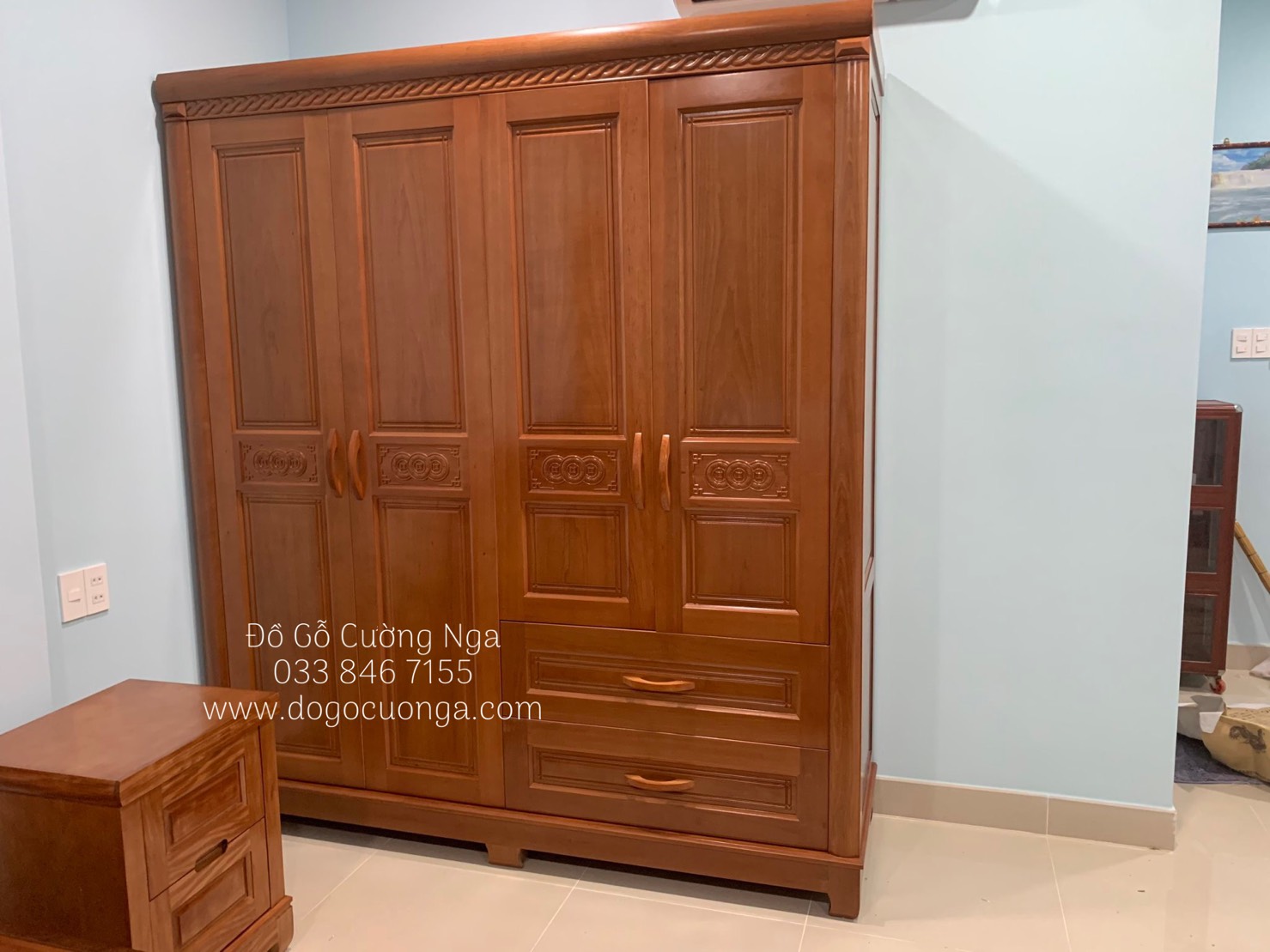 Tủ Quần Áo Gỗ Xoan Đào 4 Cánh Hiện Đại - Đồng Tiền