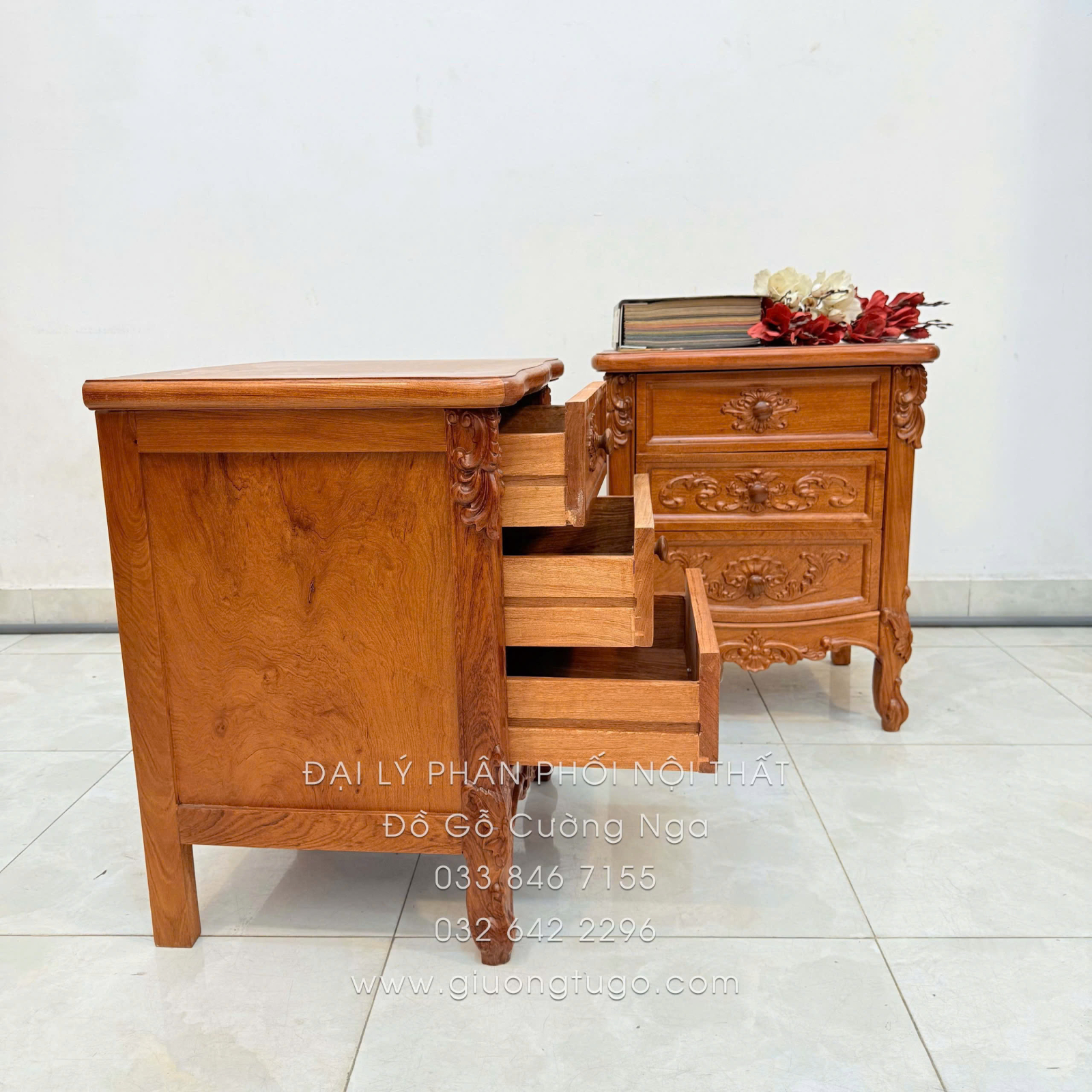 Tủ Táp Đầu Giường Gỗ Hương Đá 3 Ngăn Kéo Tân Cổ Điển