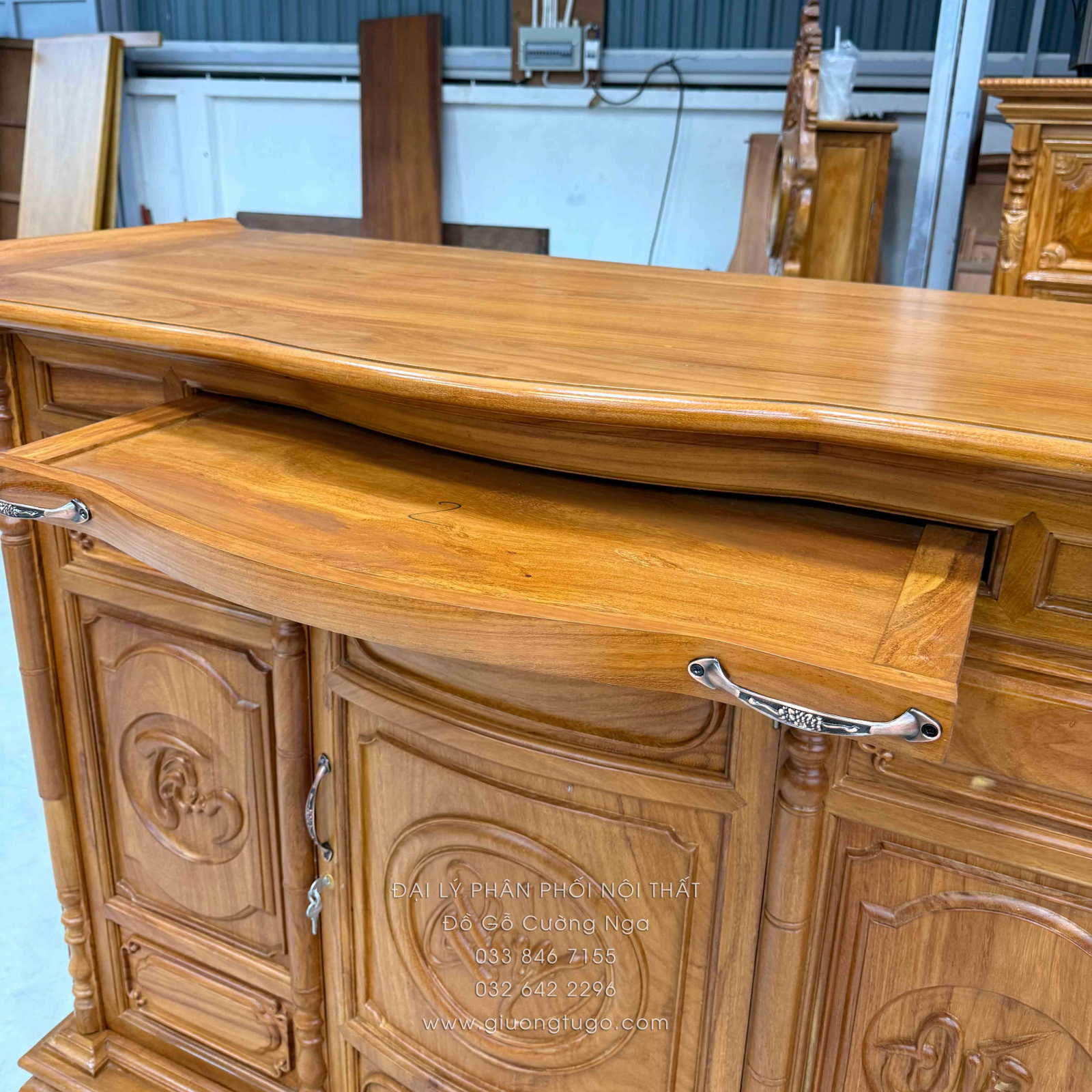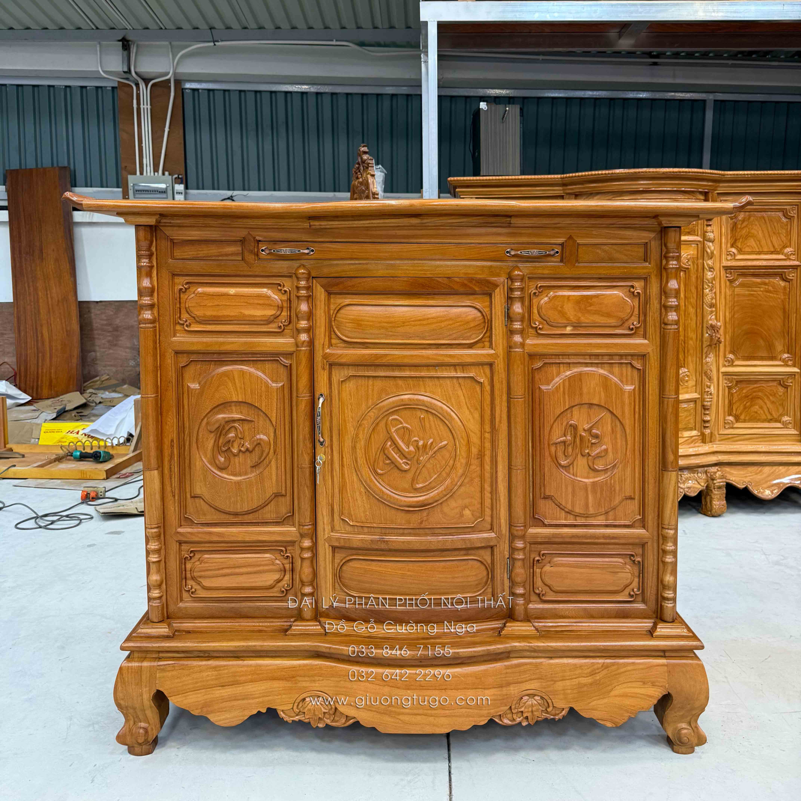 Tủ thờ gỗ gõ đỏ 1m53 cánh cong - trạm chữ BT 014