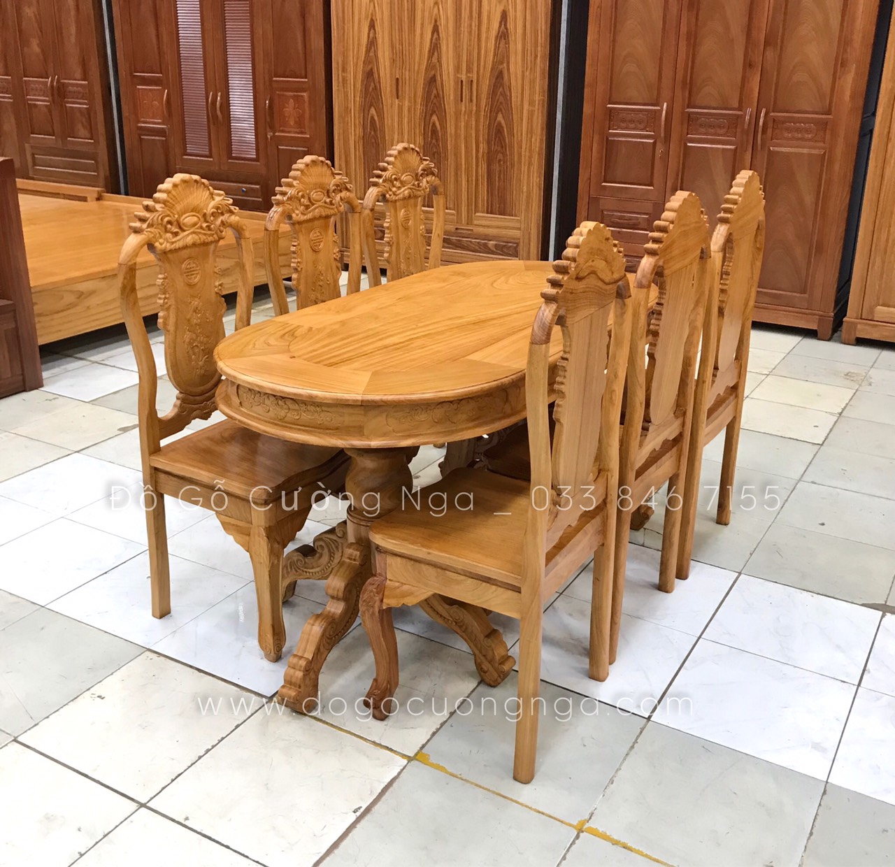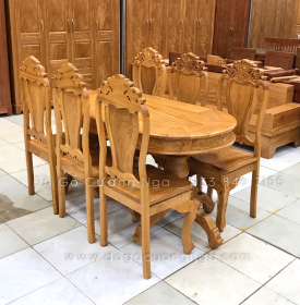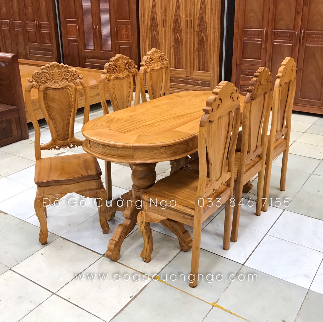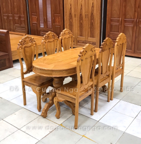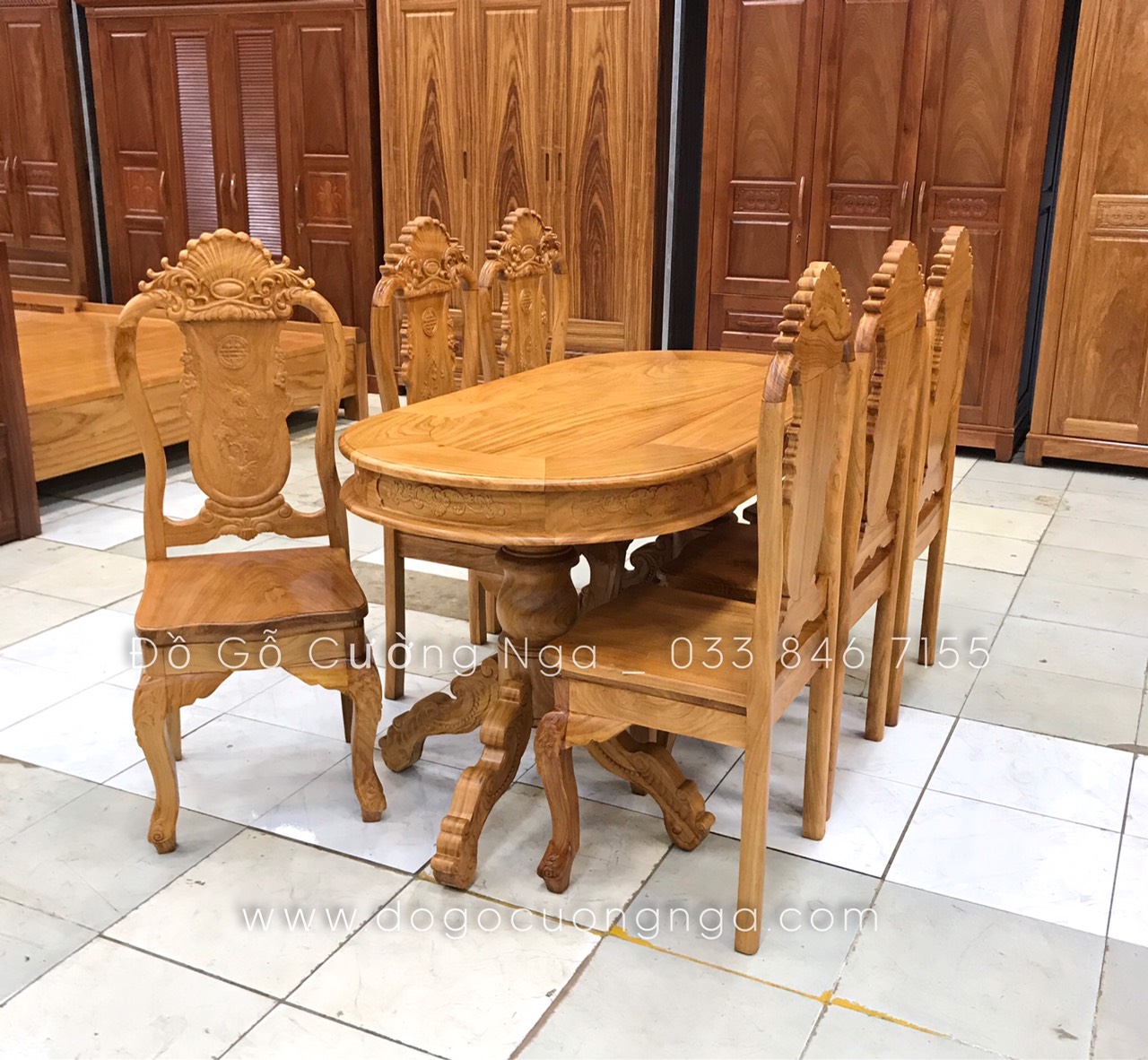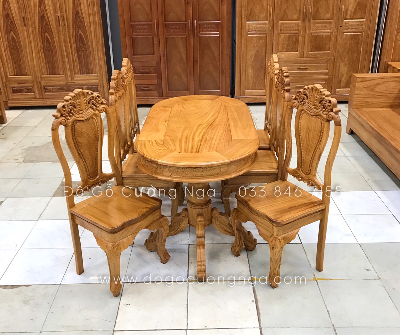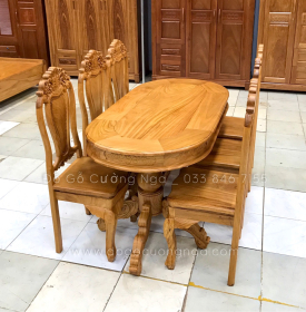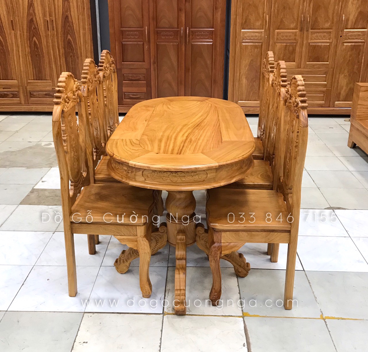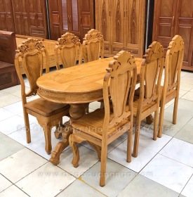 Bộ bàn ăn gỗ gõ đỏ 6 ghế cao cấp - mẫu ovan