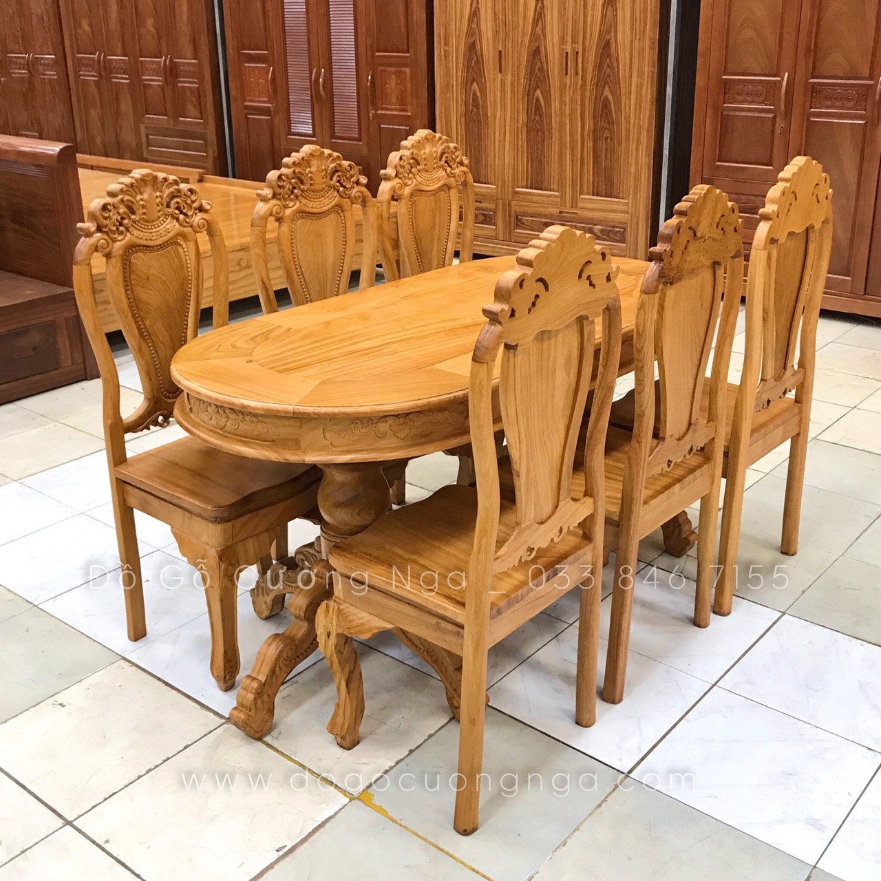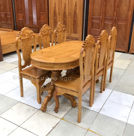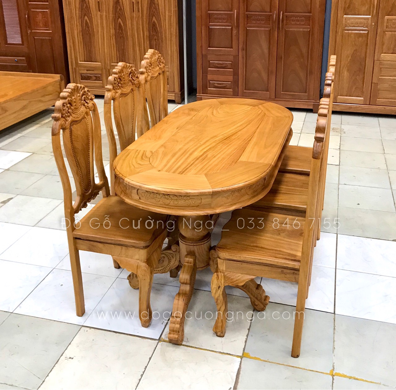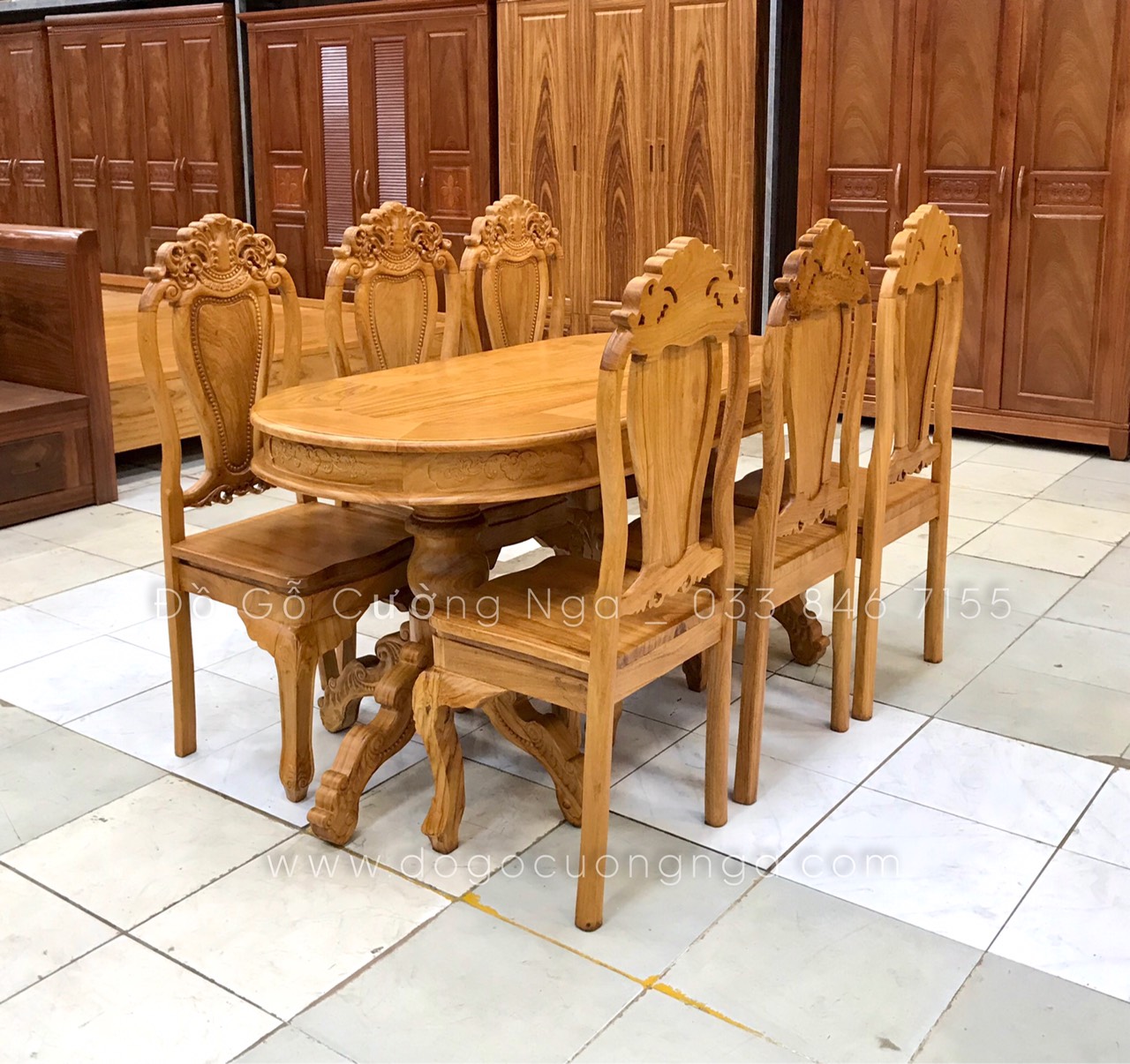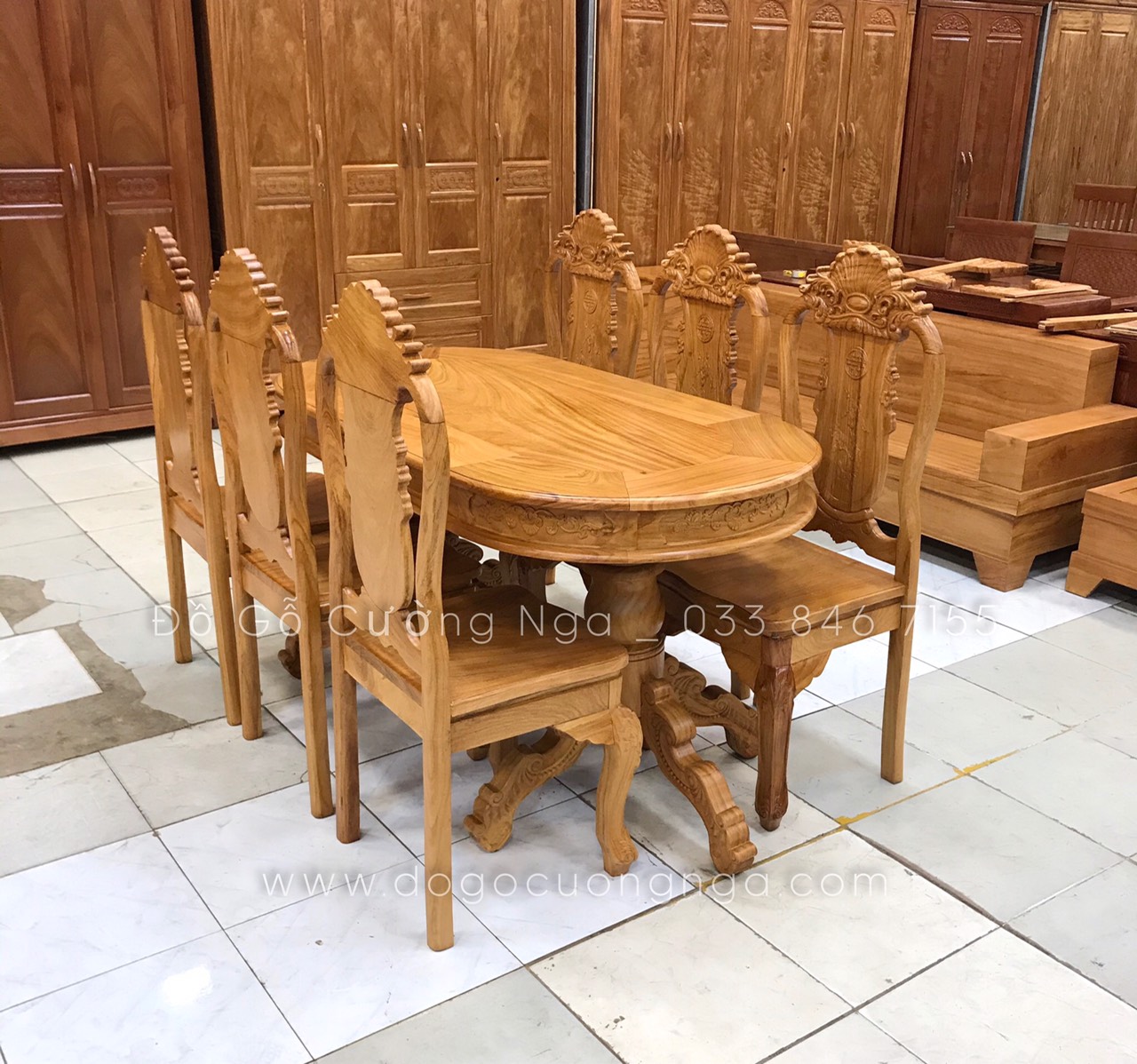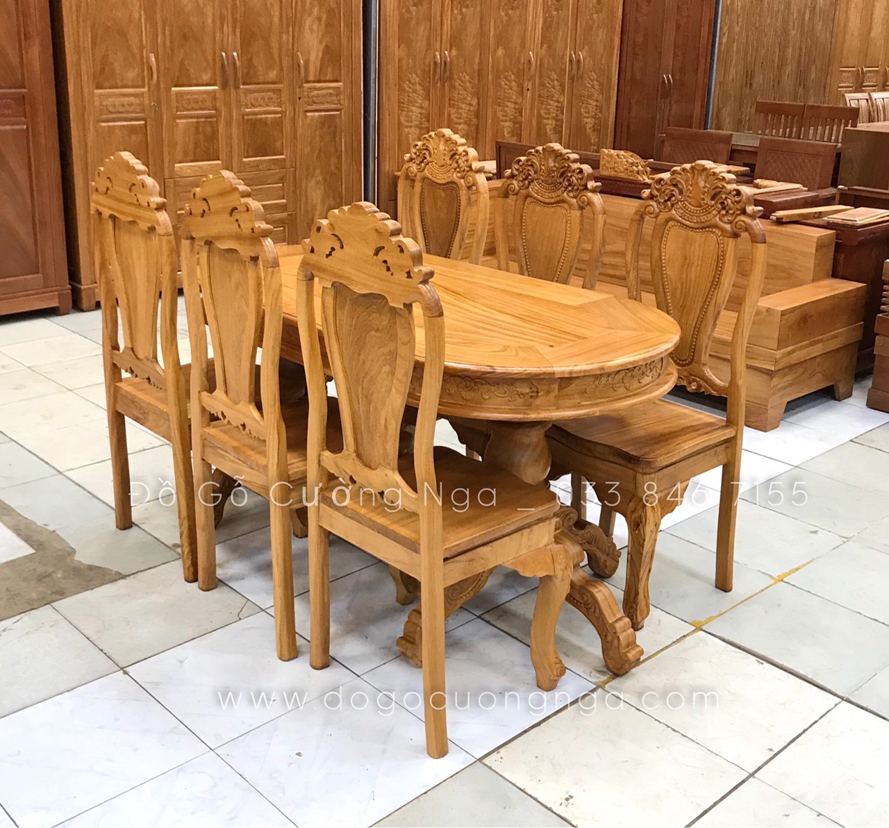 Bộ bàn ăn gỗ gõ đỏ 6 ghế cao cấp - mẫu ovan