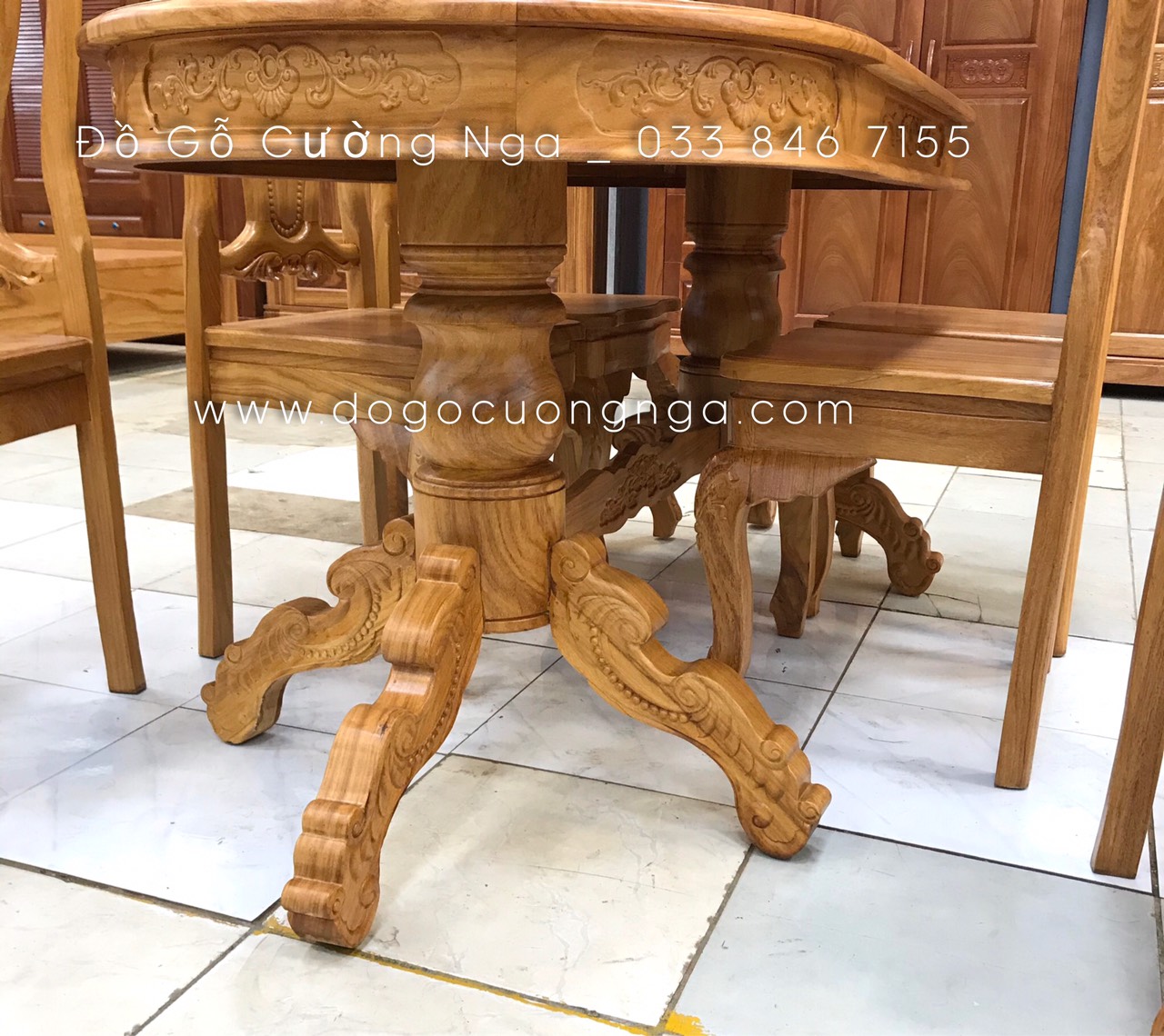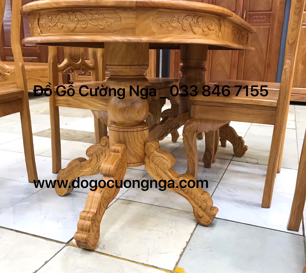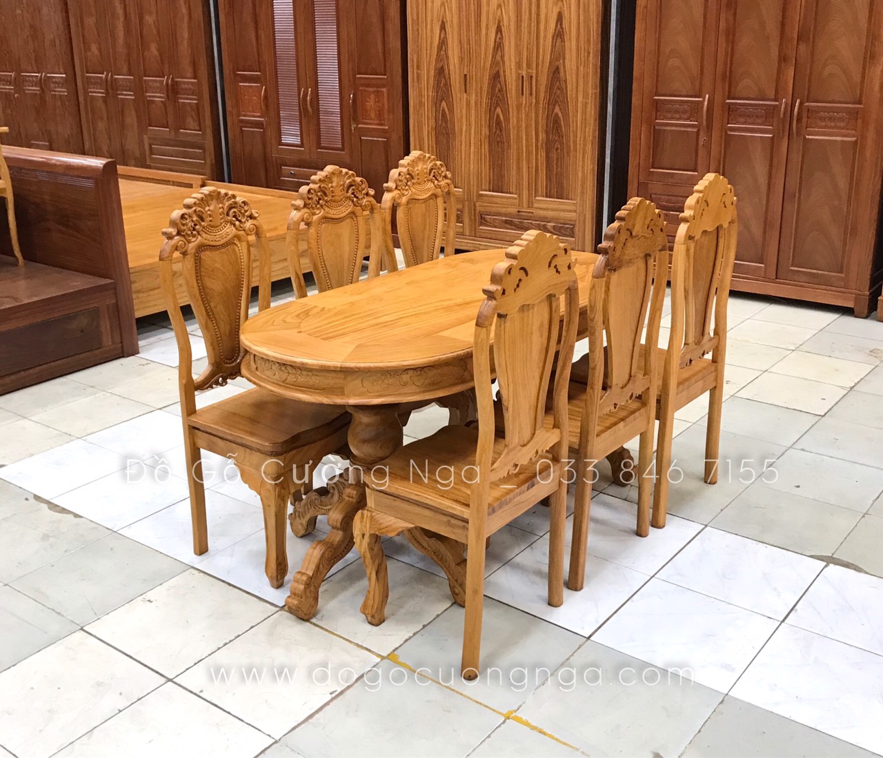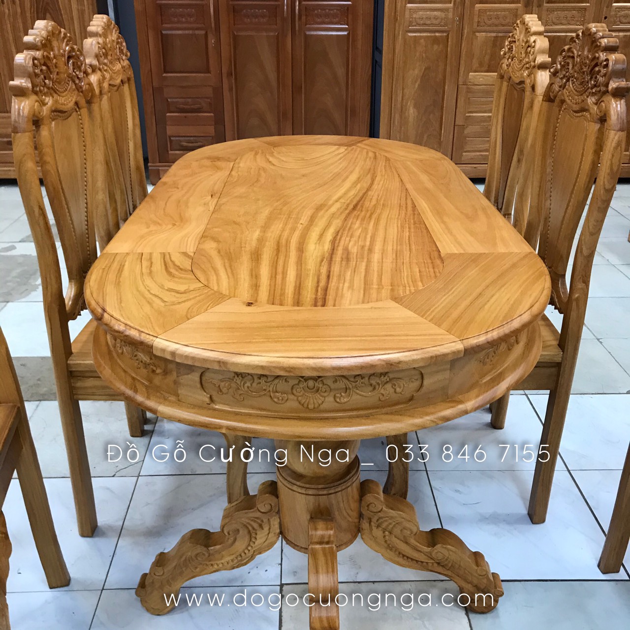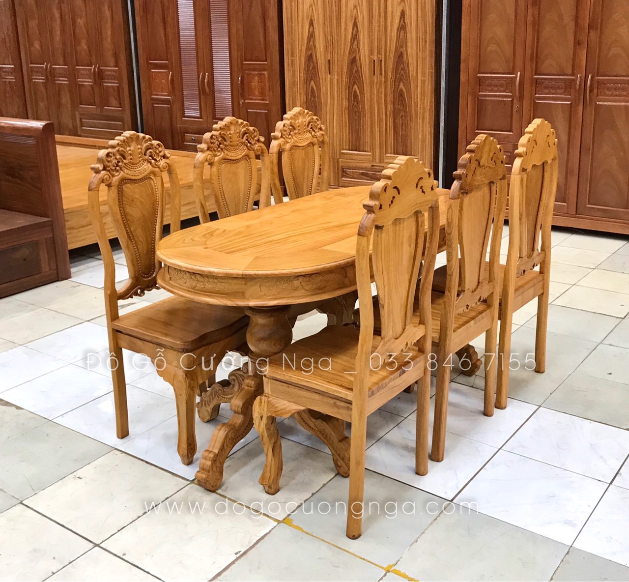 Bộ bàn ăn gỗ gõ đỏ 6 ghế cao cấp - mẫu ovan
