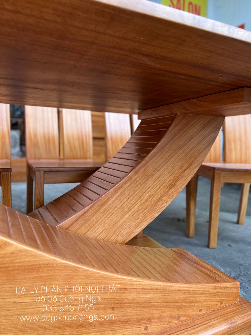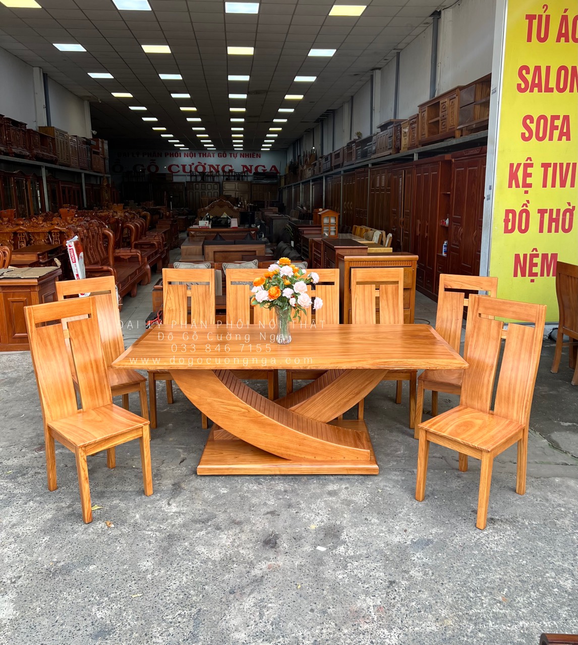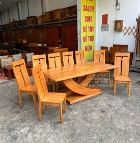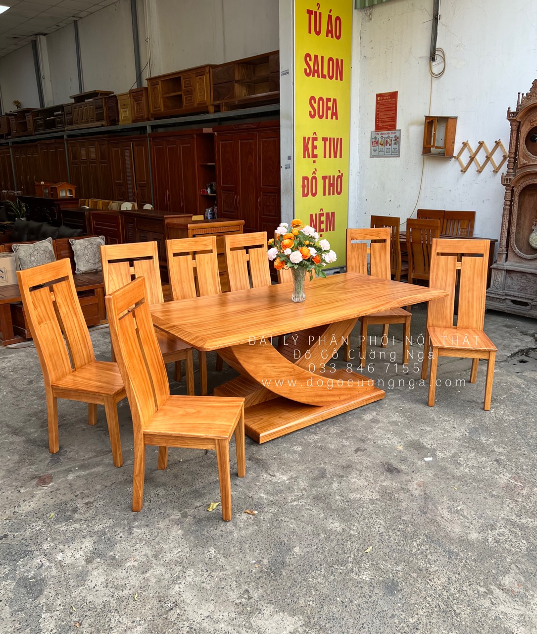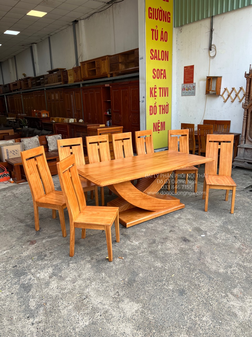 Bộ bàn ăn gỗ gõ đỏ 8 ghế chân thuyền