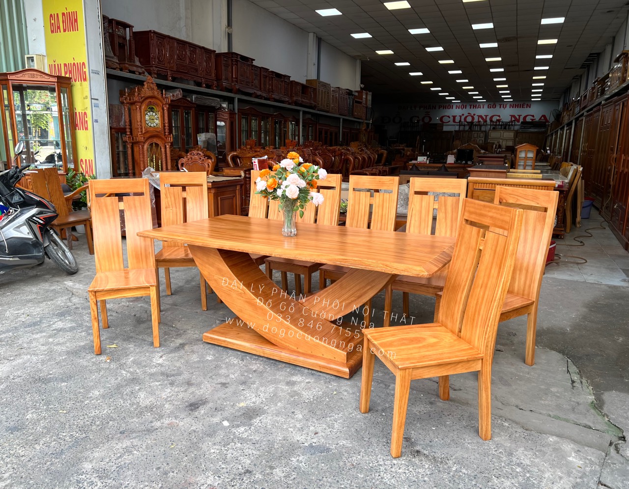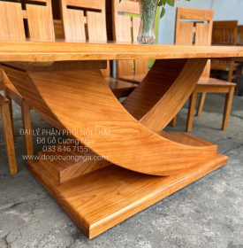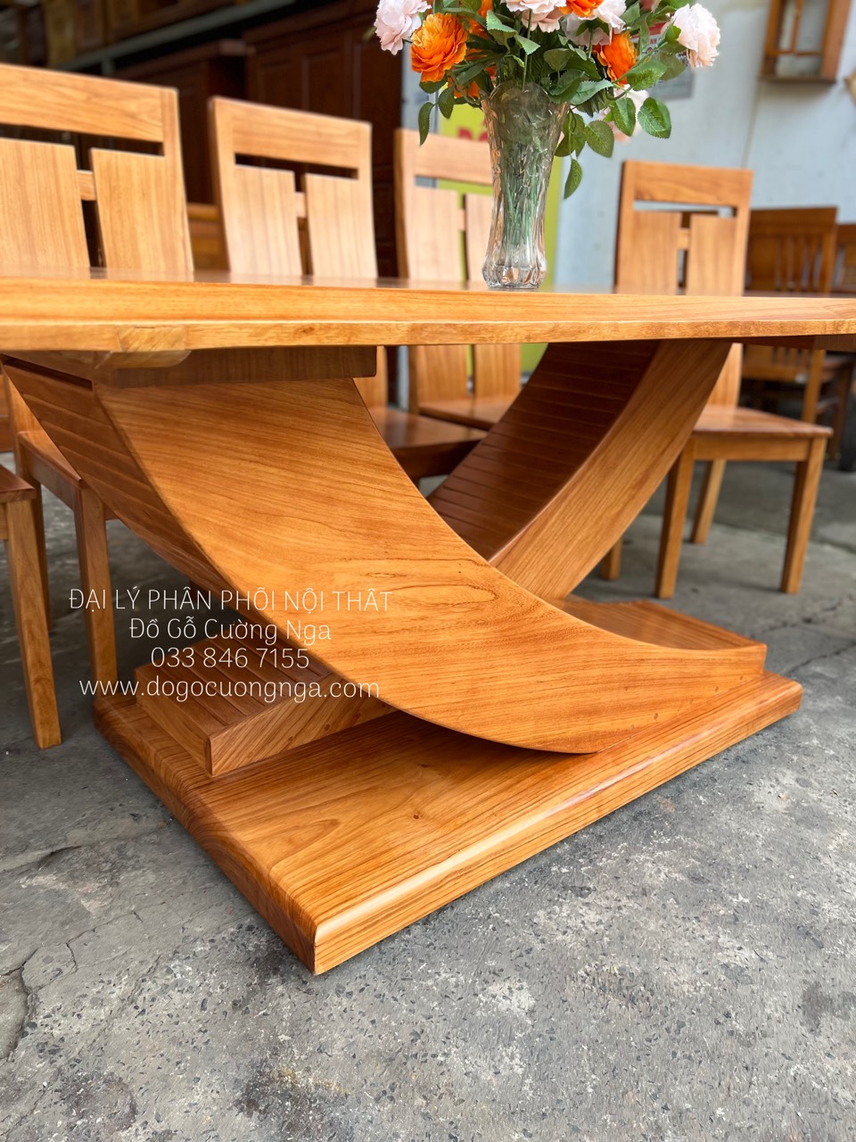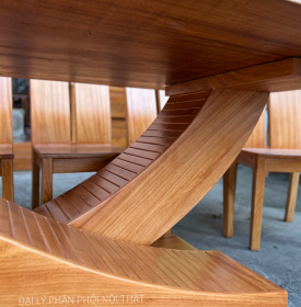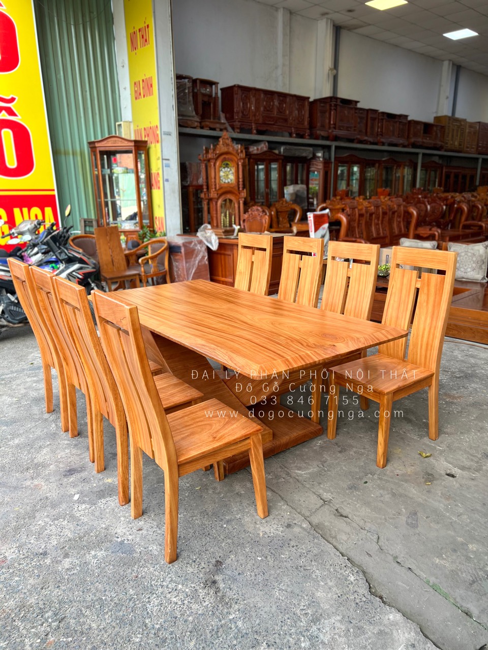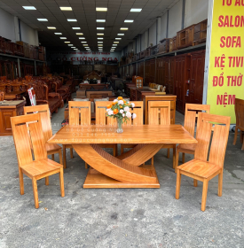 Bộ bàn ăn gỗ gõ đỏ 8 ghế chân thuyền