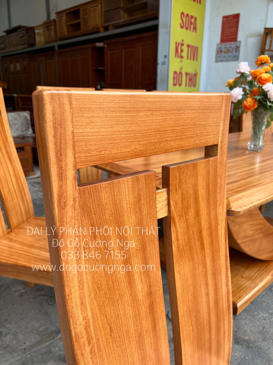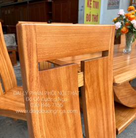 Ghế ngồi được thiết kế vừa vặn, hợp lý, đỉnh ghế và lưng ghế được thiết kế theo kiểu dáng hiện đại mềm mại làm tăng thêm vẻ đẹp mềm mại, sang trọng cho bộ bàn ăn gỗ đẹp.