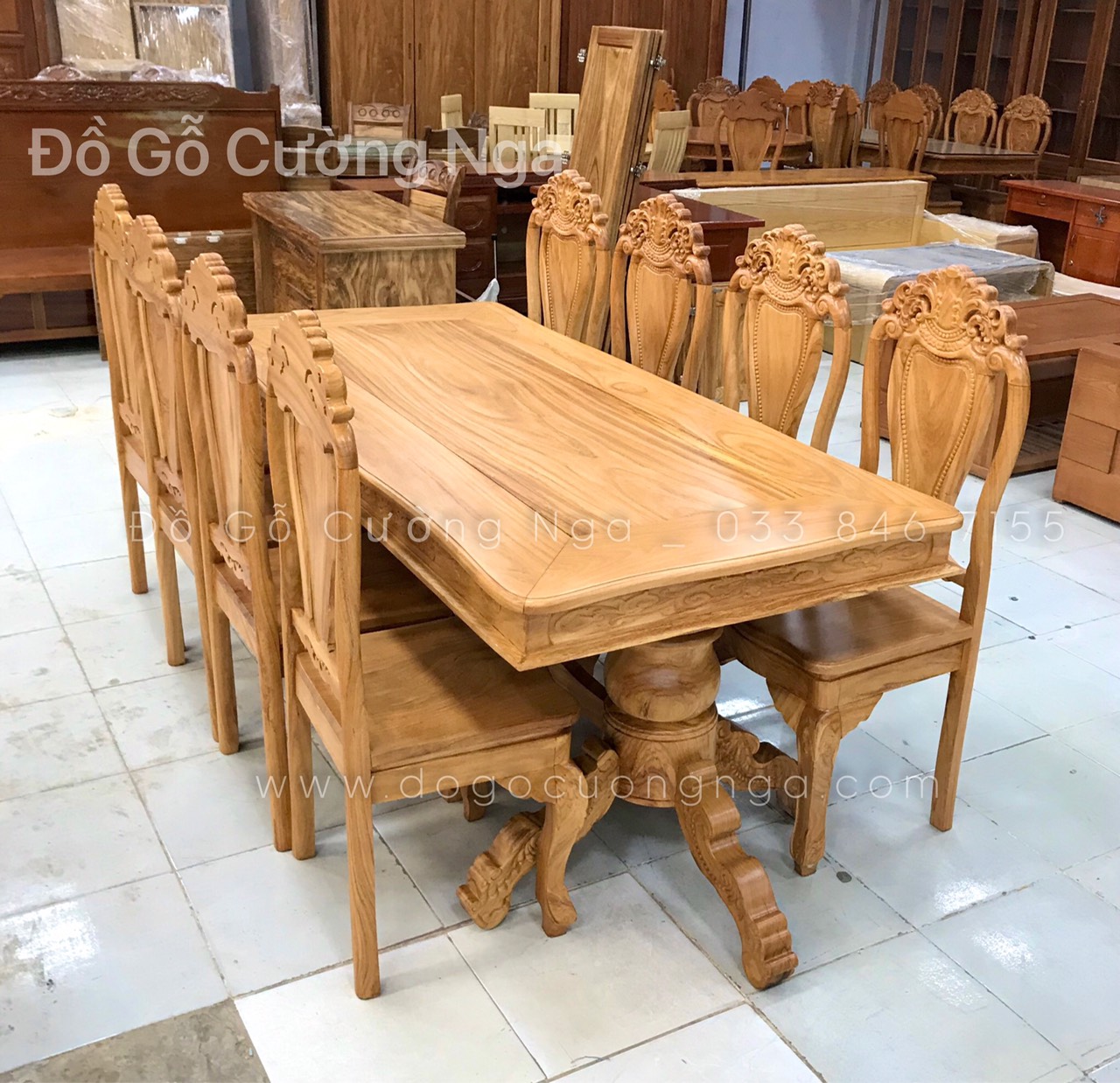 Bộ bàn ăn gỗ Gõ Đỏ này là một trong những sản phẩm nằm trong bộ sưu tập bàn ăn gỗ tự nhiên của Đồ Gỗ Cường Nga. Với những ưu điểm nổi bật như độ bền trường tồn theo thời gian, khả năng chịu lực tốt, cùng với chống mối mọt gần như là tuyệt đối cùng với thiết kế tao nhã, hiện đại, sang trọng, bộ bàn ăn gỗ chắc chắn sẽ luôn là điểm nhấn tuyệt vời trong căn phòng ăn ấm áp của gia đình bạn, mang đến vẻ đẹp hiện đại và hài hòa cho căn nhà bạn