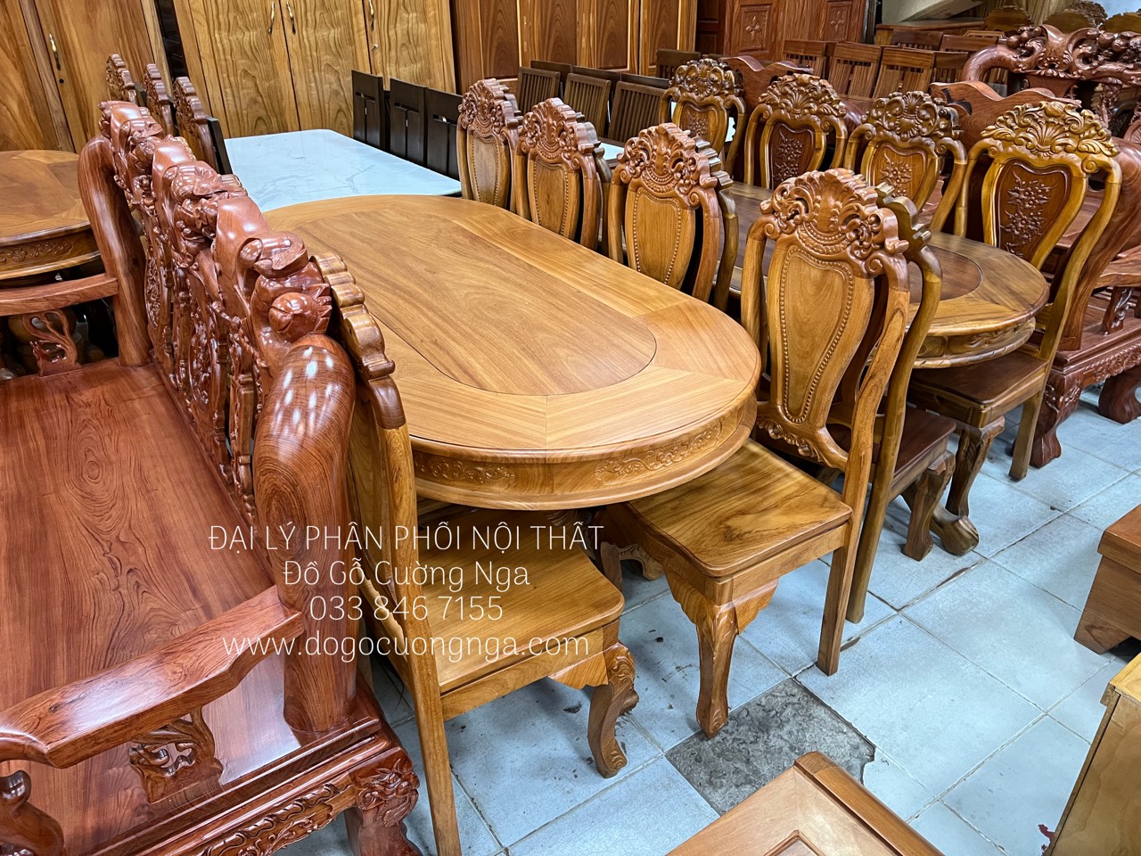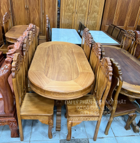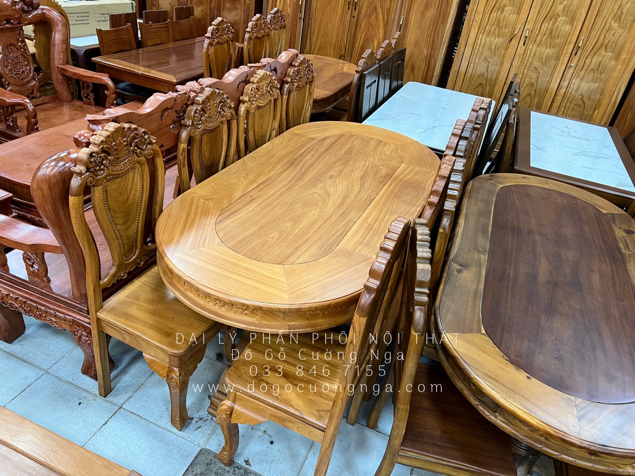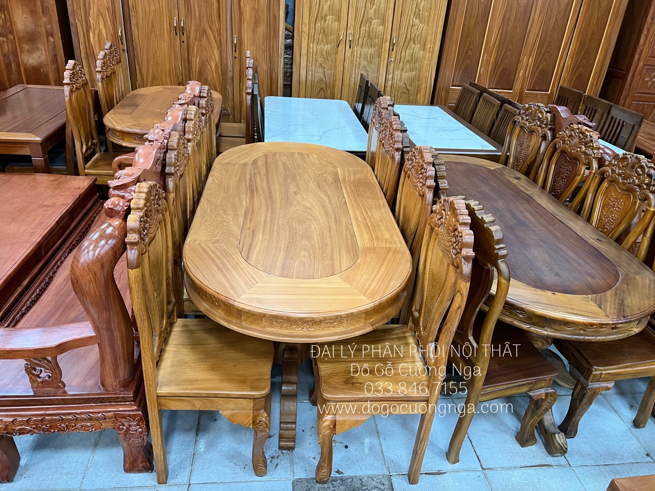 Bàn Ăn Gỗ Gõ Đỏ 8 Ghế Ovan Cao Cấp BG 11-19
