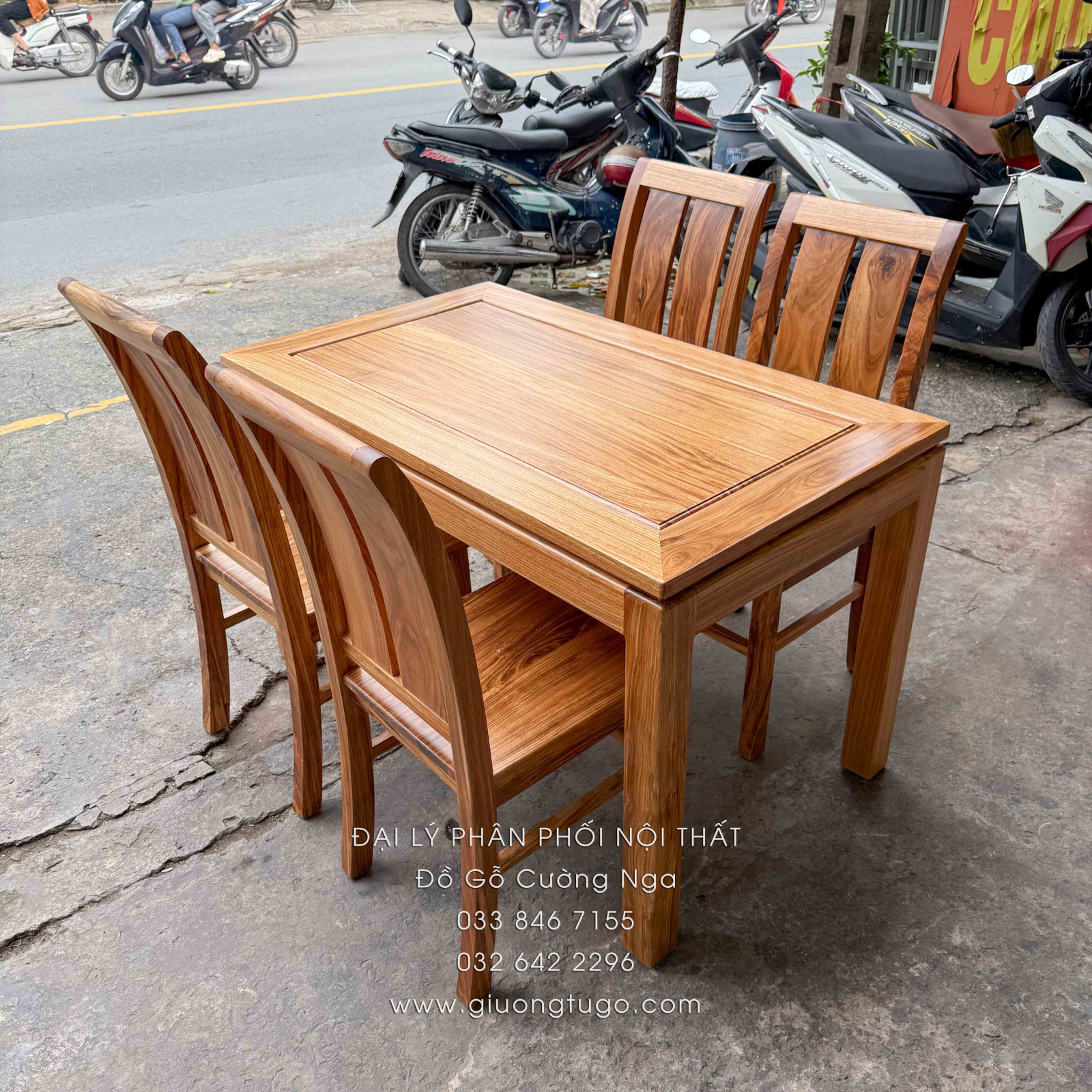 Bàn Ăn Gỗ Hương Xám 4 Ghế Lưng Tựa Cong
