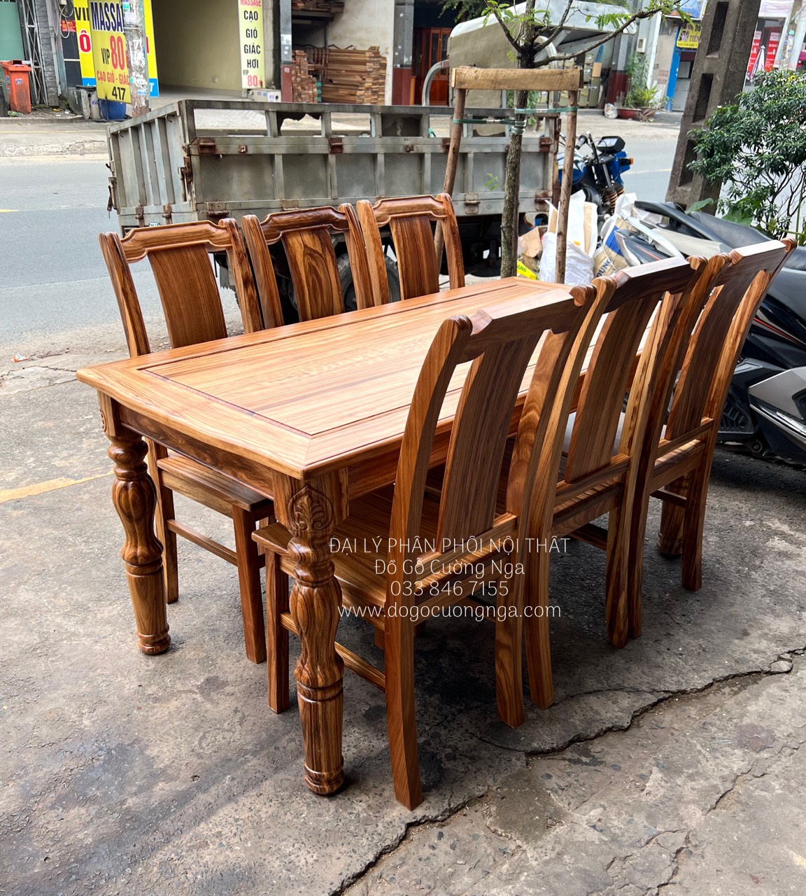 Bộ bàn ăn gỗ Hương Xám 6 ghế cao cấp