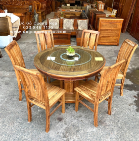 Bàn ăn gỗ hương xám tròn mâm xoay