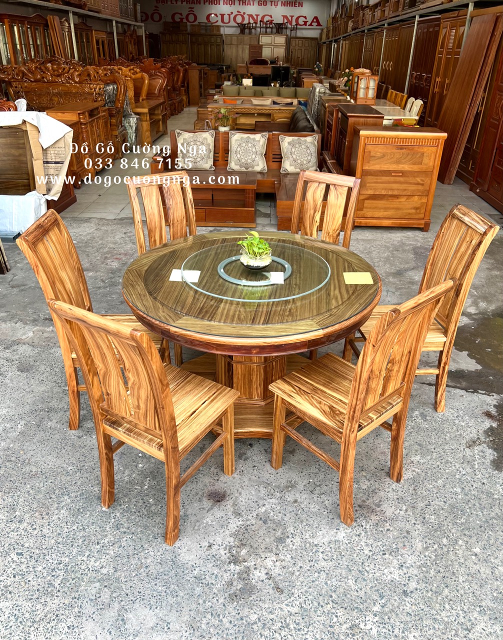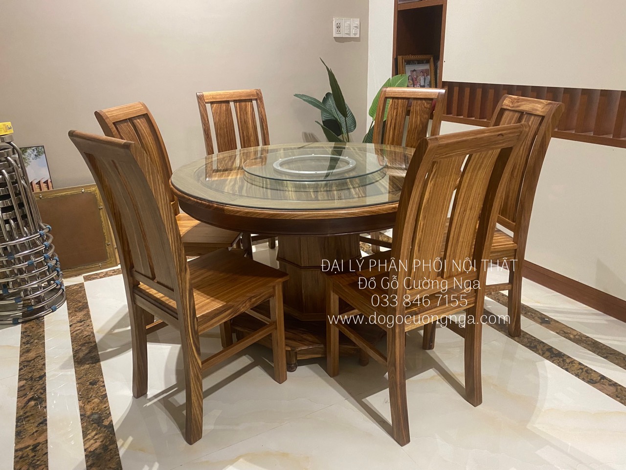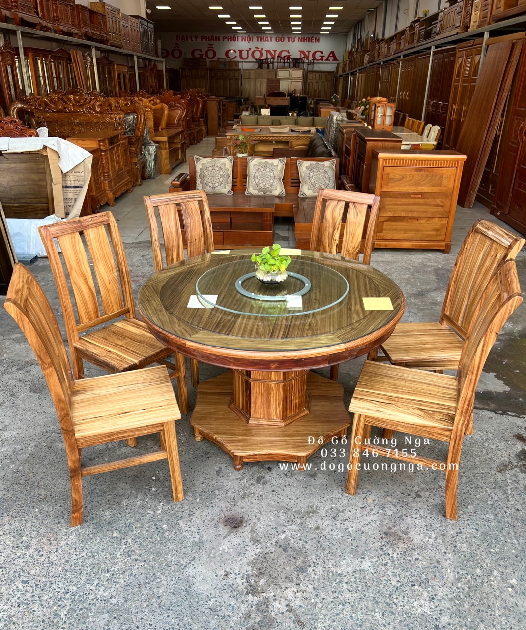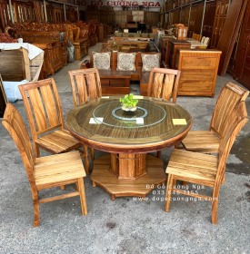Bàn ăn gỗ hương xám 6 ghế tròn mâm xoay BG 025