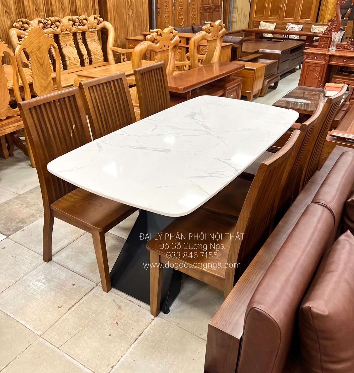 Bộ bàn ăn 6 ghế gỗ Sồi Nga mặt đá