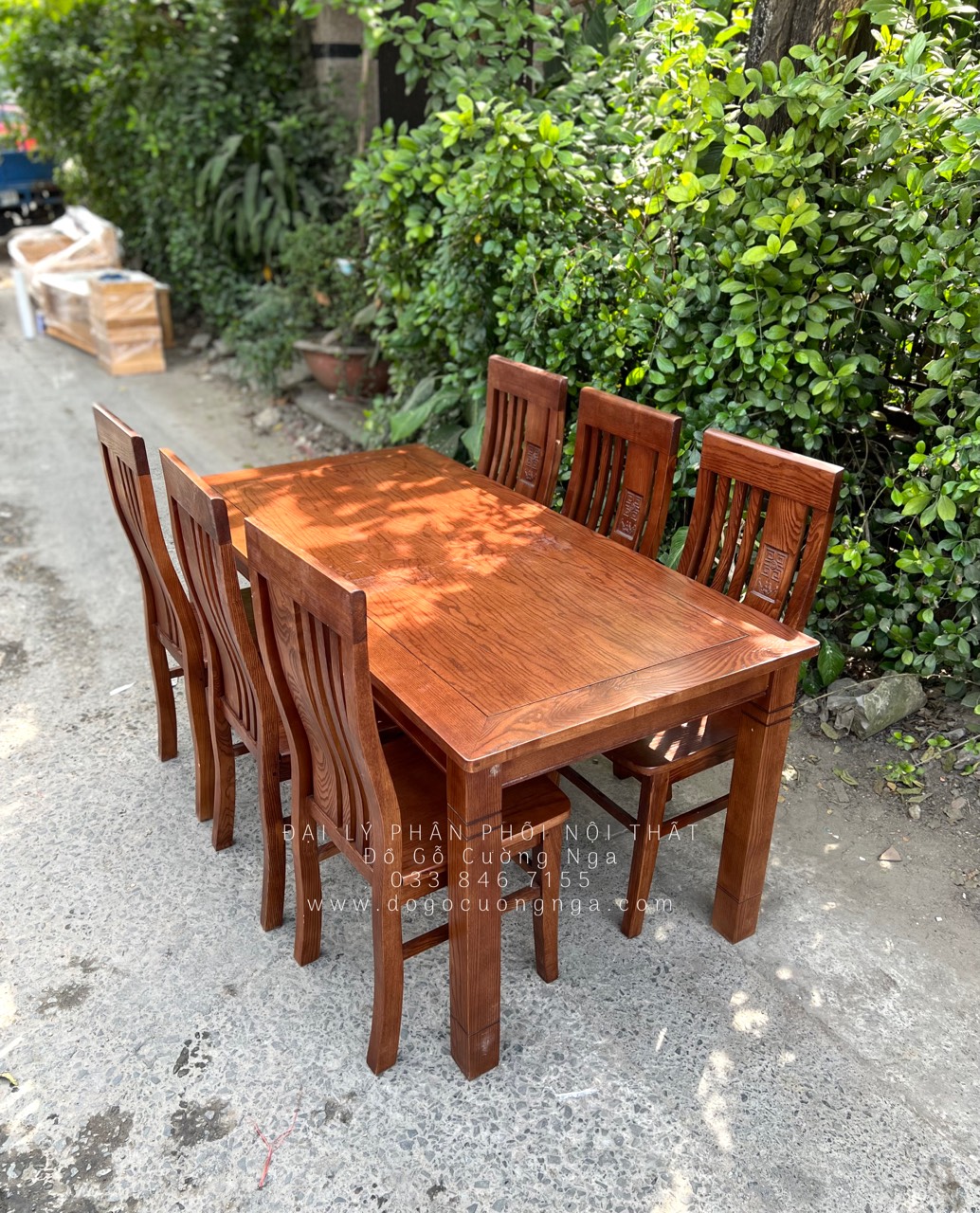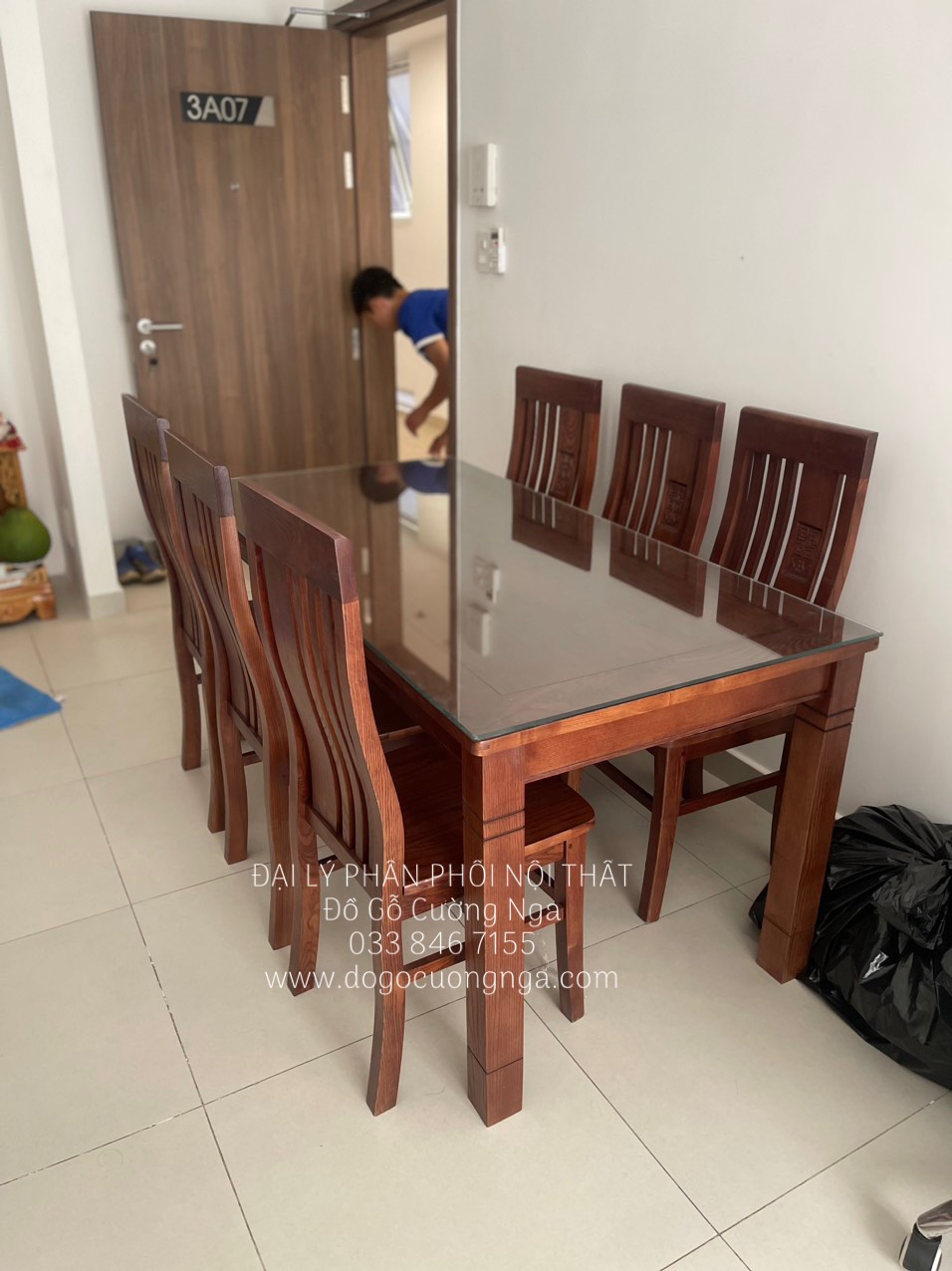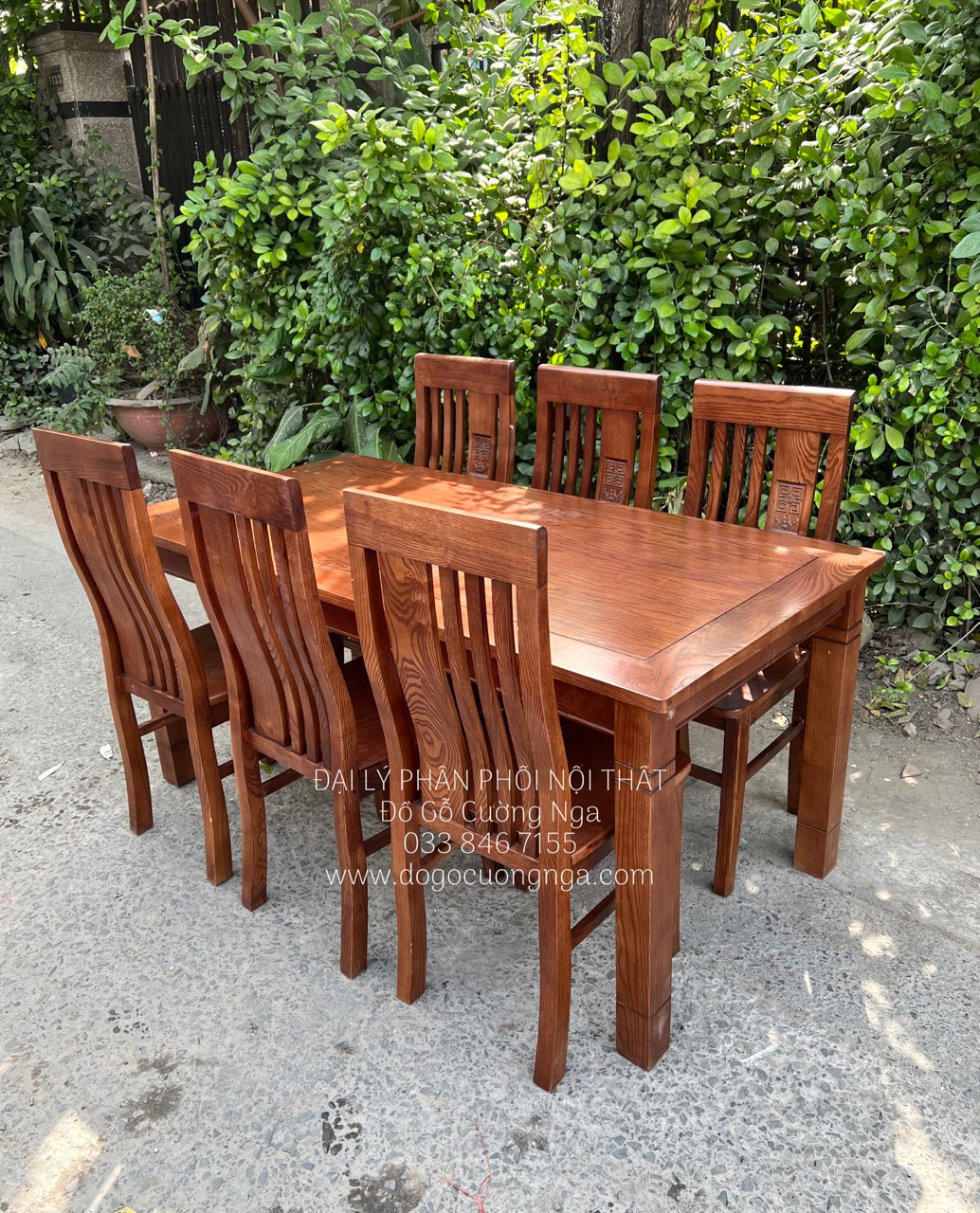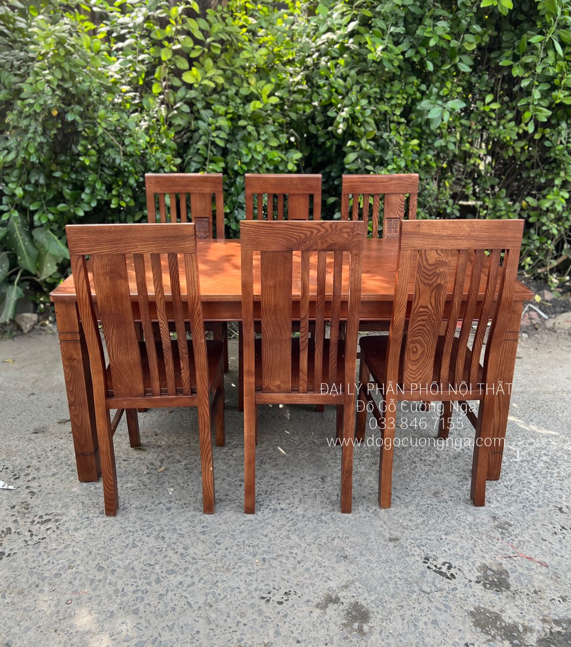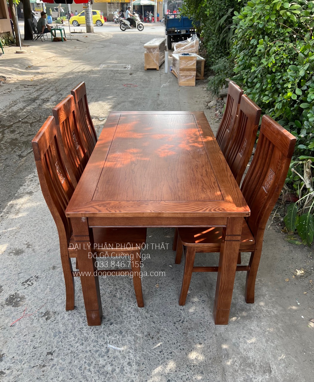 Bàn ăn gỗ sồi nga lau màu óc chó 6 ghế