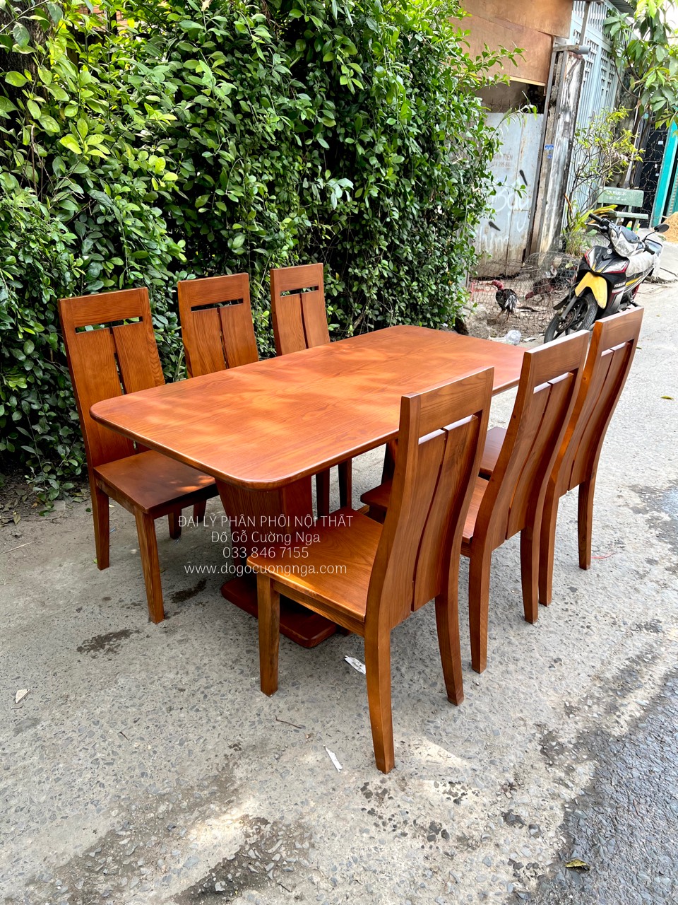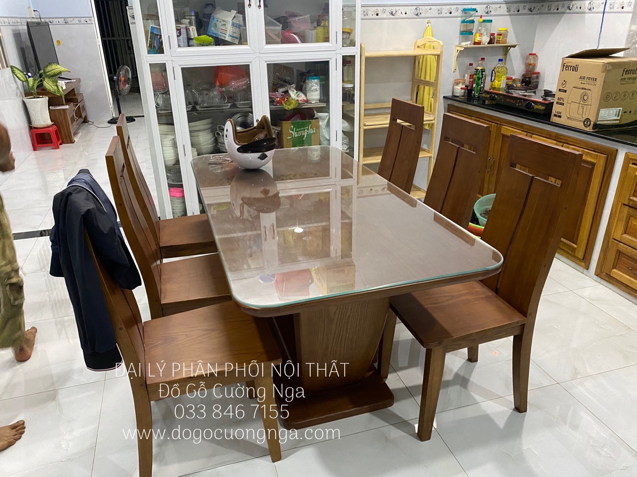 Bàn ăn gỗ sồi nga màu óc chó 6 ghế