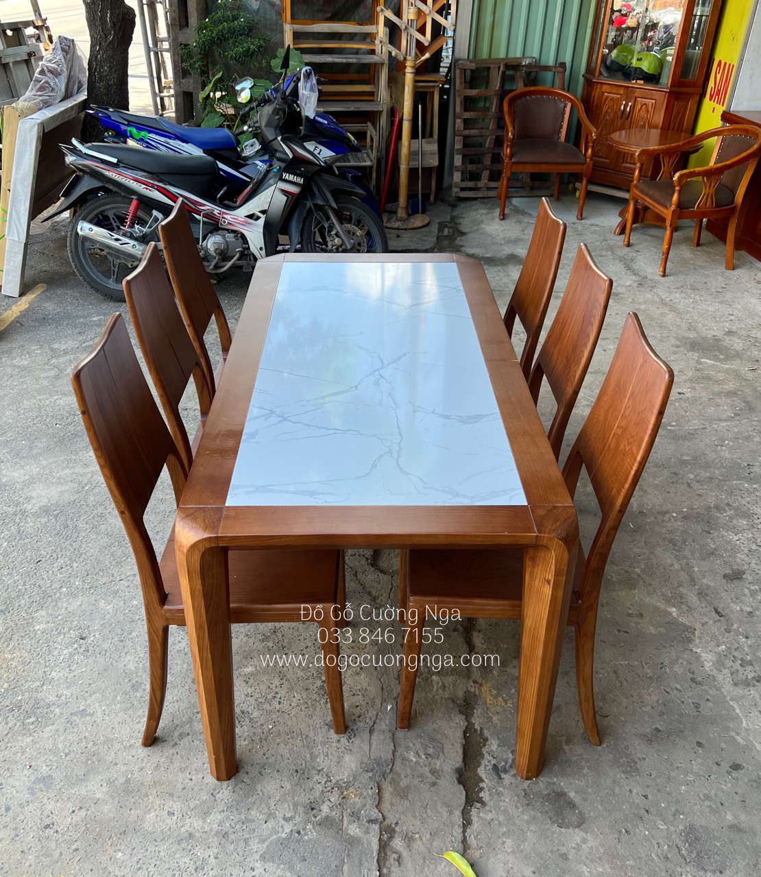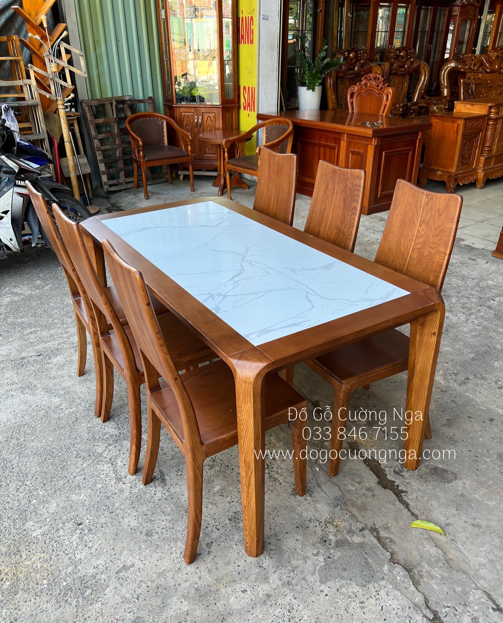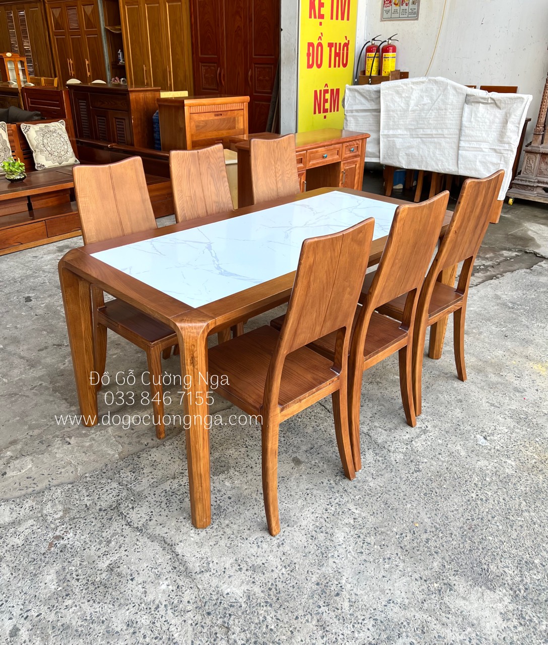 Bộ bàn ăn 6 ghế gỗ Sồi Nga mặt đá
