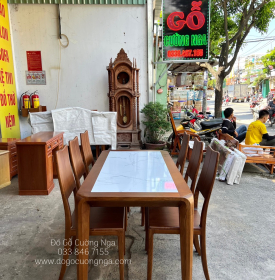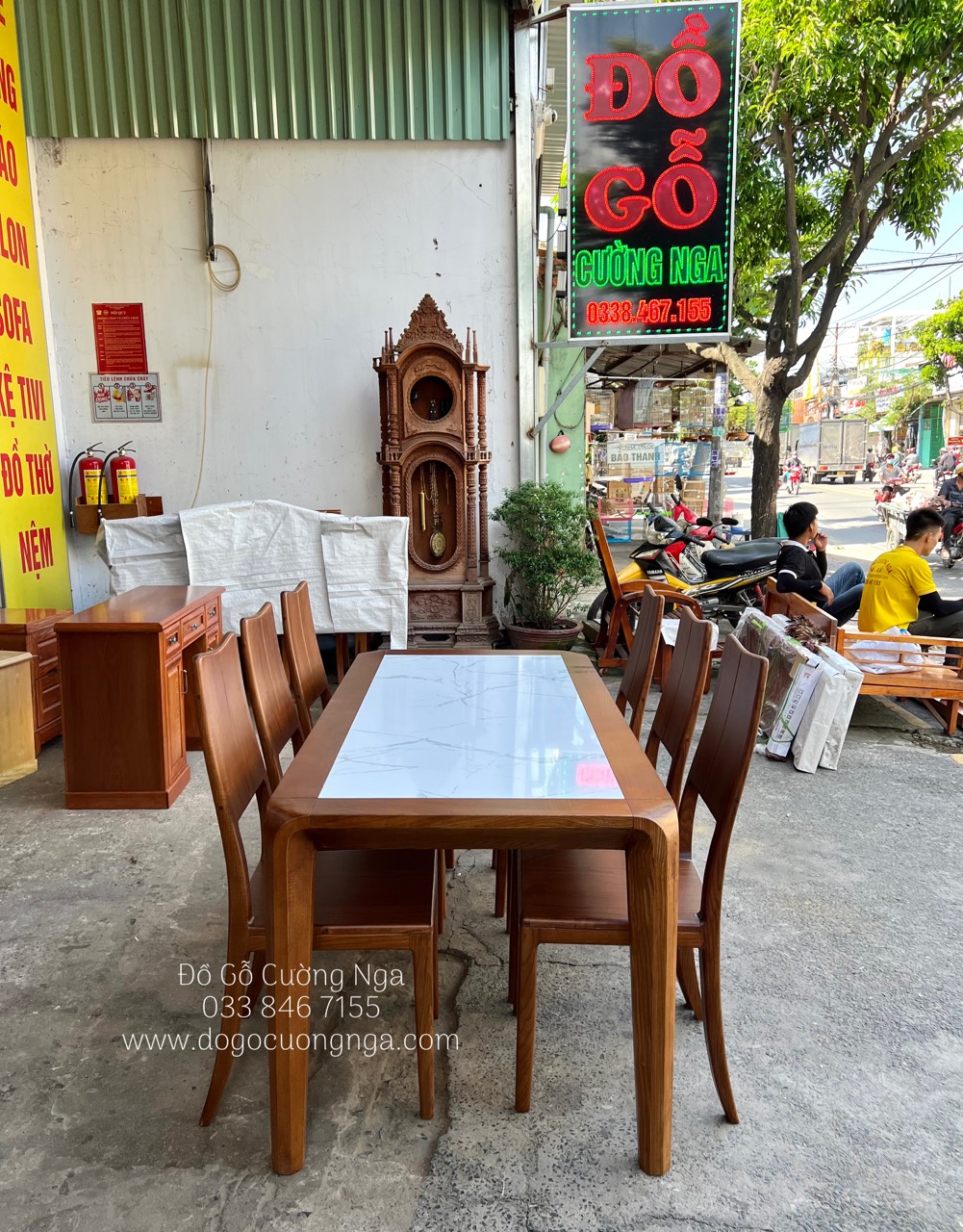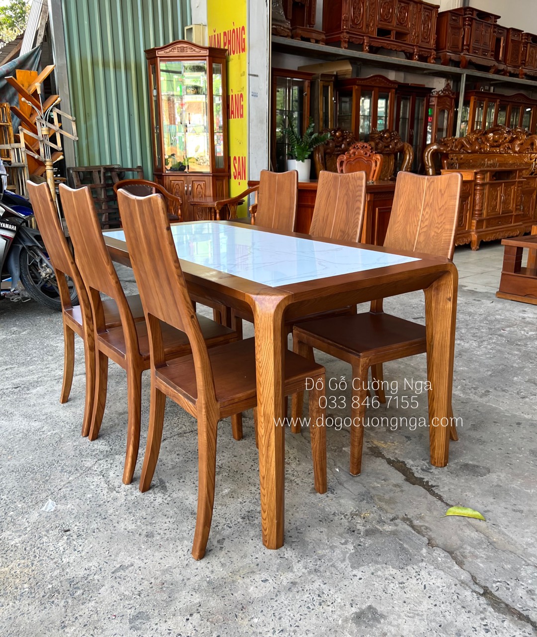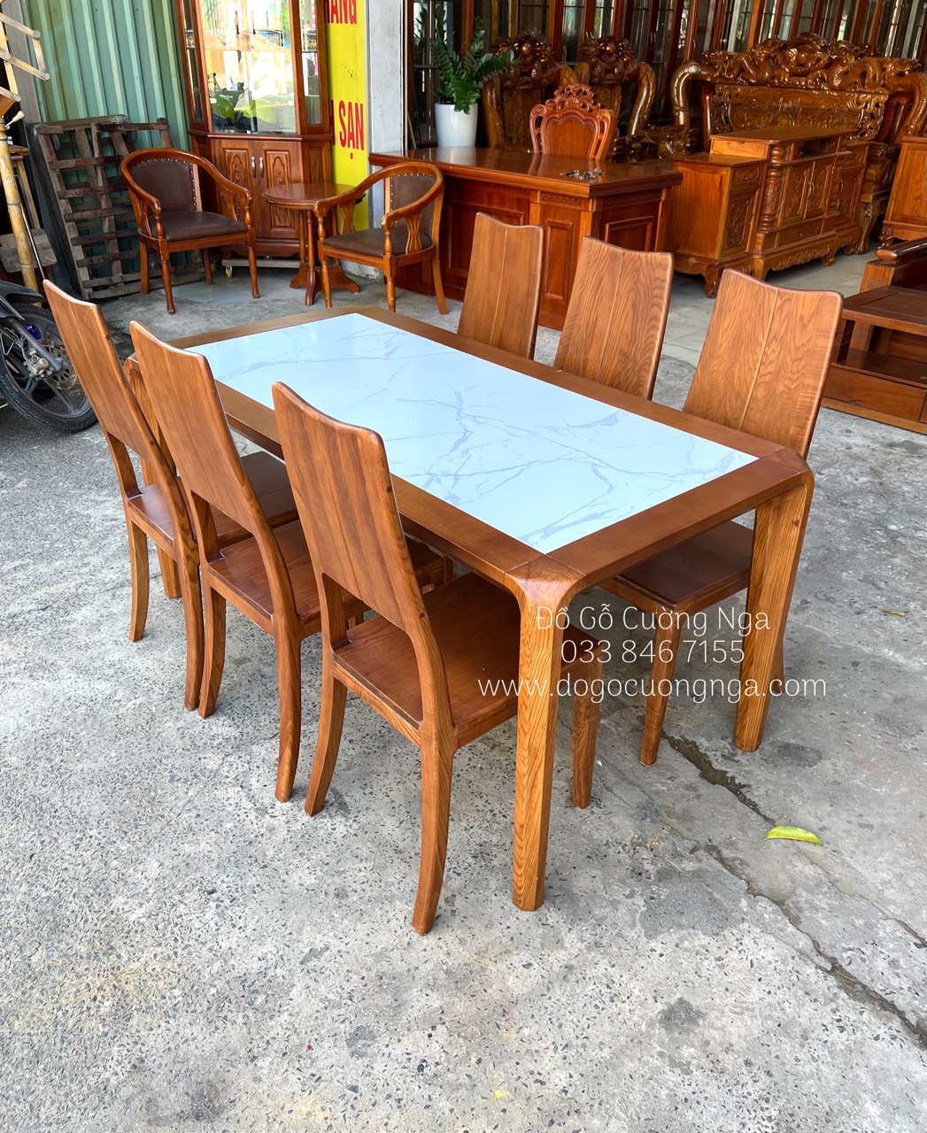 Bộ bàn ăn 6 ghế gỗ Sồi Nga mặt đá