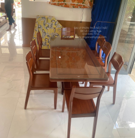 Bàn ăn gỗ xoan đào cao cấp ( tặng kính bàn )