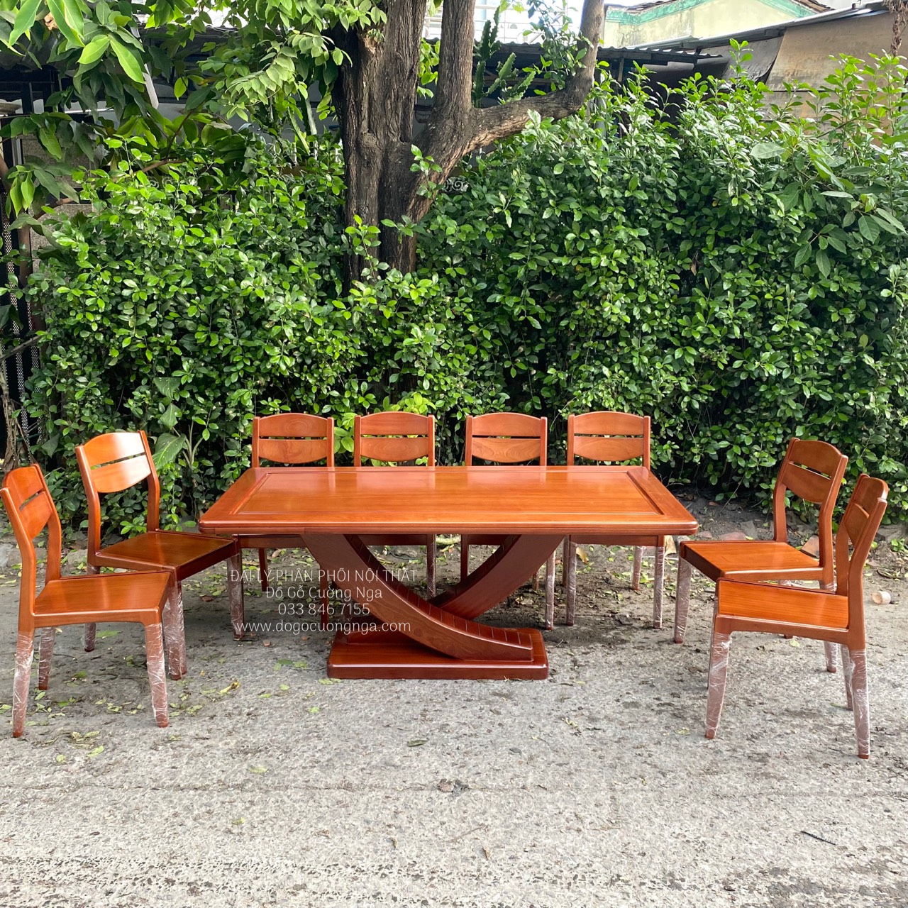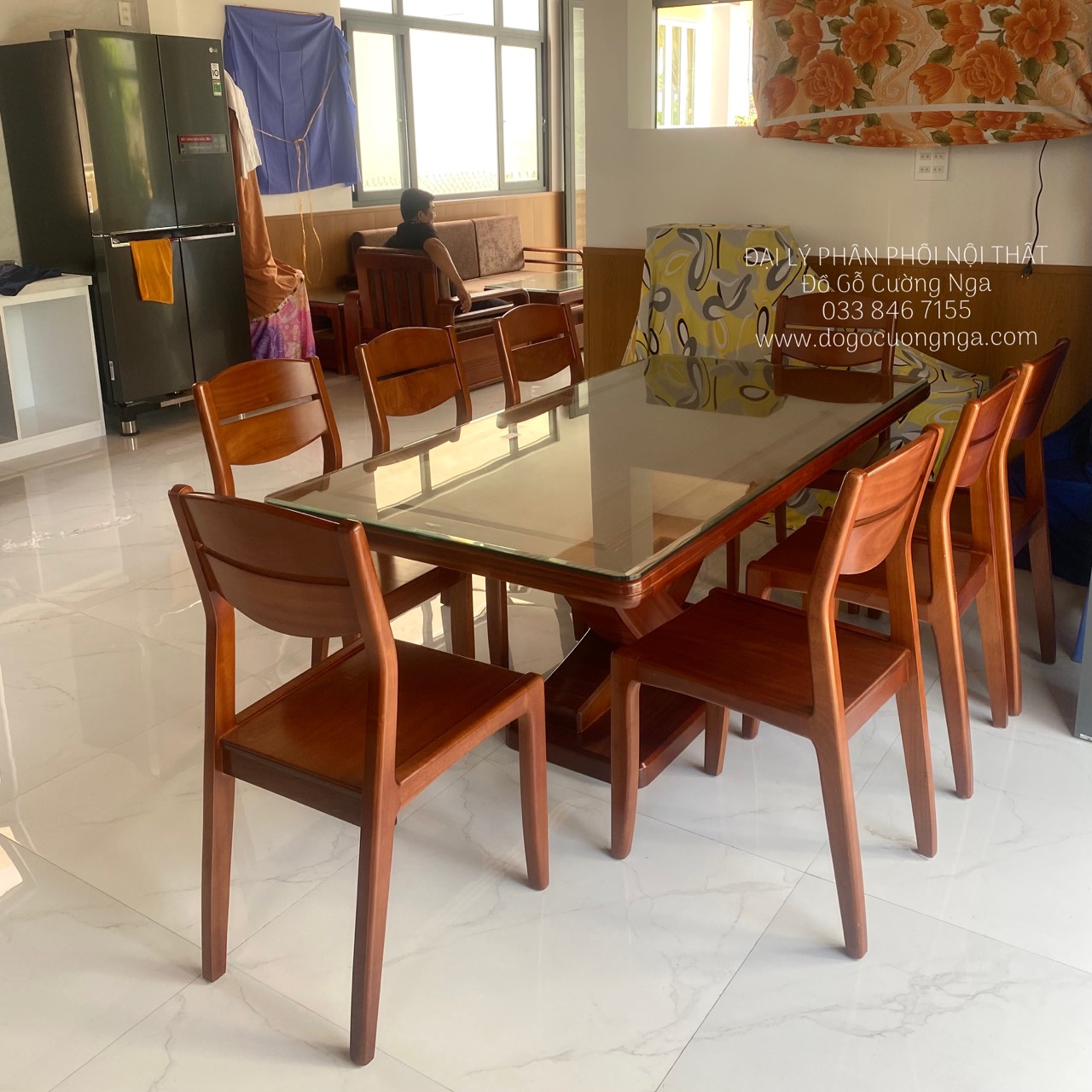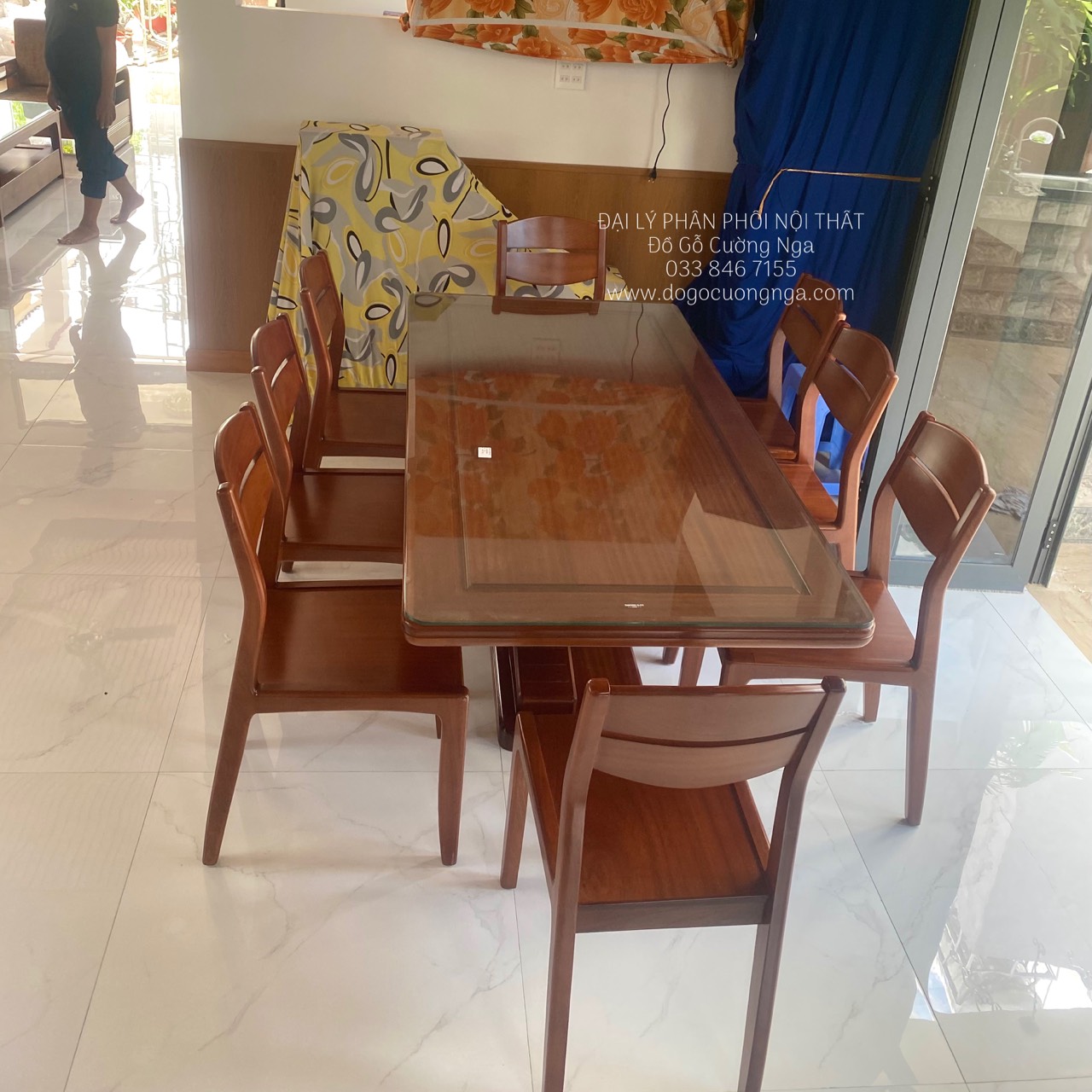 Bàn ăn gỗ xoan đào 8 ghế giao khách