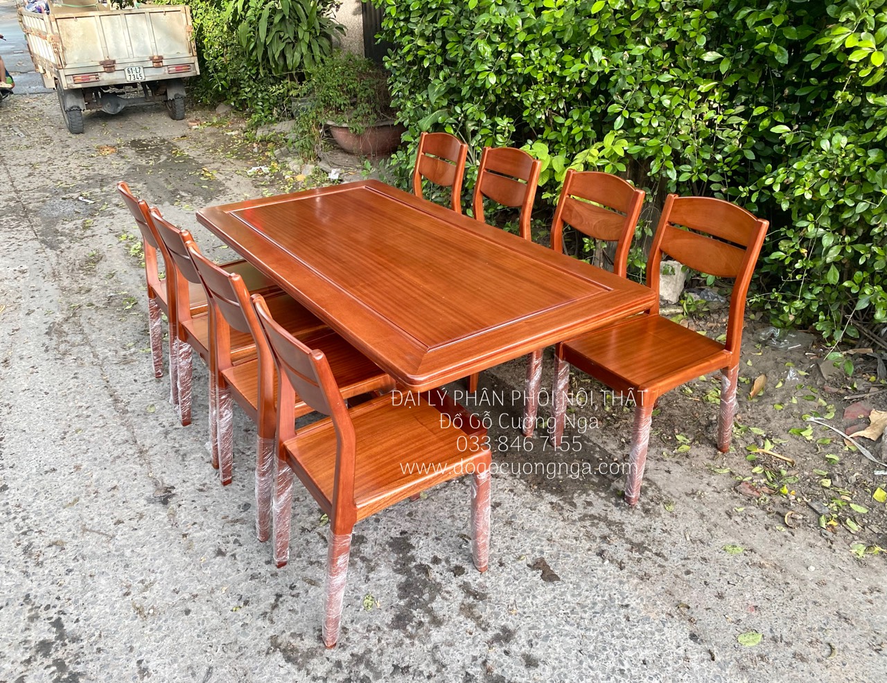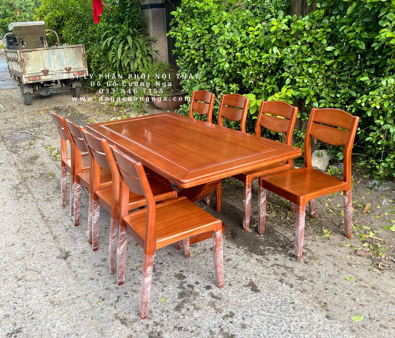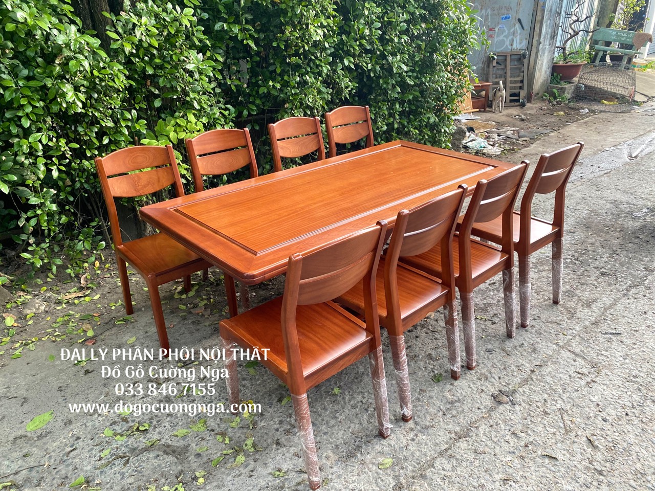 Bàn ăn gỗ xoan đào 8 ghế giao khách