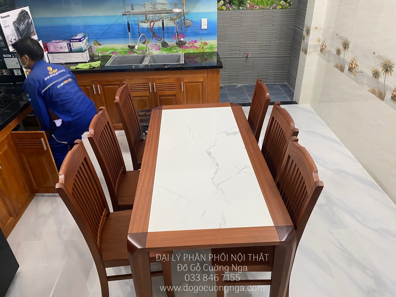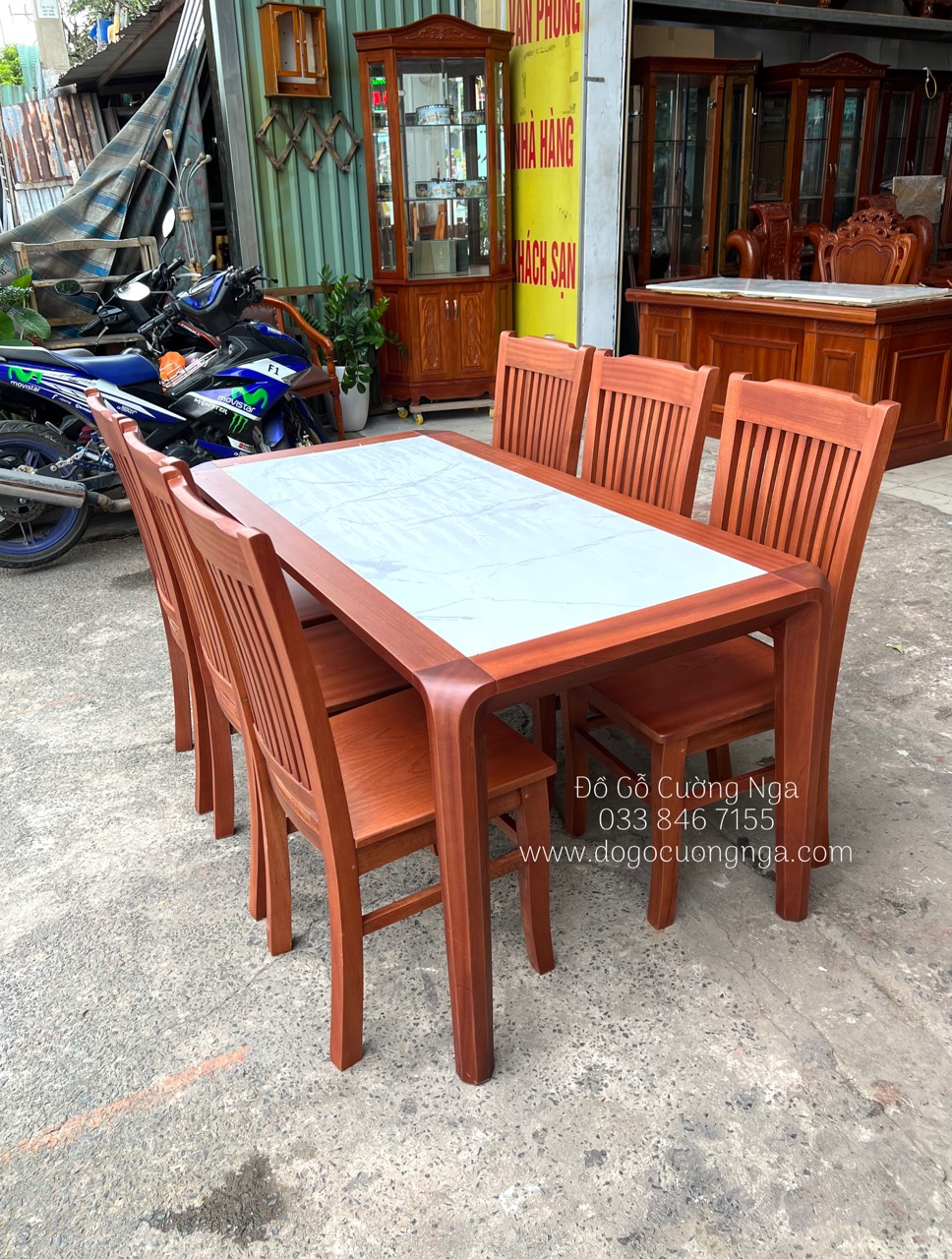 Bàn ăn gỗ xoan đào mặt đá 6 ghế
