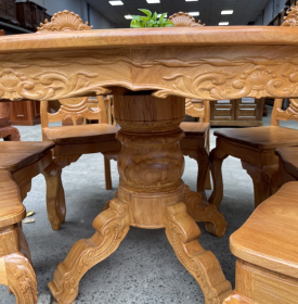 Sang trọng và đẳng cấp chính là những giá trị nổi bật nhất của bộ bàn ăn 8 ghế gỗ gõ đỏ. Những bộ bàn ăn được thiết kế, chạm trổ vô cùng tinh xảo ở từng chi tiết nhỏ khiến không gian căn phòng được nâng tầm vẻ thẩm mỹ hơn rất nhiều. Đường vân của gỗ có màu nâu đỏ đậm, màu sắc tương đồng, kết hợp với những vân gỗ cuộn xoắn tạo nên những tác phẩm ấn tượng, độc đáo.