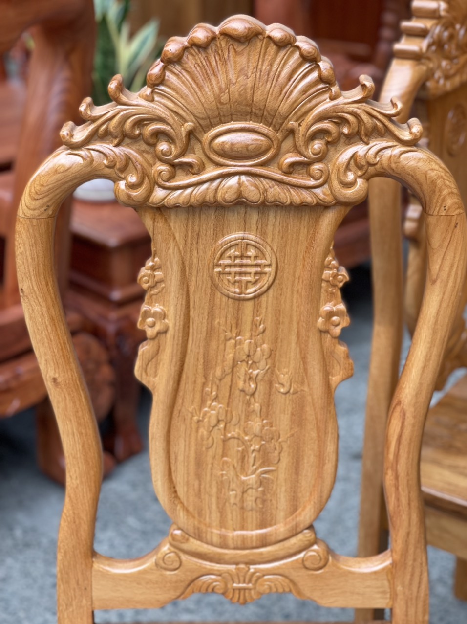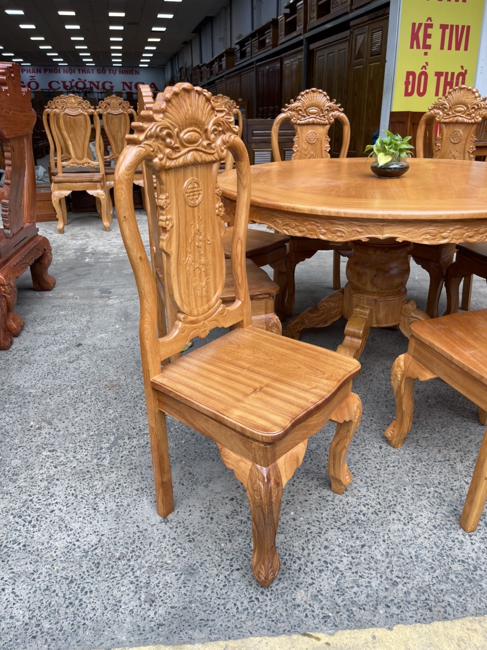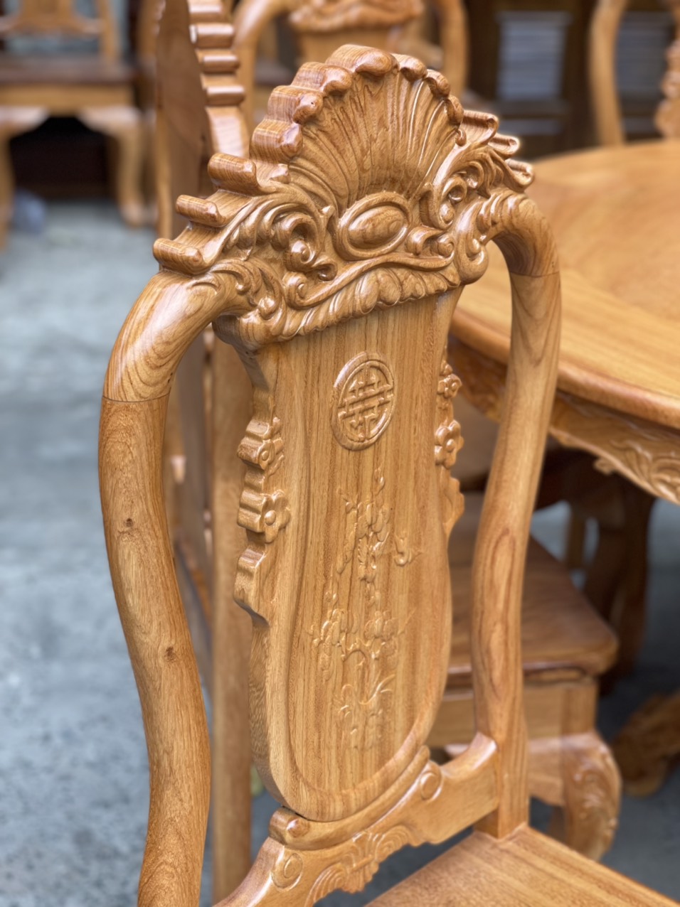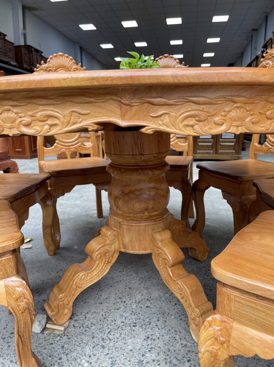 Chi tiết bàn ăn gỗ gõ đỏ tròn