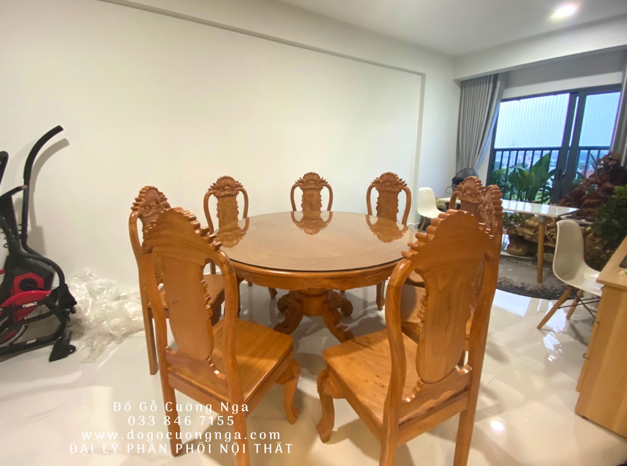 Gỗ gõ đỏ vốn là loại gỗ quý và được thiết kế rất cầu kỳ, công phu, những bộ bàn ghế không chỉ thực hiện tính năng phục vụ cho những bữa ăn mà hơn thế nó còn mang đến căn nhà vẻ đẹp của sự hoàn mỹ, sang trọng và đẳng cấp. Chúng ta cùng tham khảo những mẫu bộ bàn ăn tròn 8 ghế gỗ gõ đỏ này nhé