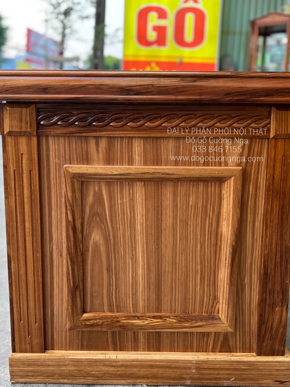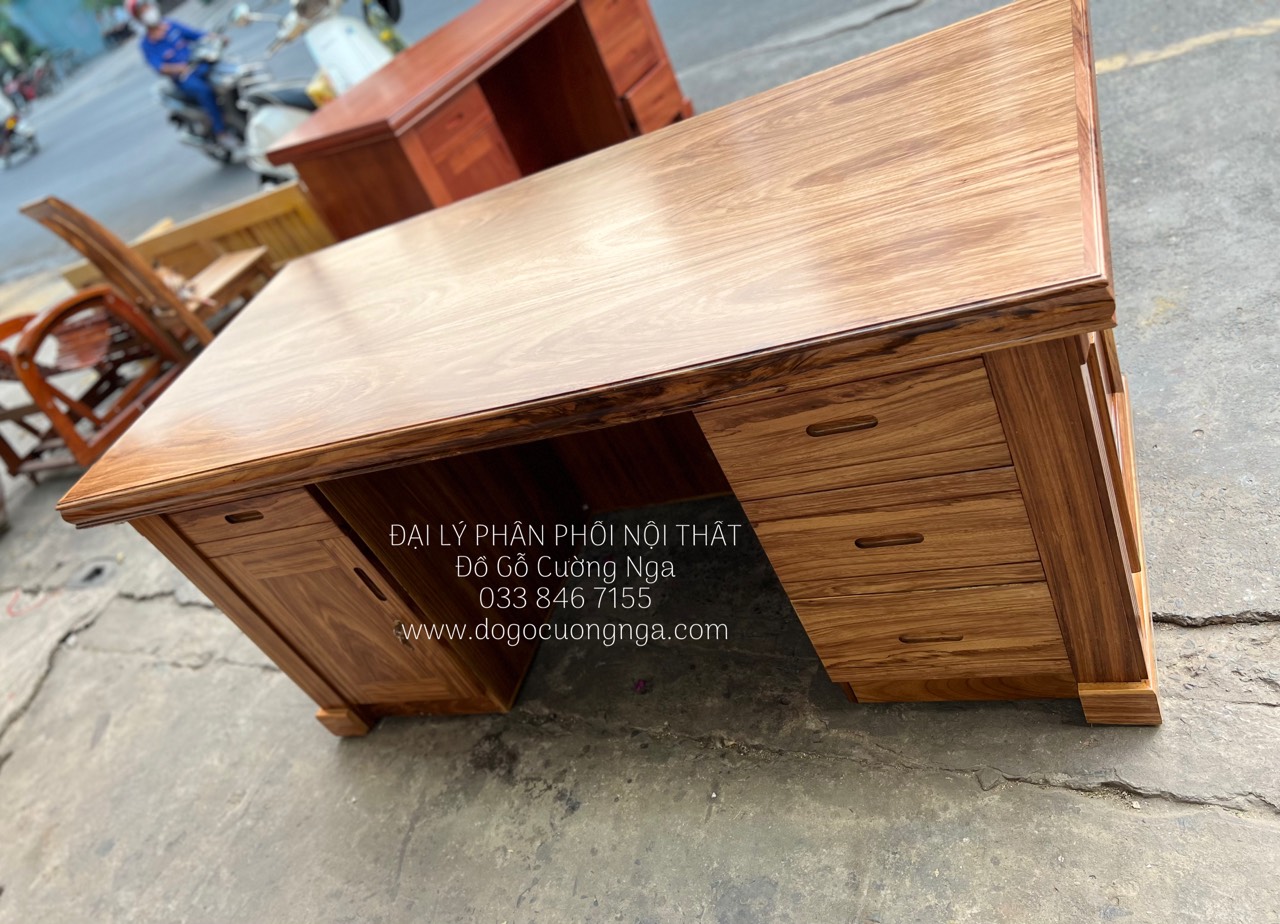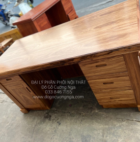 Chi tiết bàn làm việc giám đốc gỗ hương xám
