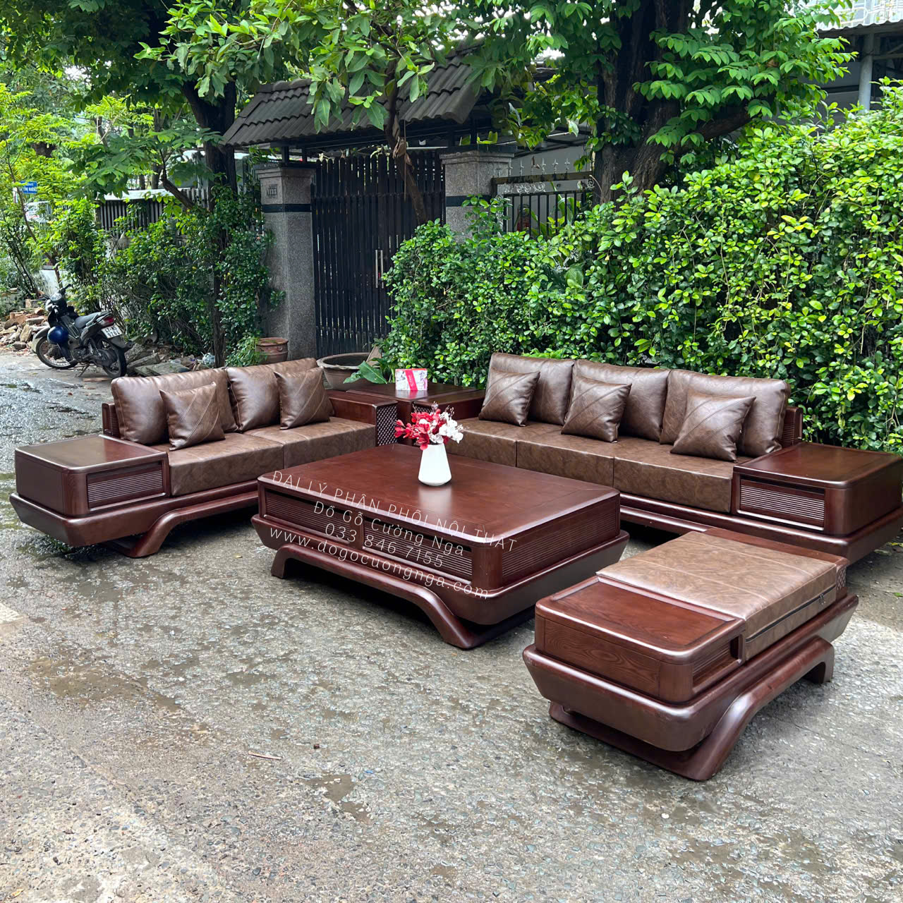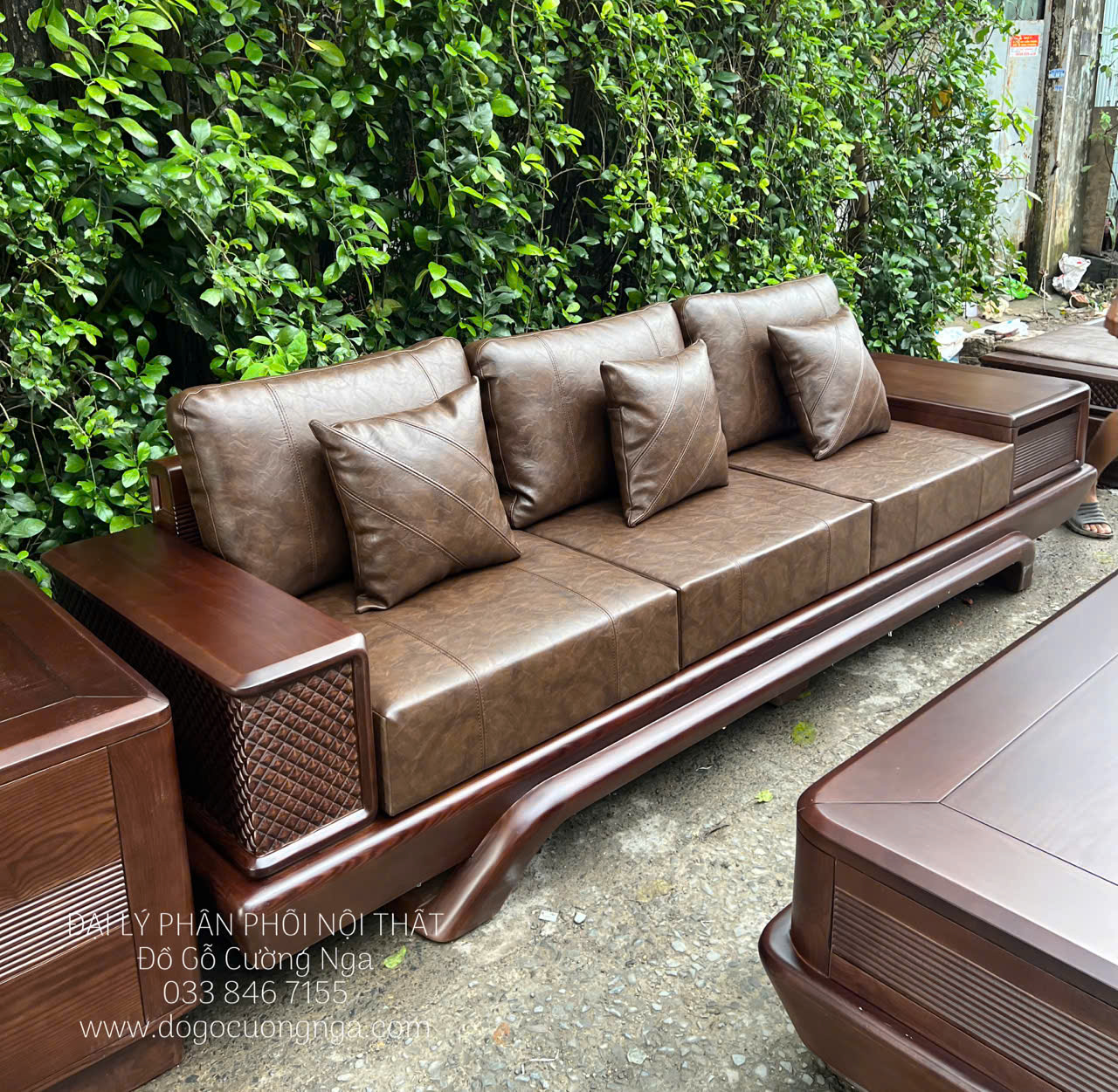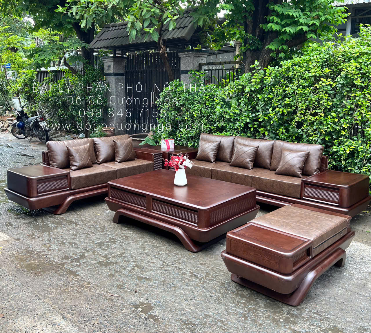 Bàn Ghế Phòng Khách Gỗ Sồi Nga 2 Văng Chân Thuyền Đại