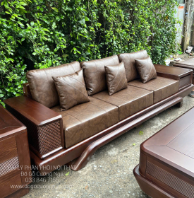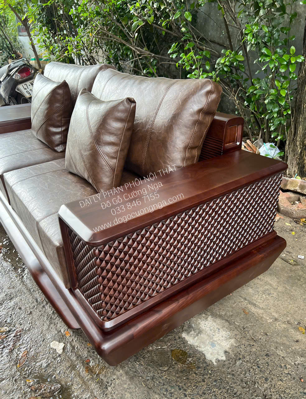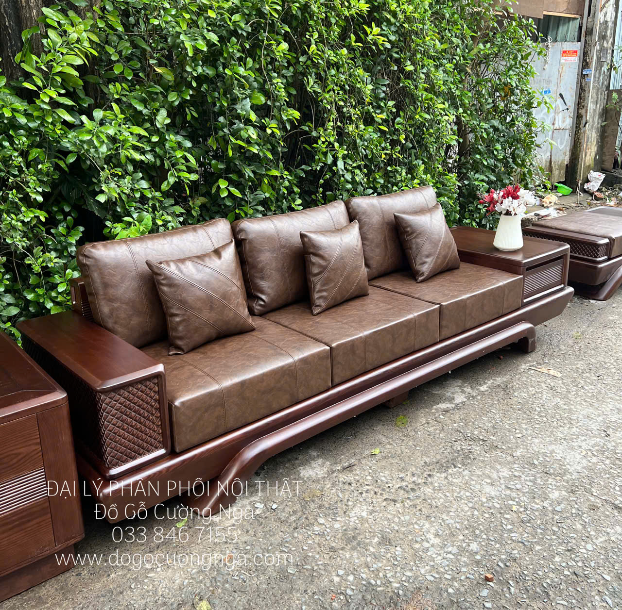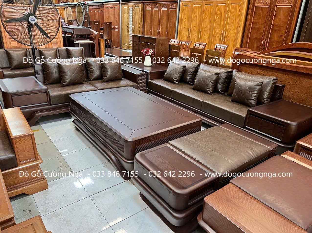 Bàn Ghế Phòng Khách Gỗ Sồi Nga 2 Văng Chân Thuyền Đại