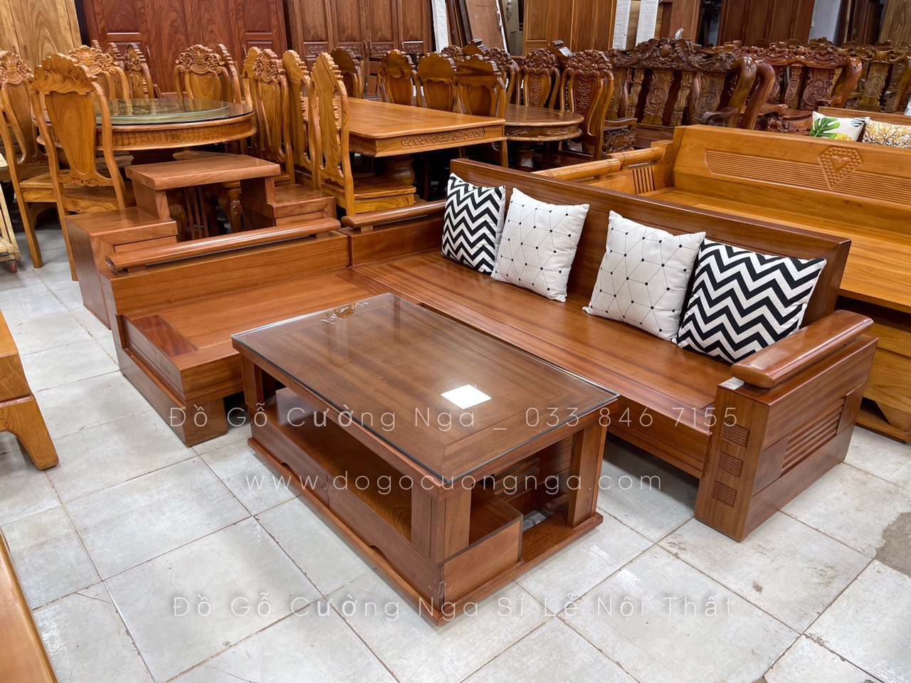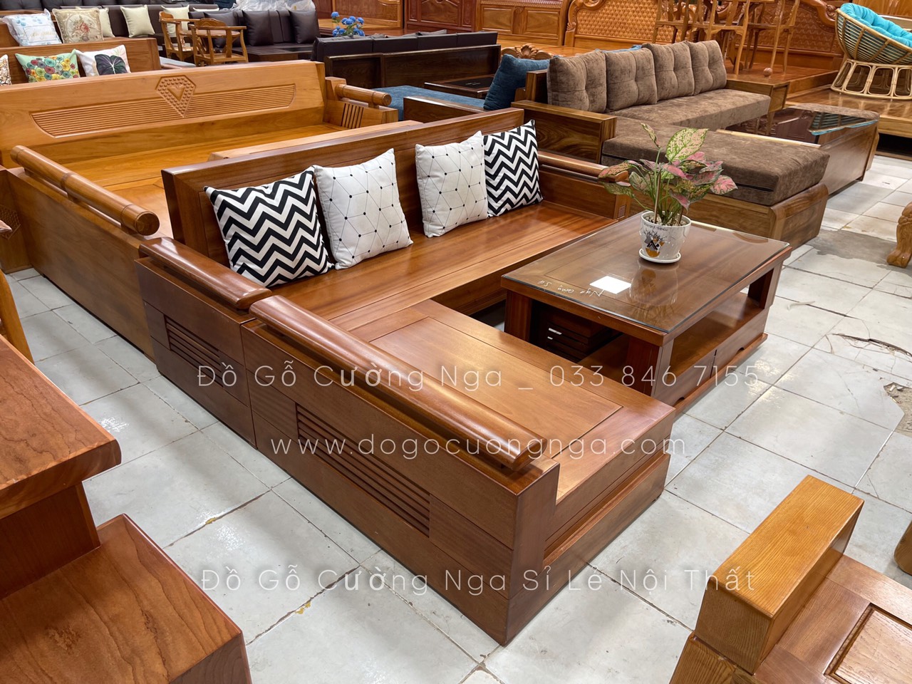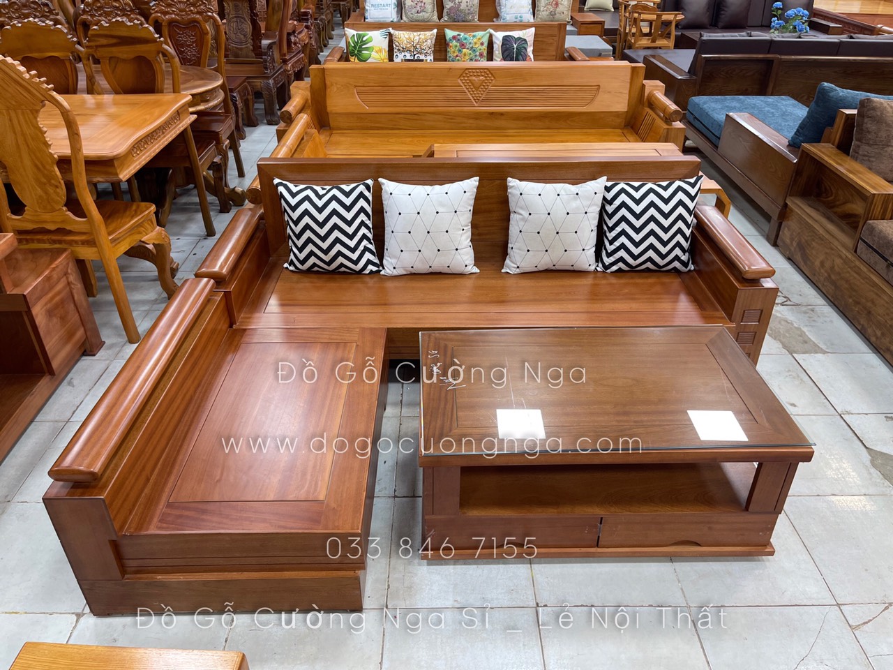 Chi Tiết Bộ Ghế Sofa Góc L Gỗ Xoan Đào