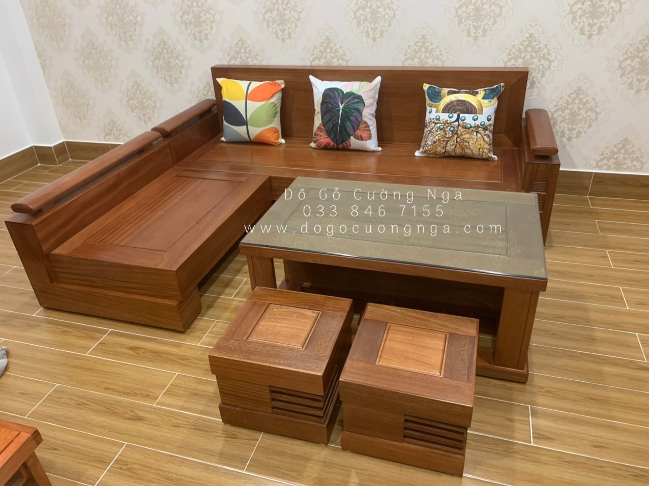 Bàn Ghế Phòng Khách Sofa Gỗ Xoan Đào Góc L 2m1x1m6