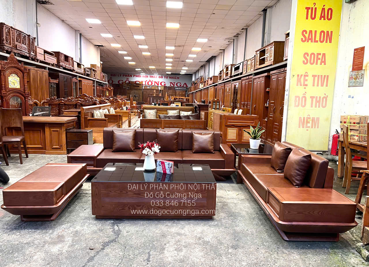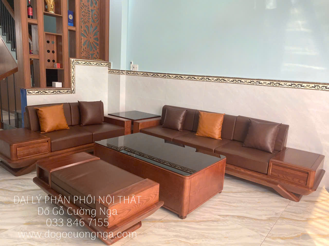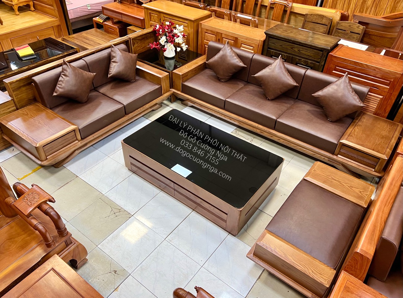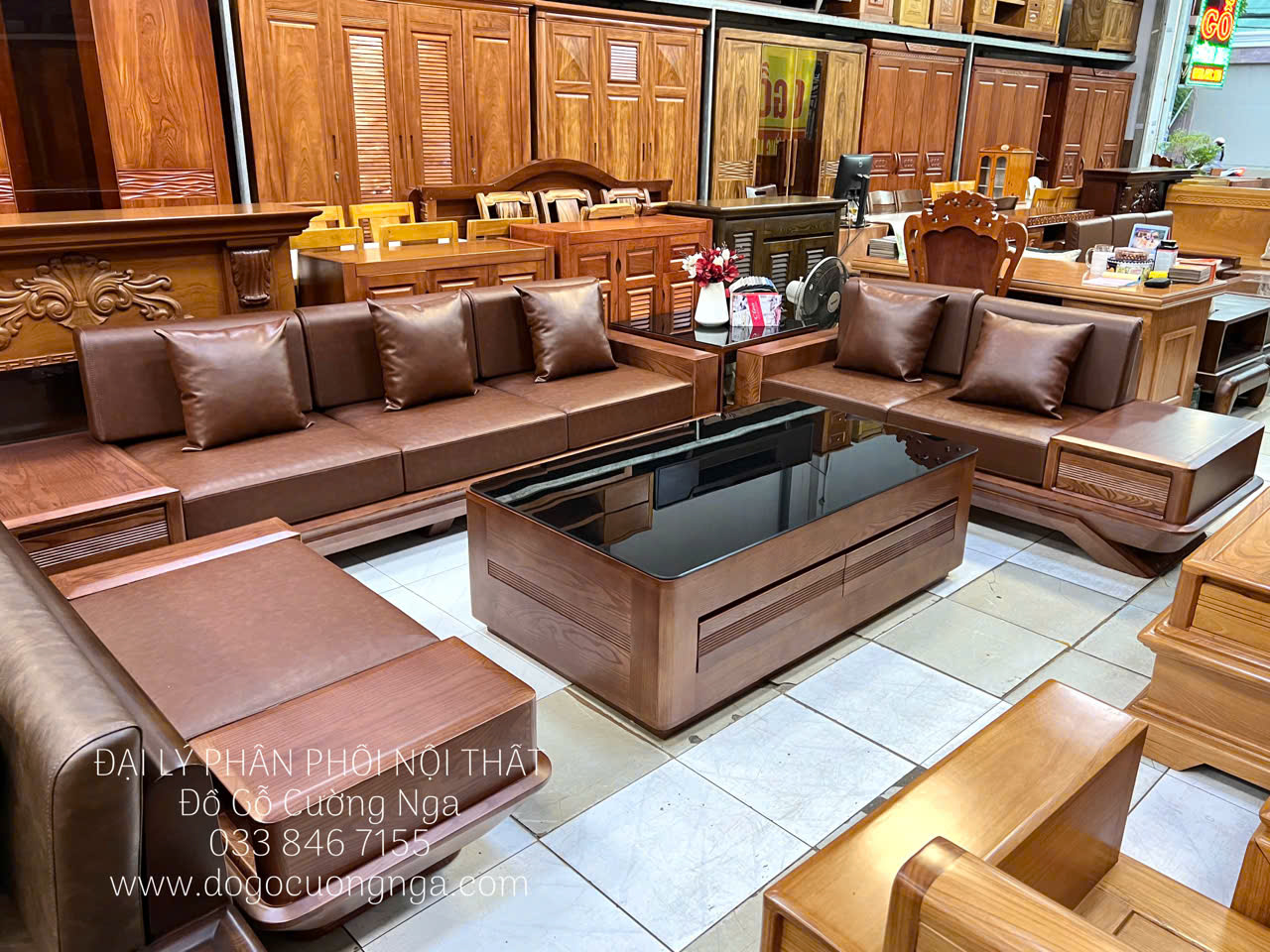 Bàn Ghế Sofa 2 Văng Gỗ Sồi Nga Cao Cấp Chân Thuyền