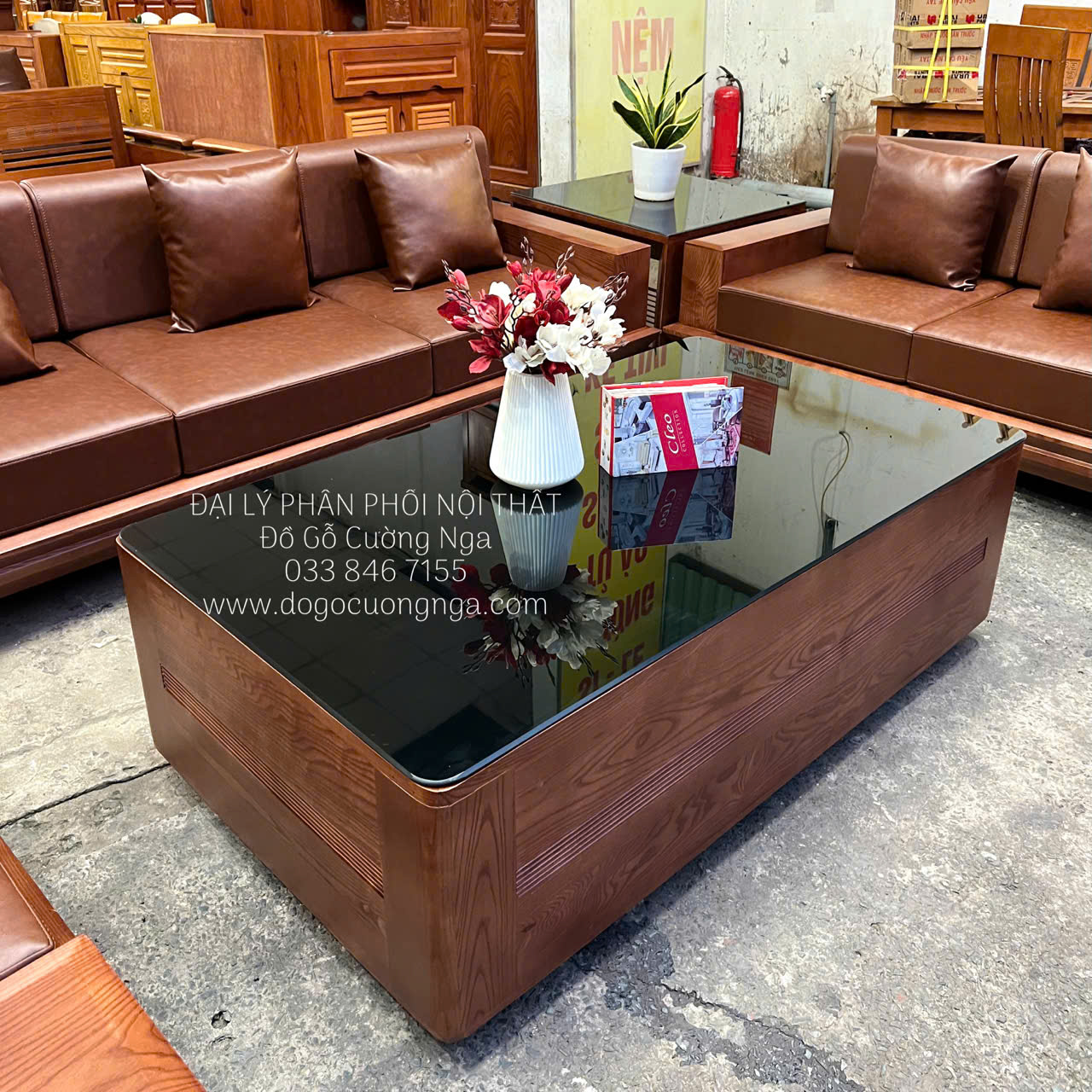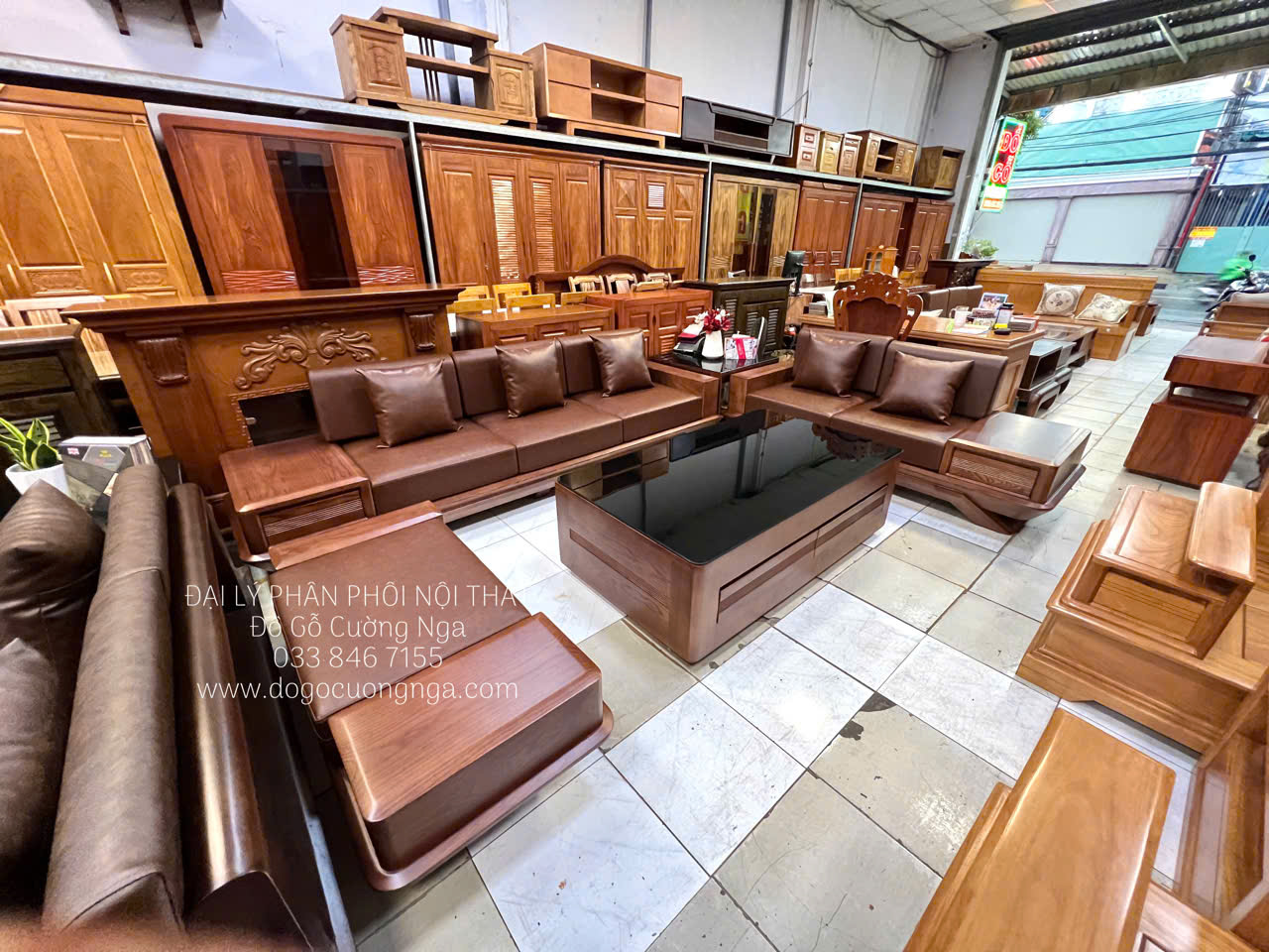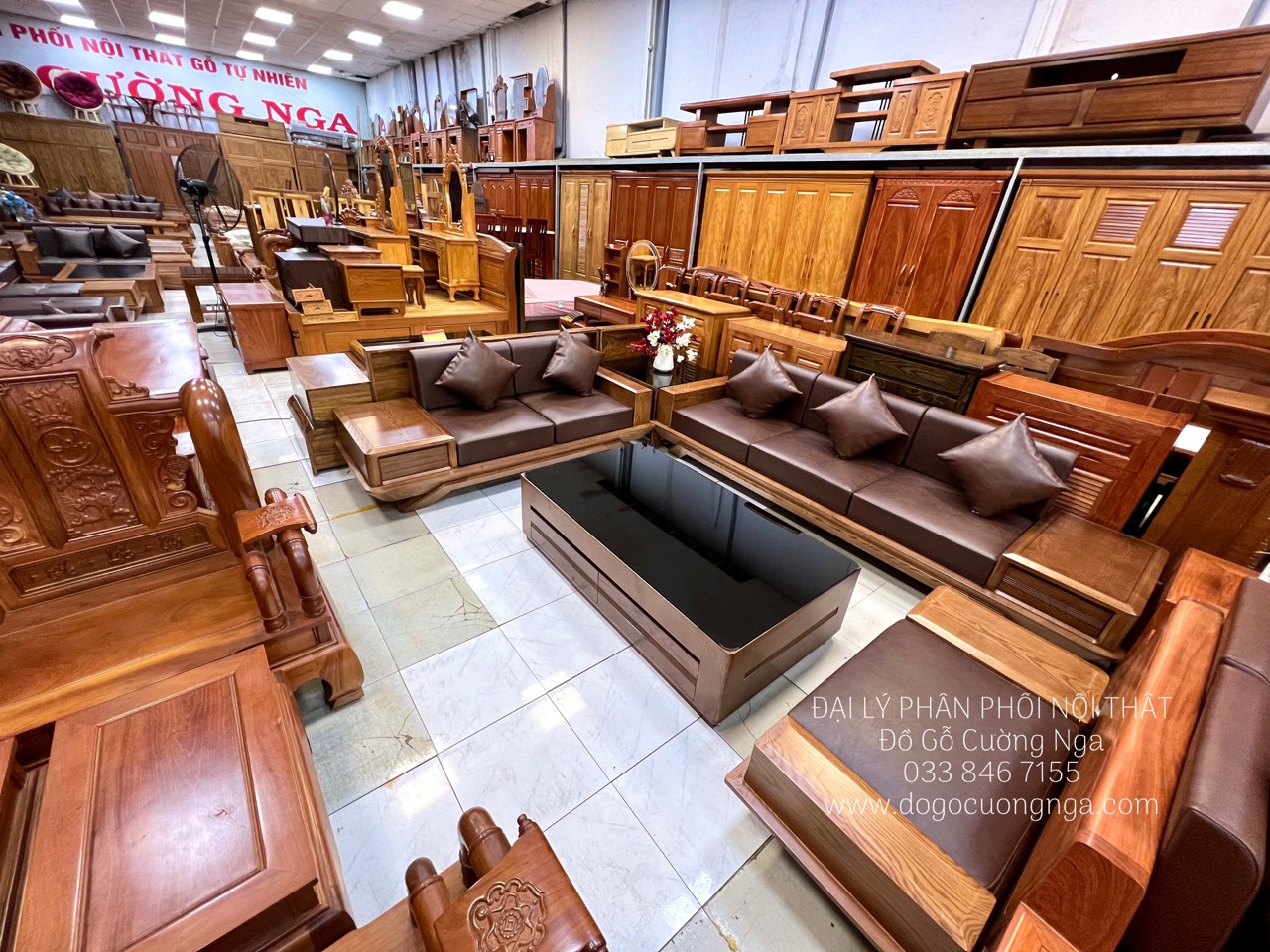 Bàn Ghế Sofa 2 Văng Gỗ Sồi Nga Cao Cấp Chân Thuyền