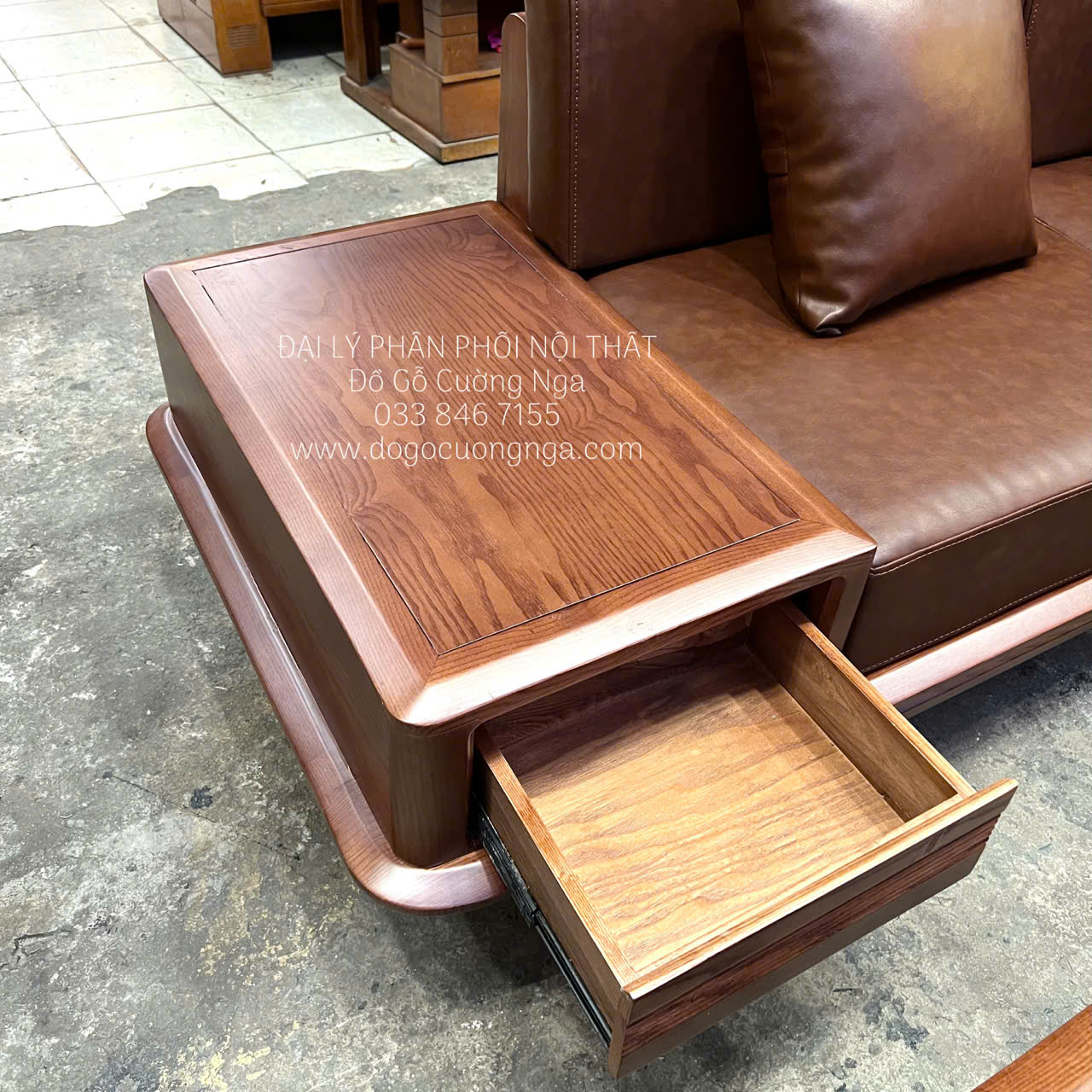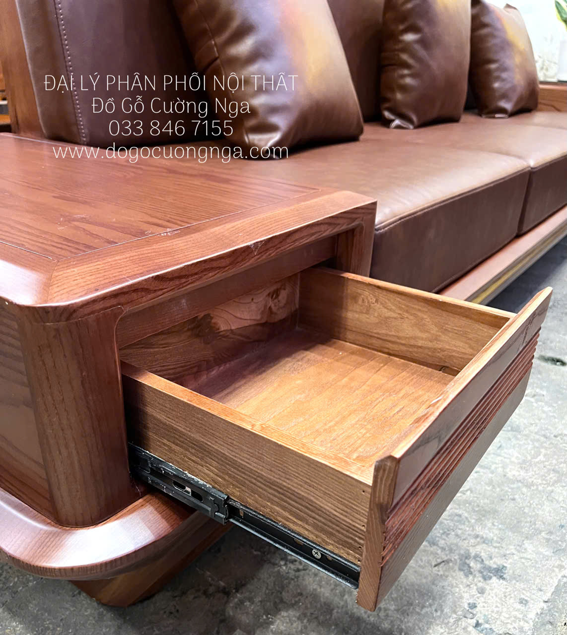 Thuộc hàng siêu phẩm trong các siêu phẩm,Sofa gỗ sồi lau màu óc chó của Cường Nga gây ấn tượng ngay từ cái nhìn đầu tiên. Từng thớ gỗ tuyển chọn với những đường vân gỗ nâu sậm sang trọng, bề mặt cuộn xoáy dạng sóng tự nhiên đẹp mắt là những điểm sáng giá tạo nên giá trị cho bộ sản phẩm.