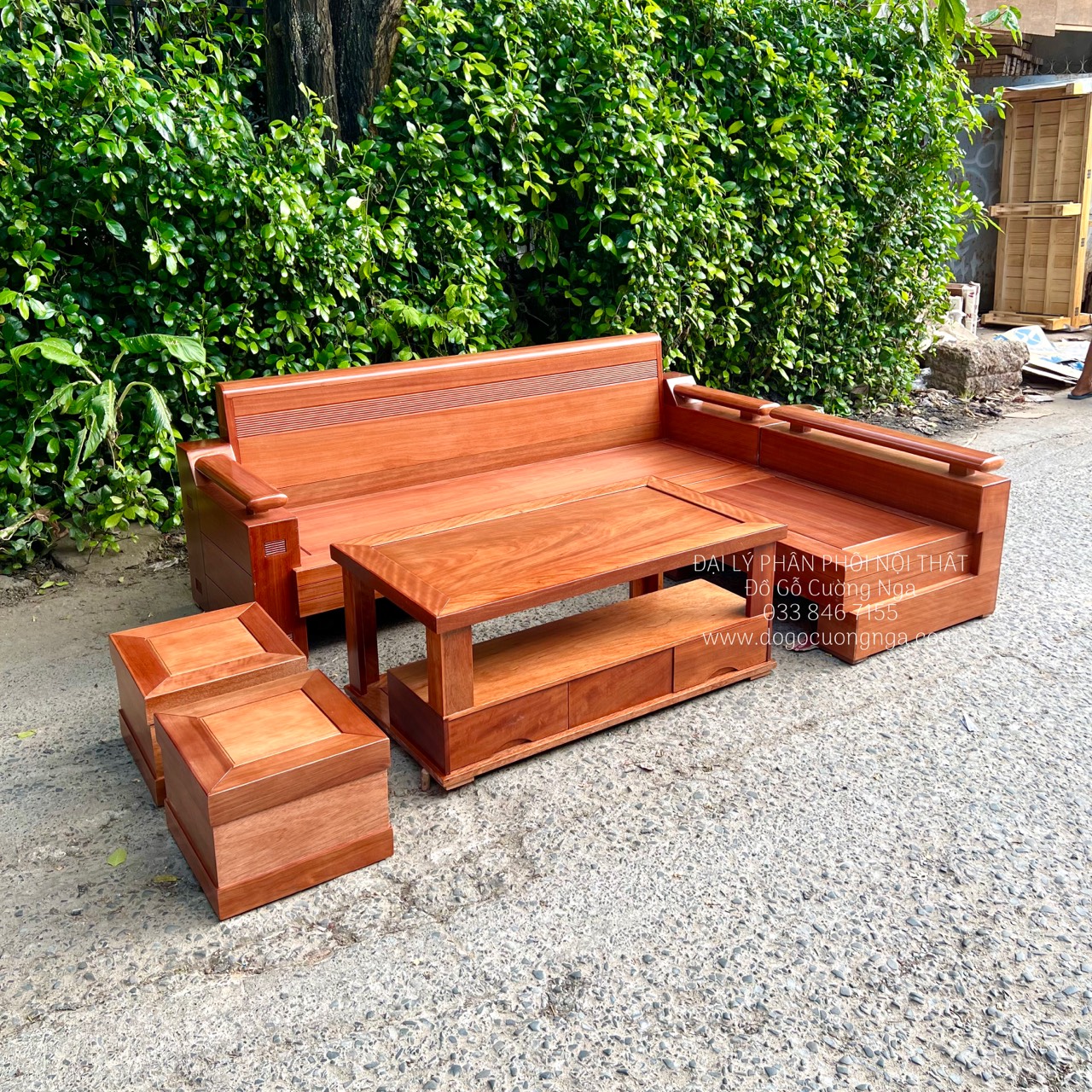 Kích thước bộ sofa gỗ đinh hương góc L