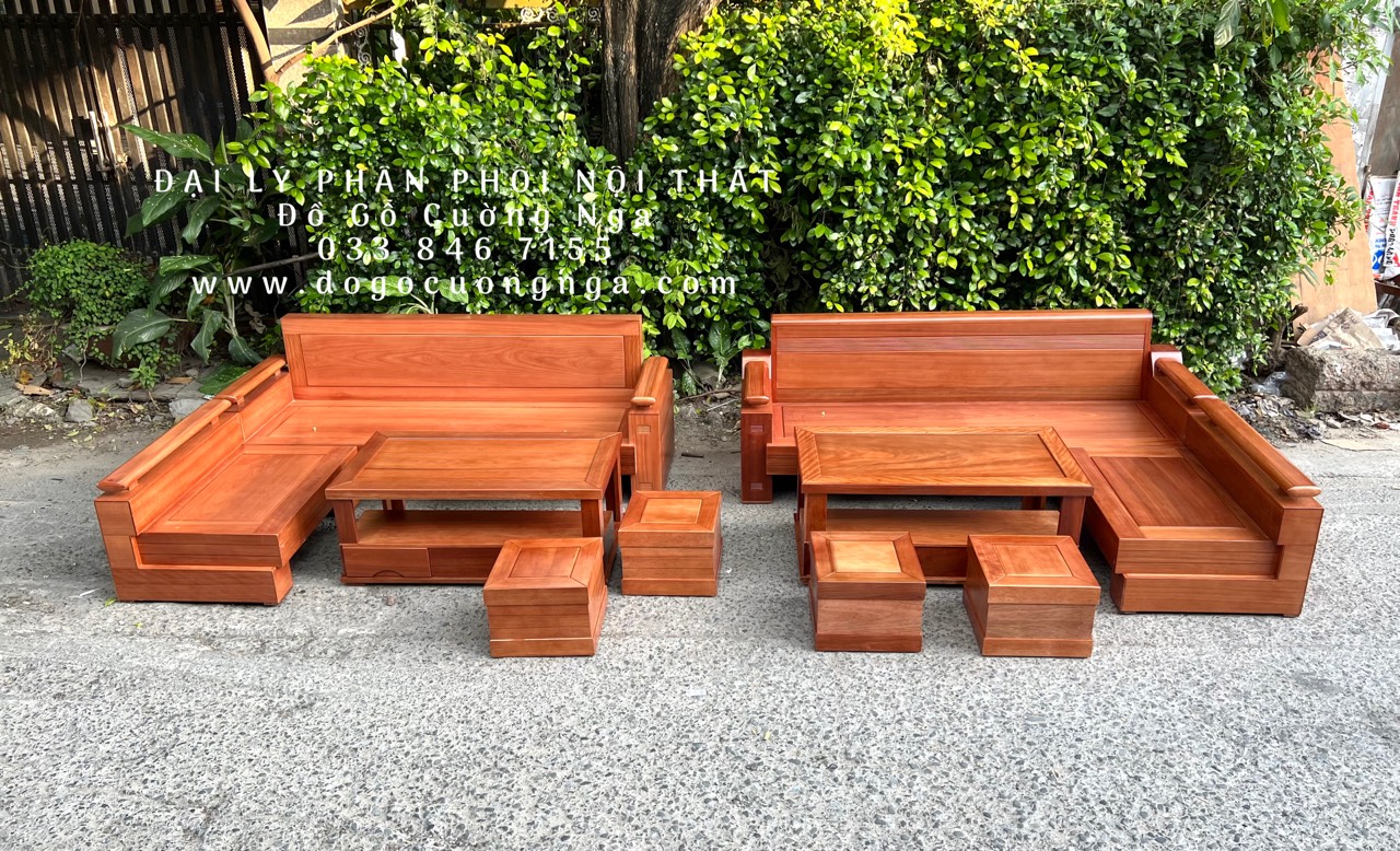 Bộ Bàn Ghế Sofa Gỗ Đinh Hương L 2m1x1m6 tựa cong