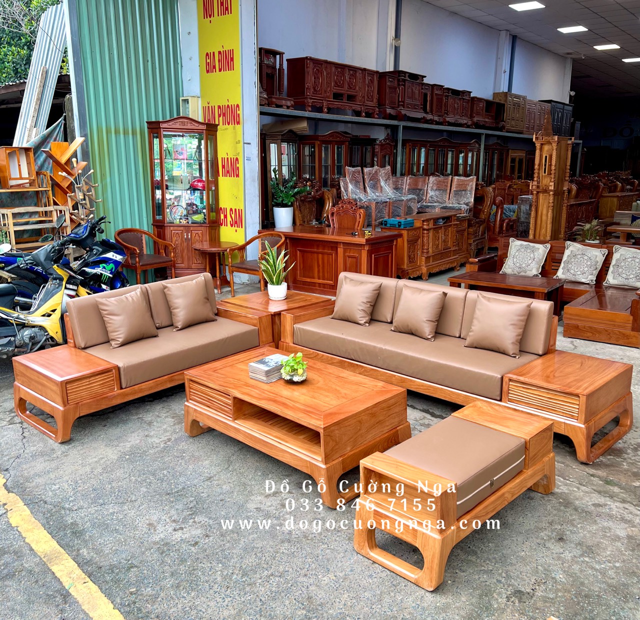 - Bộ ghế sofa 2 văng chân quỳ gỗ gõ đỏ SF 068