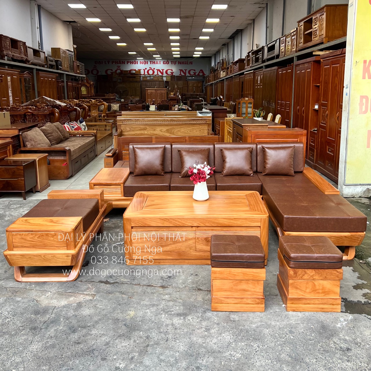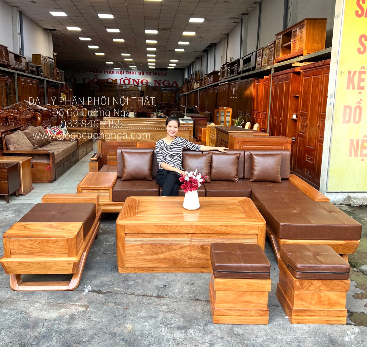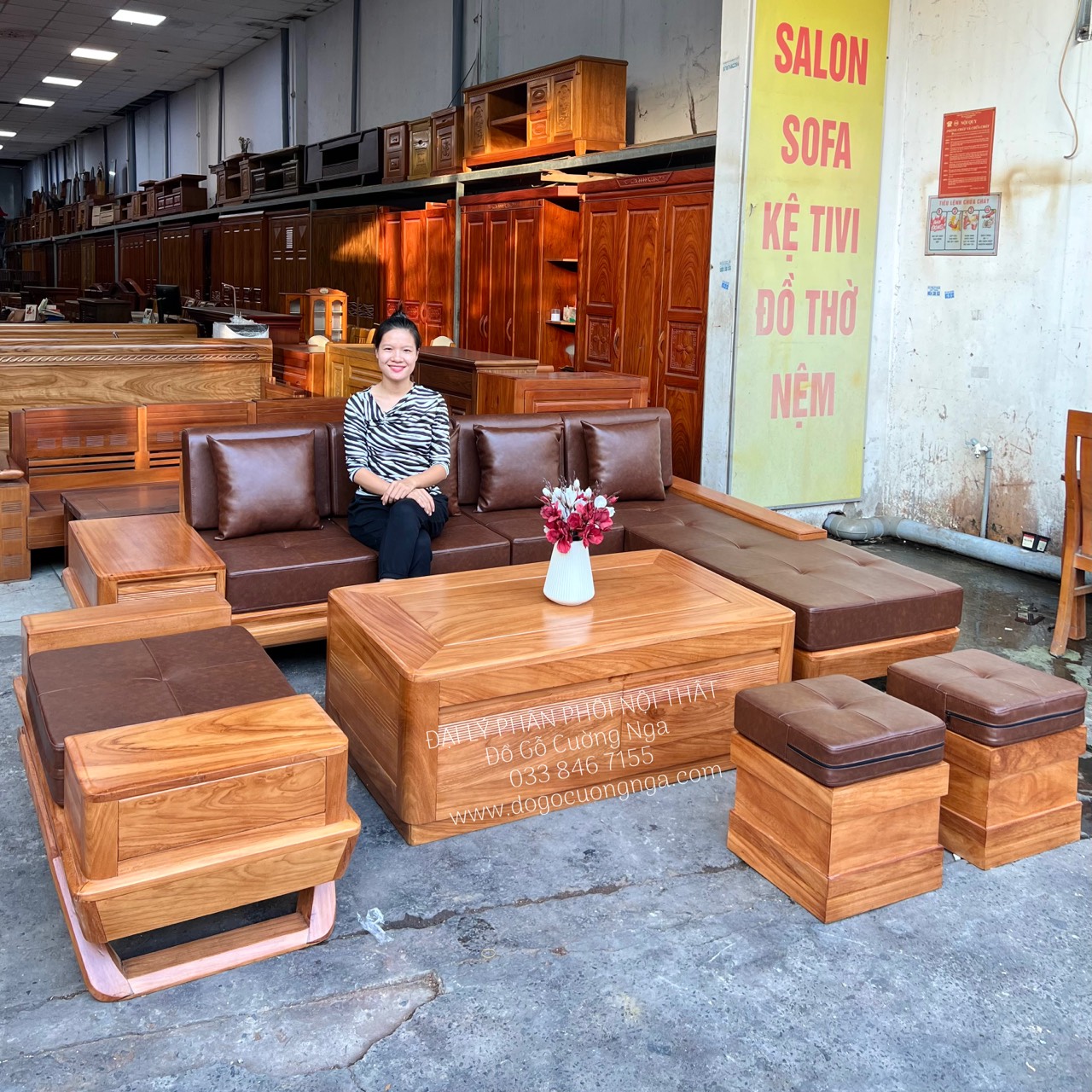 Với thiết kế chữ L độc đáo, bộ bàn ghế sofa gỗ này không chỉ mang lại sự tiện ích mà còn tạo điểm nhấn độc đáo cho không gian phòng khách của bạn.