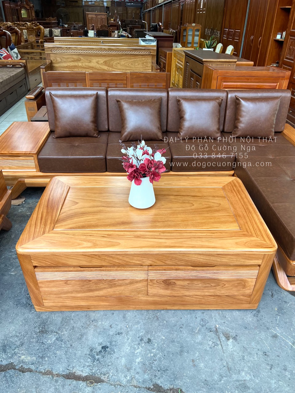 Bàn sofa gỗ gõ đỏ nhìn vân gỗ to đều đẹp mắt