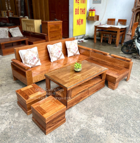 Bàn Ghế Sofa Gỗ Hương Xám Góc L 2mx1m8 Hiện Đại