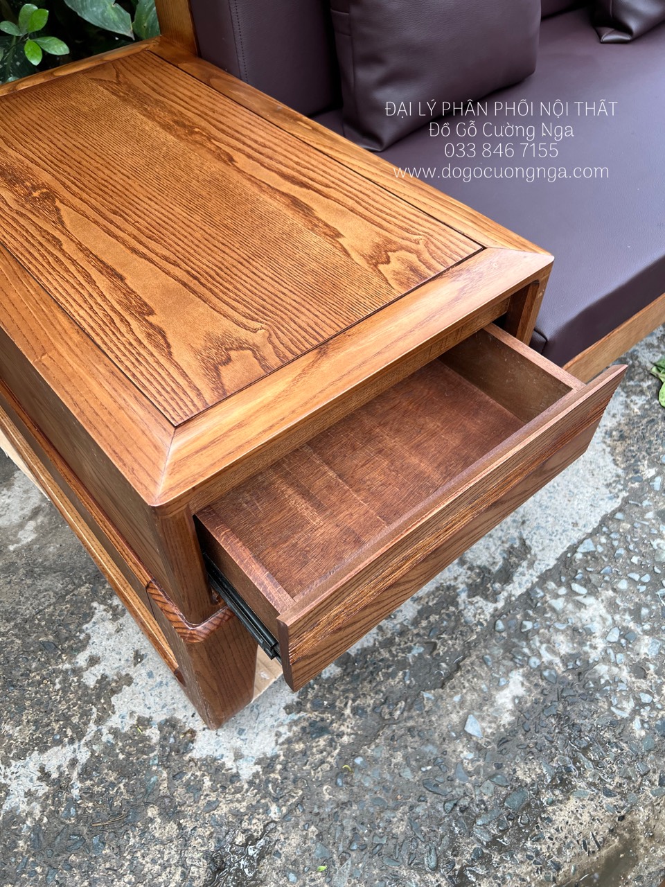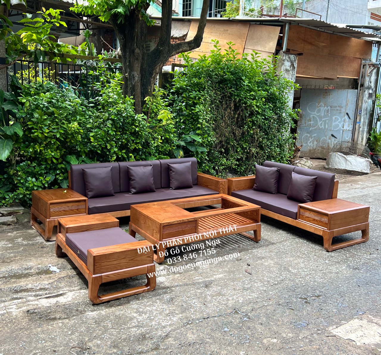Bàn Ghế Sofa Gỗ Sồi Nga 2 Văng Choãi - Lau Màu Óc Chó SF 071