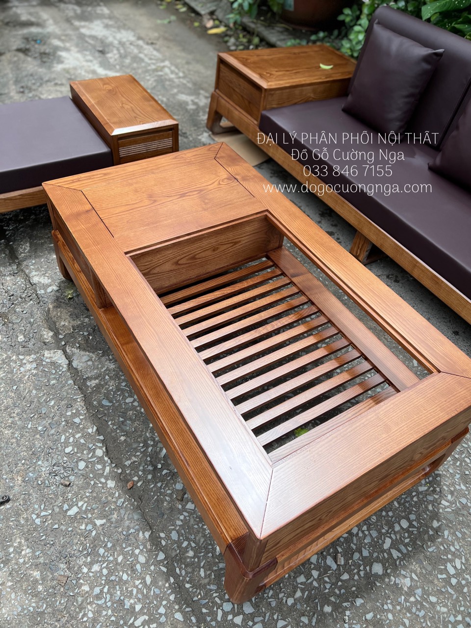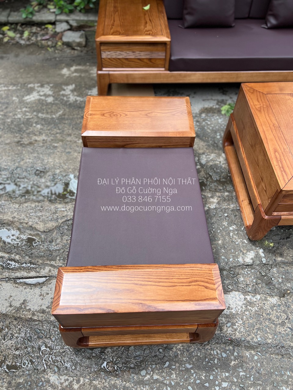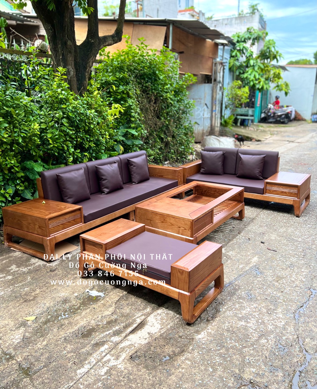 Bàn Ghế Sofa Gỗ Sồi Nga 2 Văng Choãi Hiện Đại