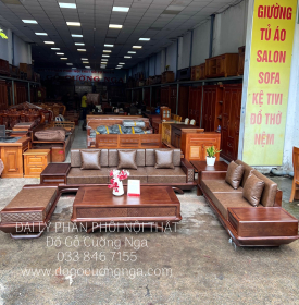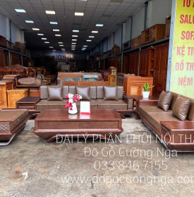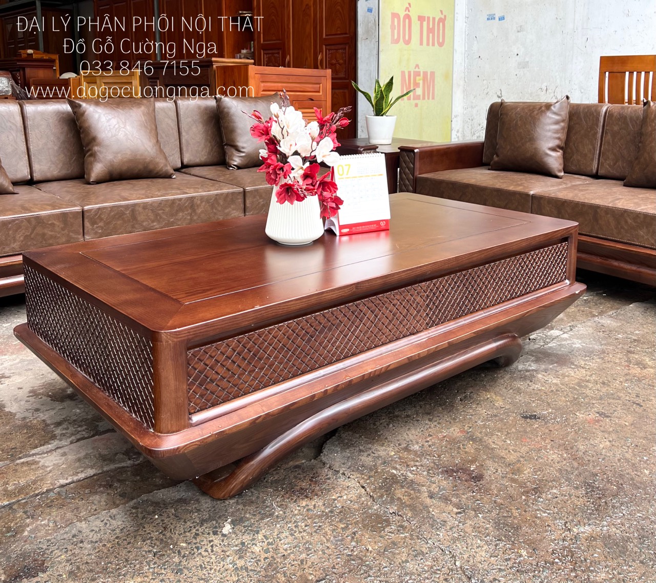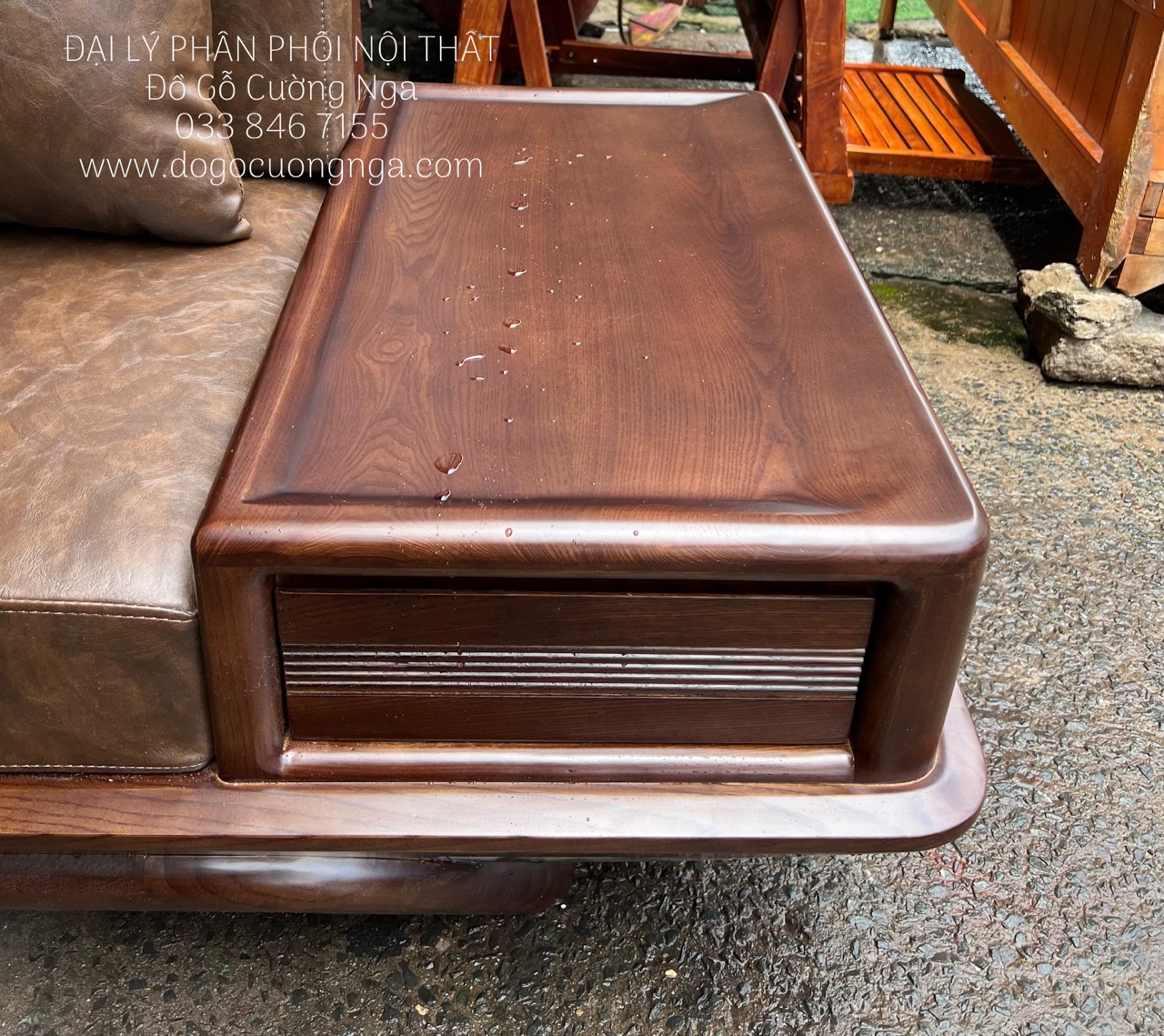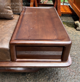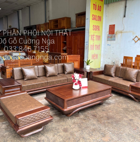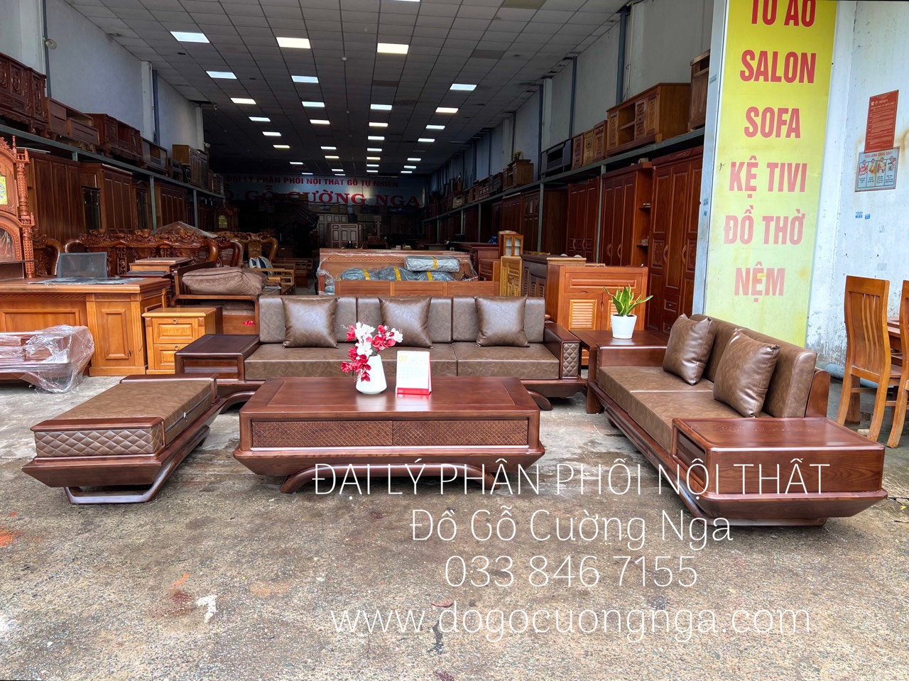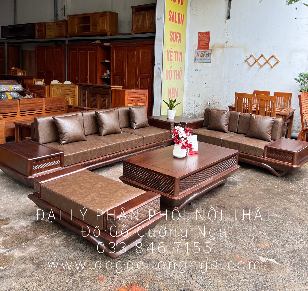 Bàn Ghế Sofa Gỗ Sồi Nga 2 Văng Lau Màu Óc Chó Tay Da Cao Cấp