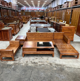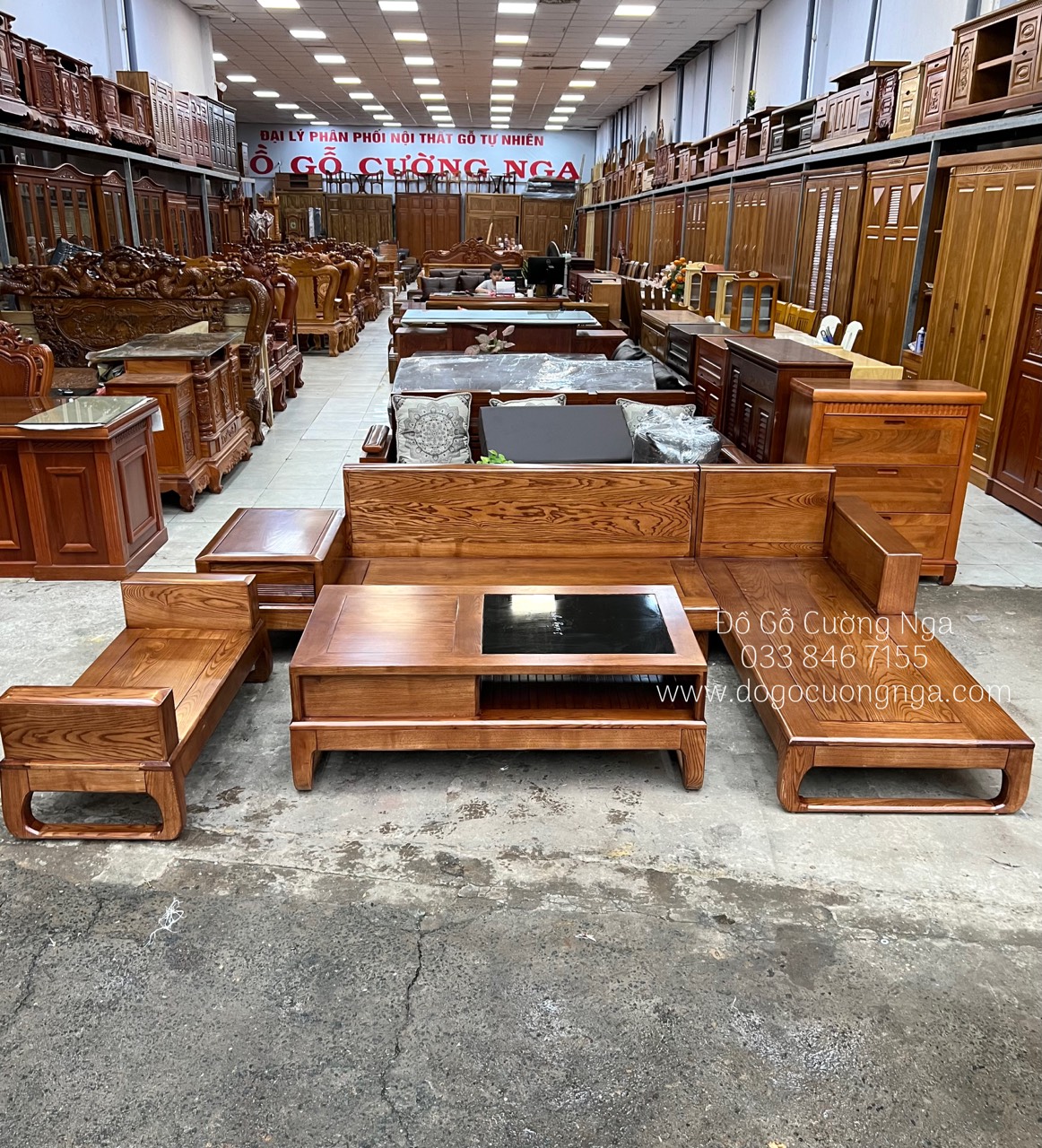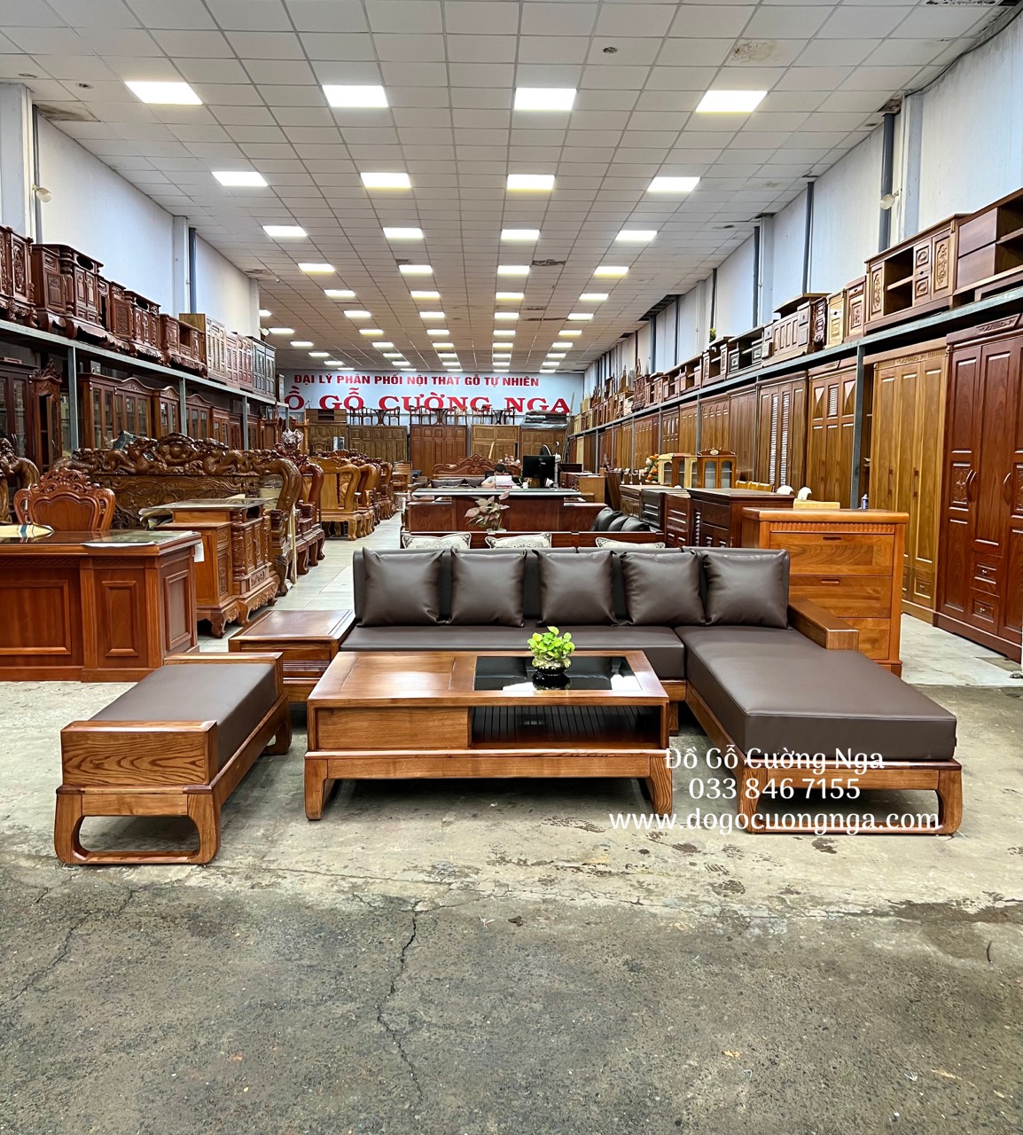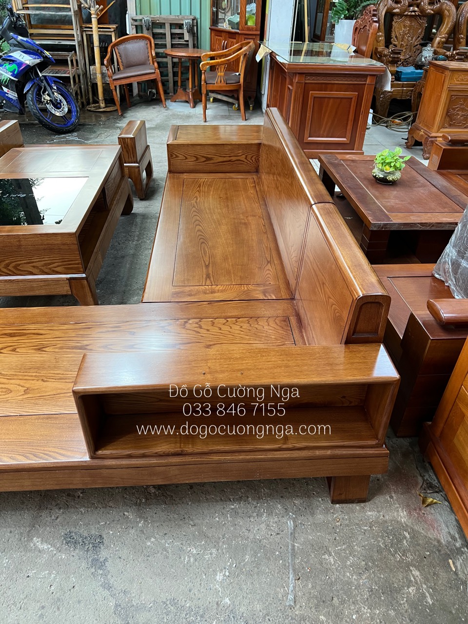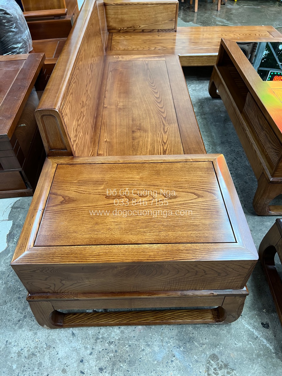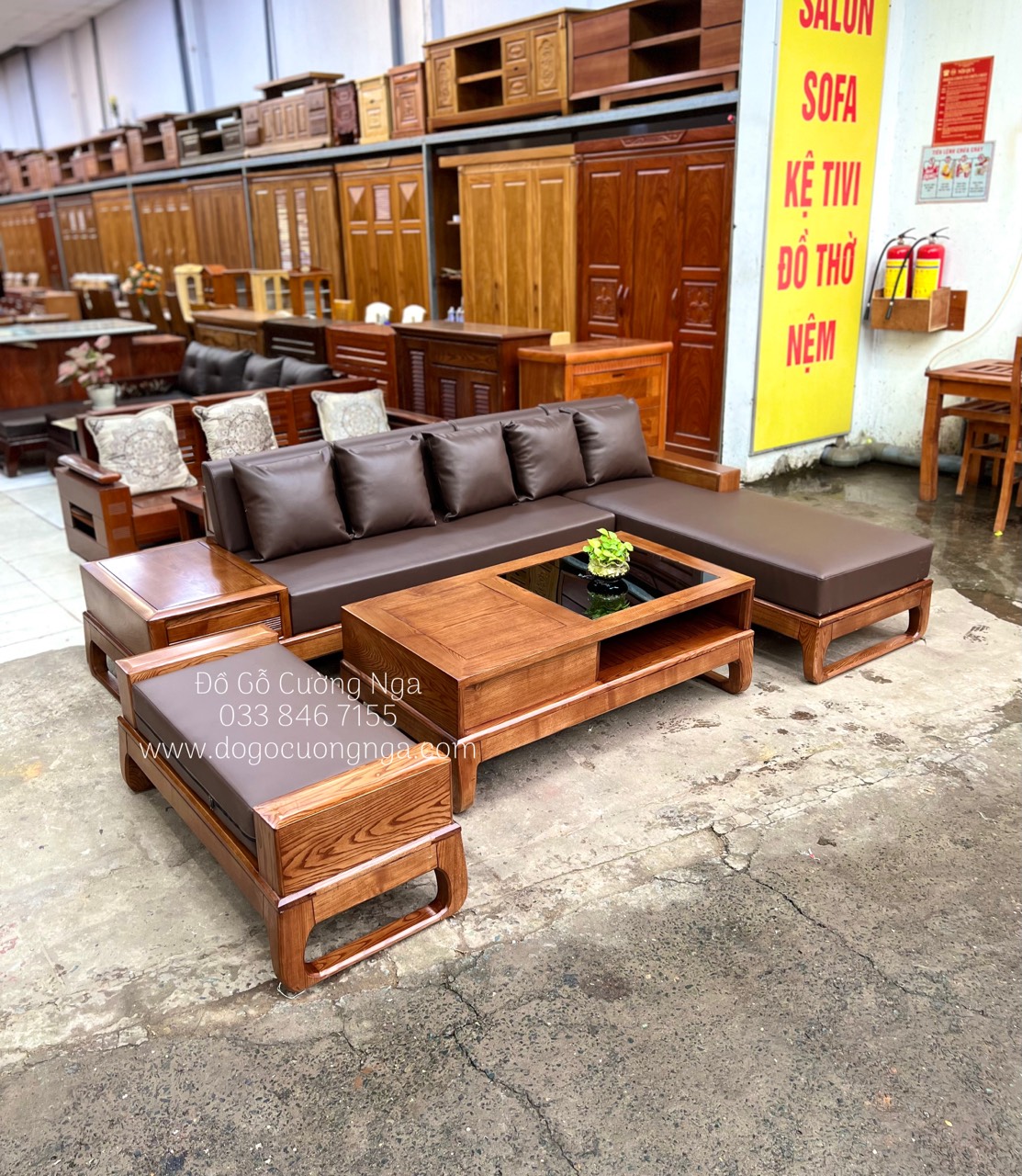 Bộ Bàn Ghế Sofa Gỗ Sồi Nga Chữ L SF 066 Đẹp Hiện Đại Tại Đồ Gỗ Cường Nga