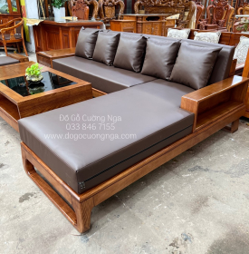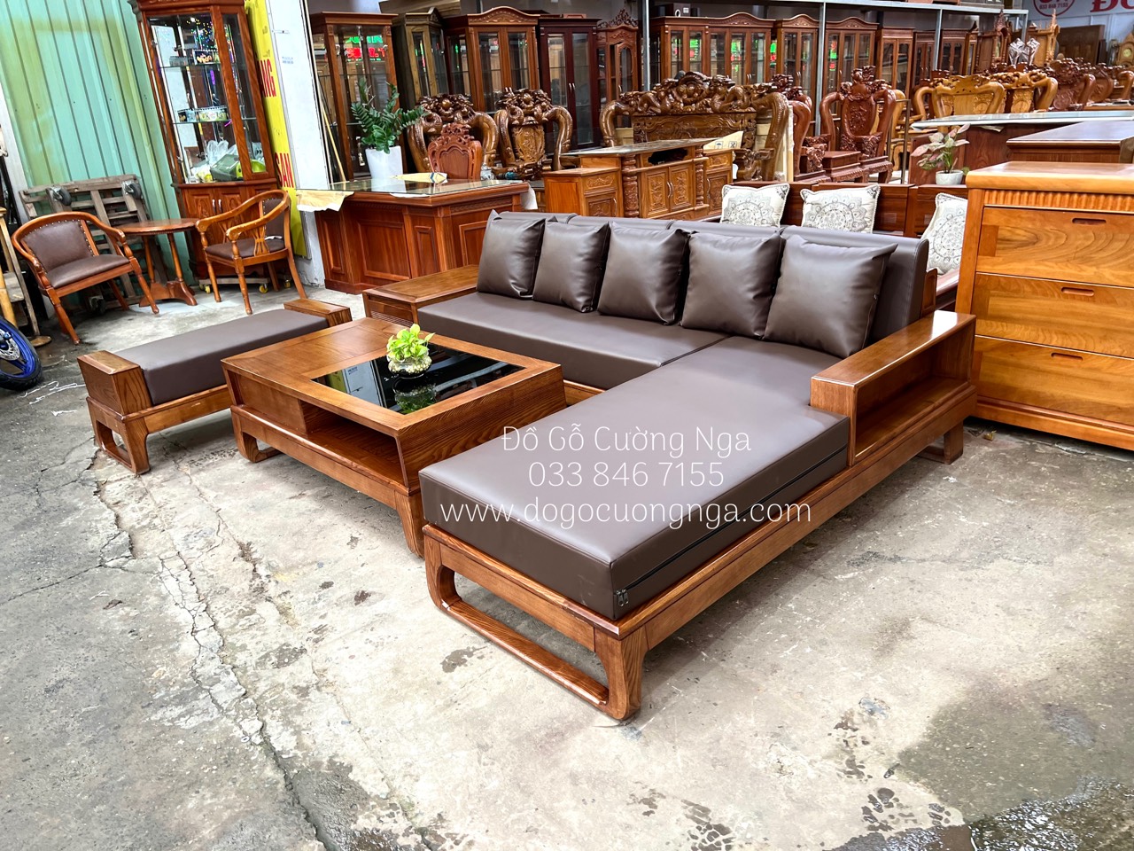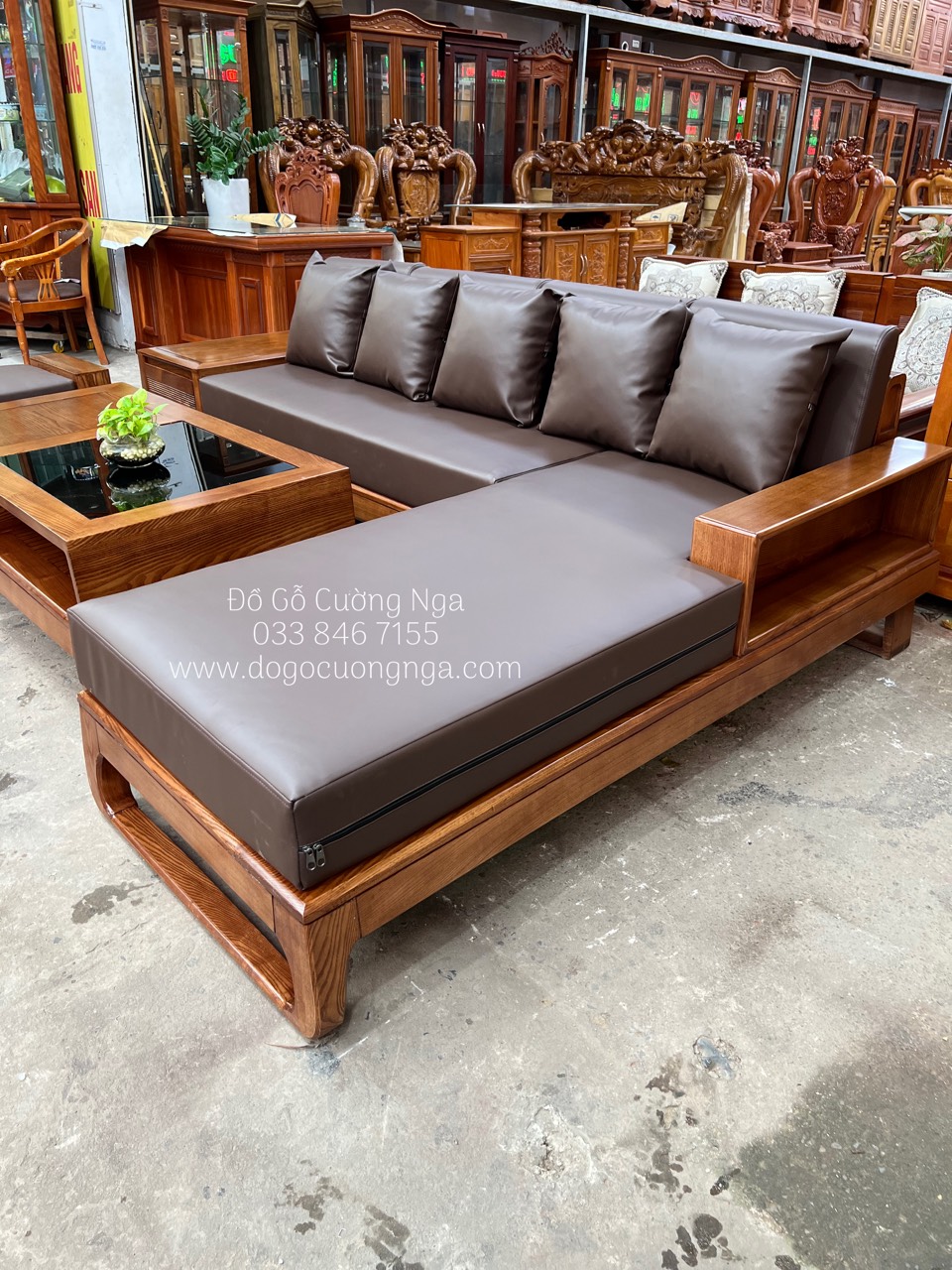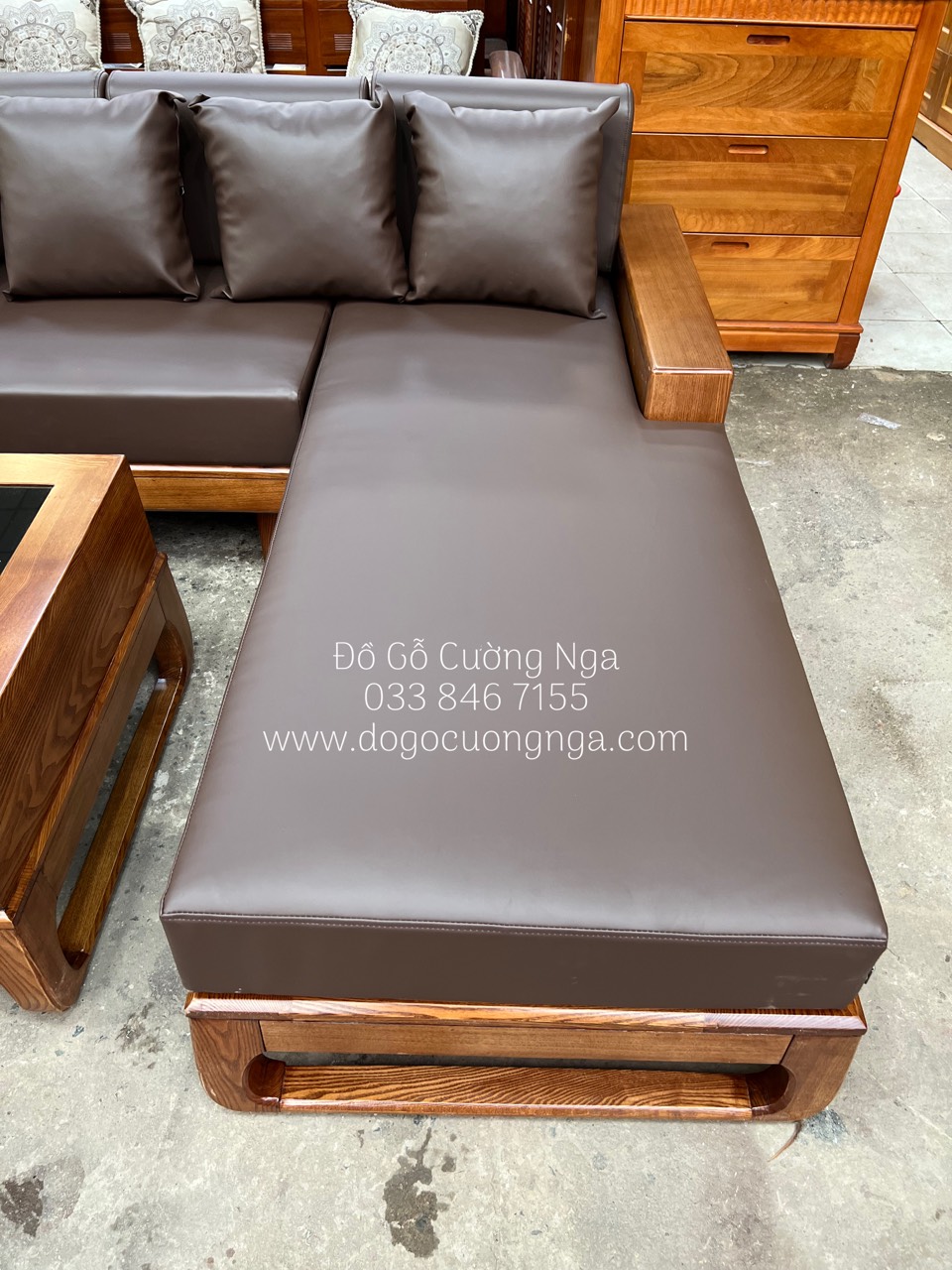 Bàn Ghế Sofa Gỗ Sồi Nga Góc L Hiện Đại 2m8x1m8 - Nệm Da