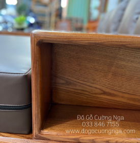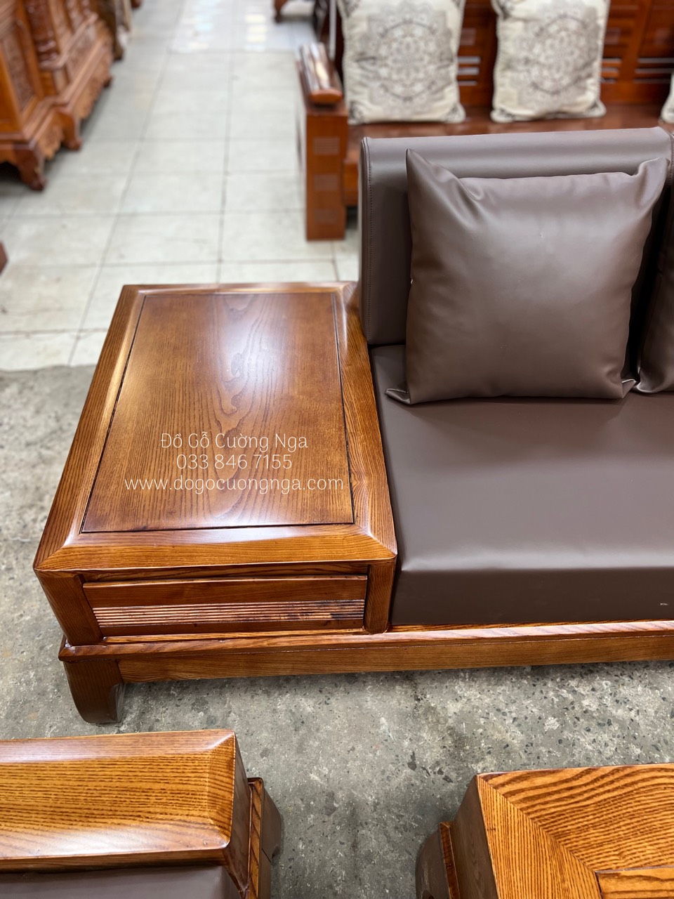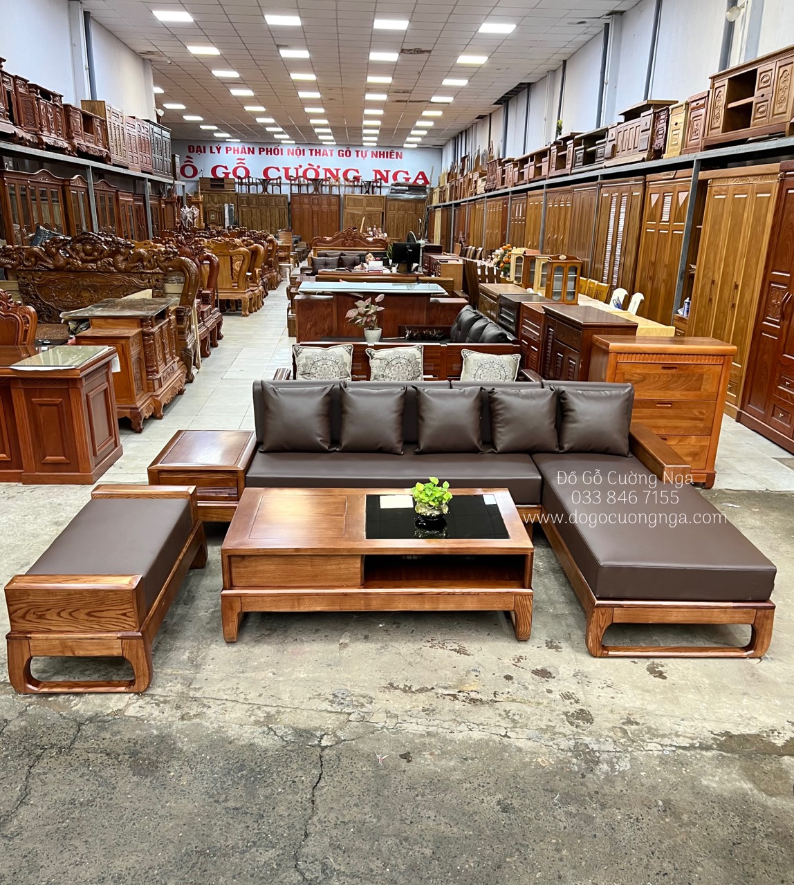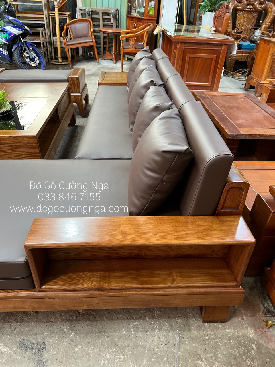 Bàn Ghế Sofa Gỗ Sồi Nga Góc L Hiện Đại 2m8x1m8 - Nệm Da