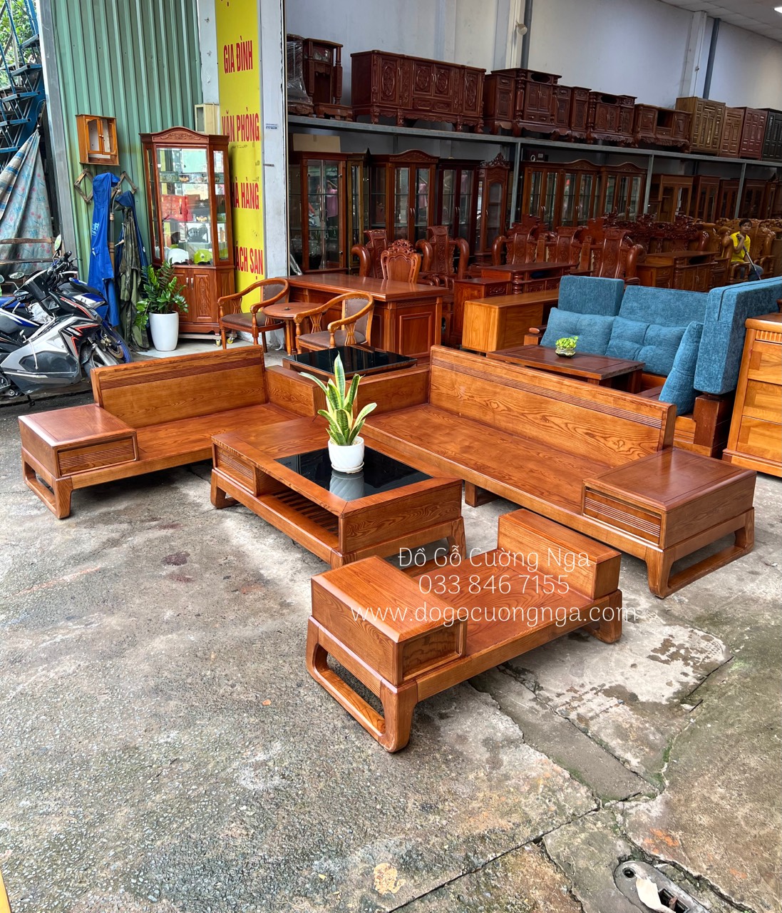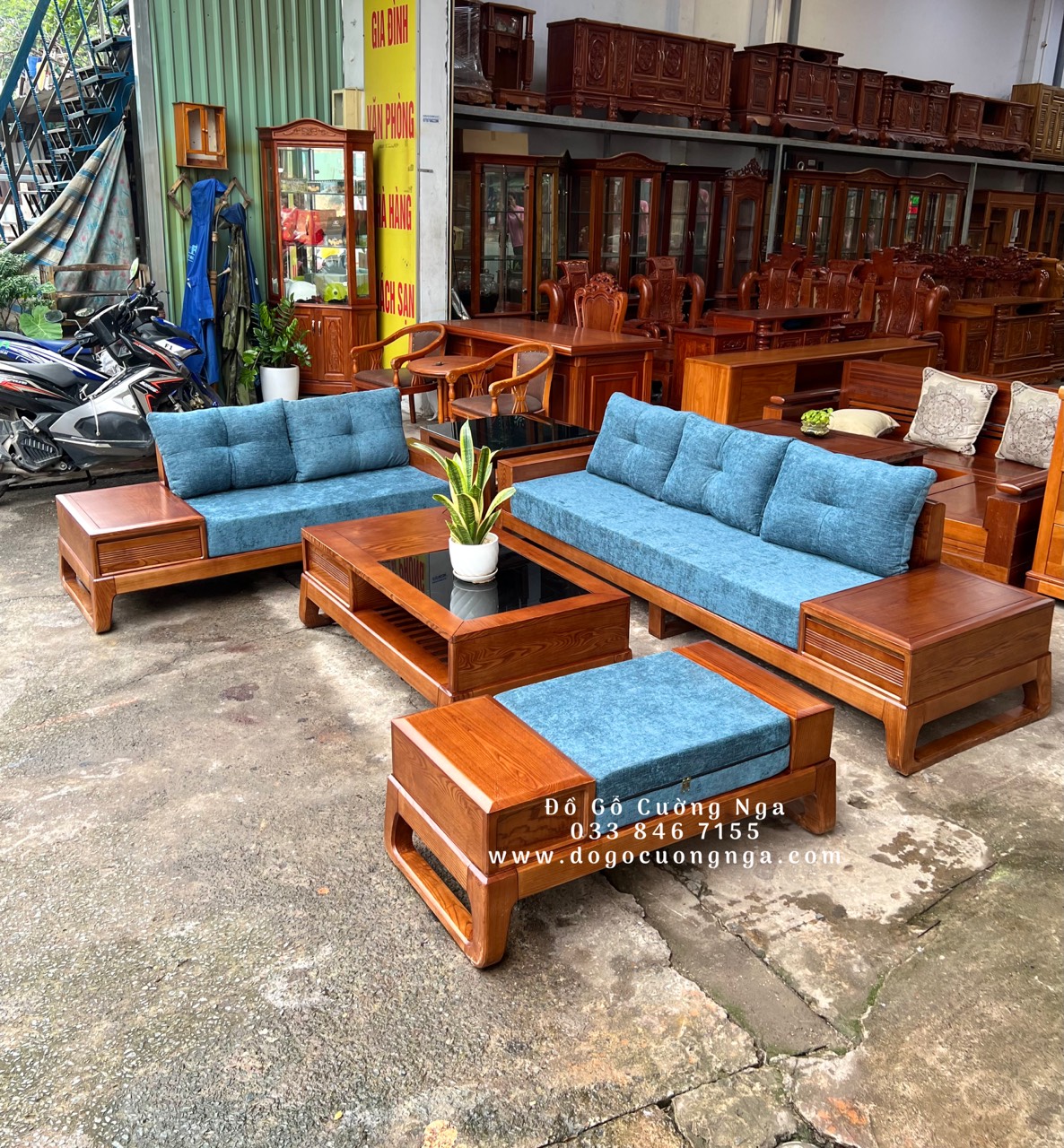 Bàn Ghế Sofa Gỗ Sồi Nga Lau Màu Hương