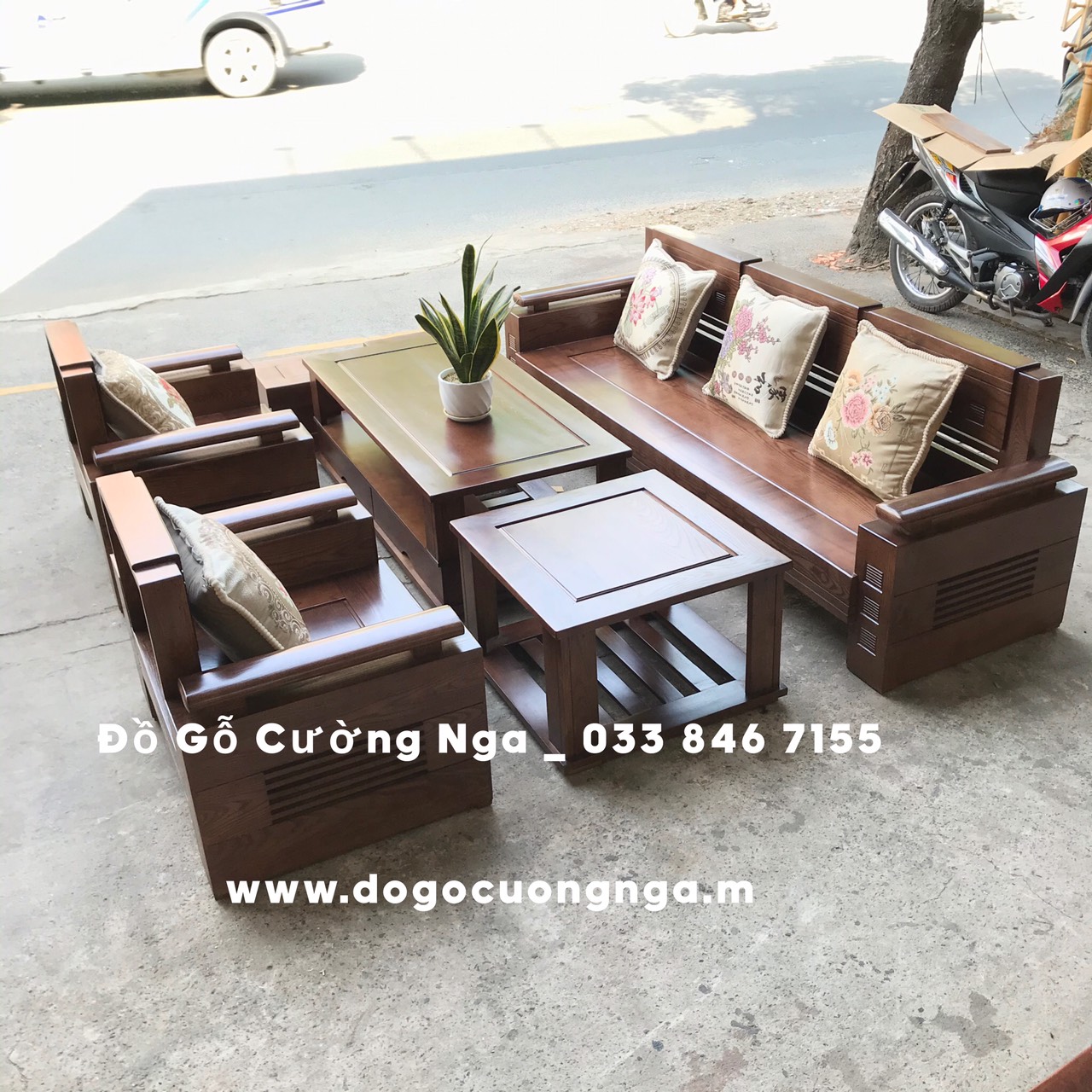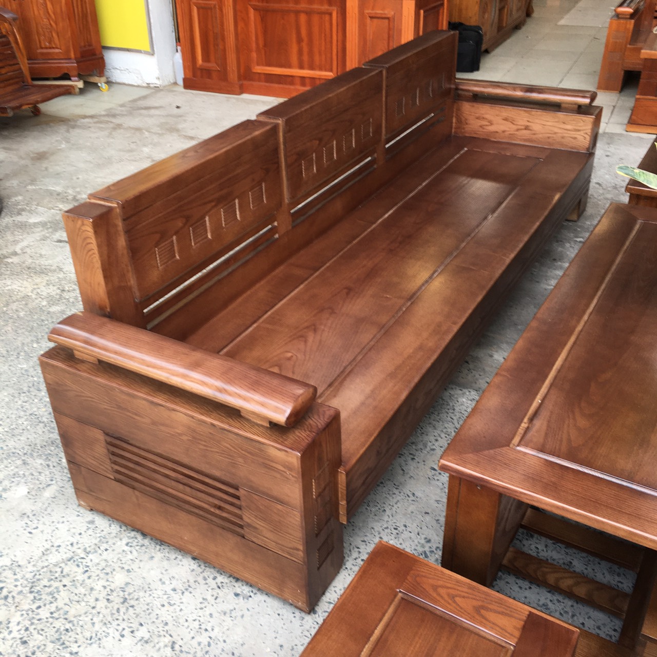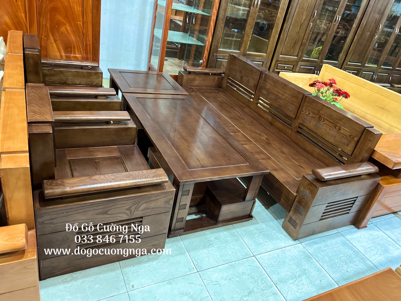 Bàn Ghế Sofa Gỗ Sồi Nga Lau Màu Óc Chó