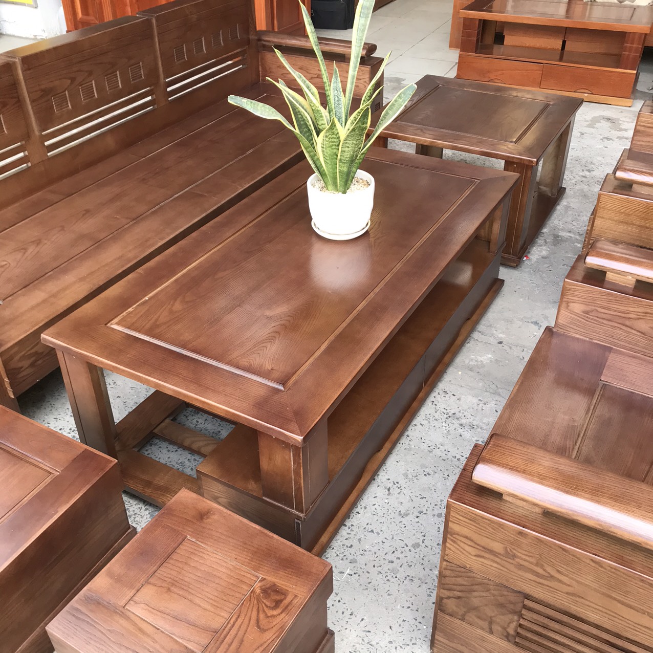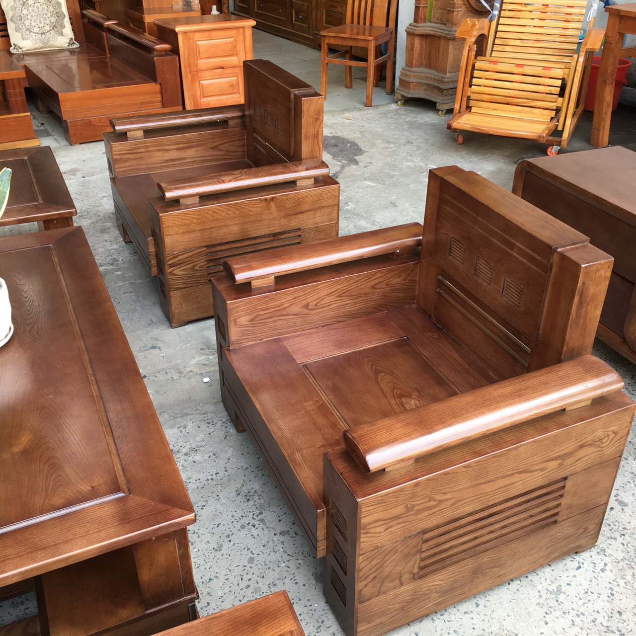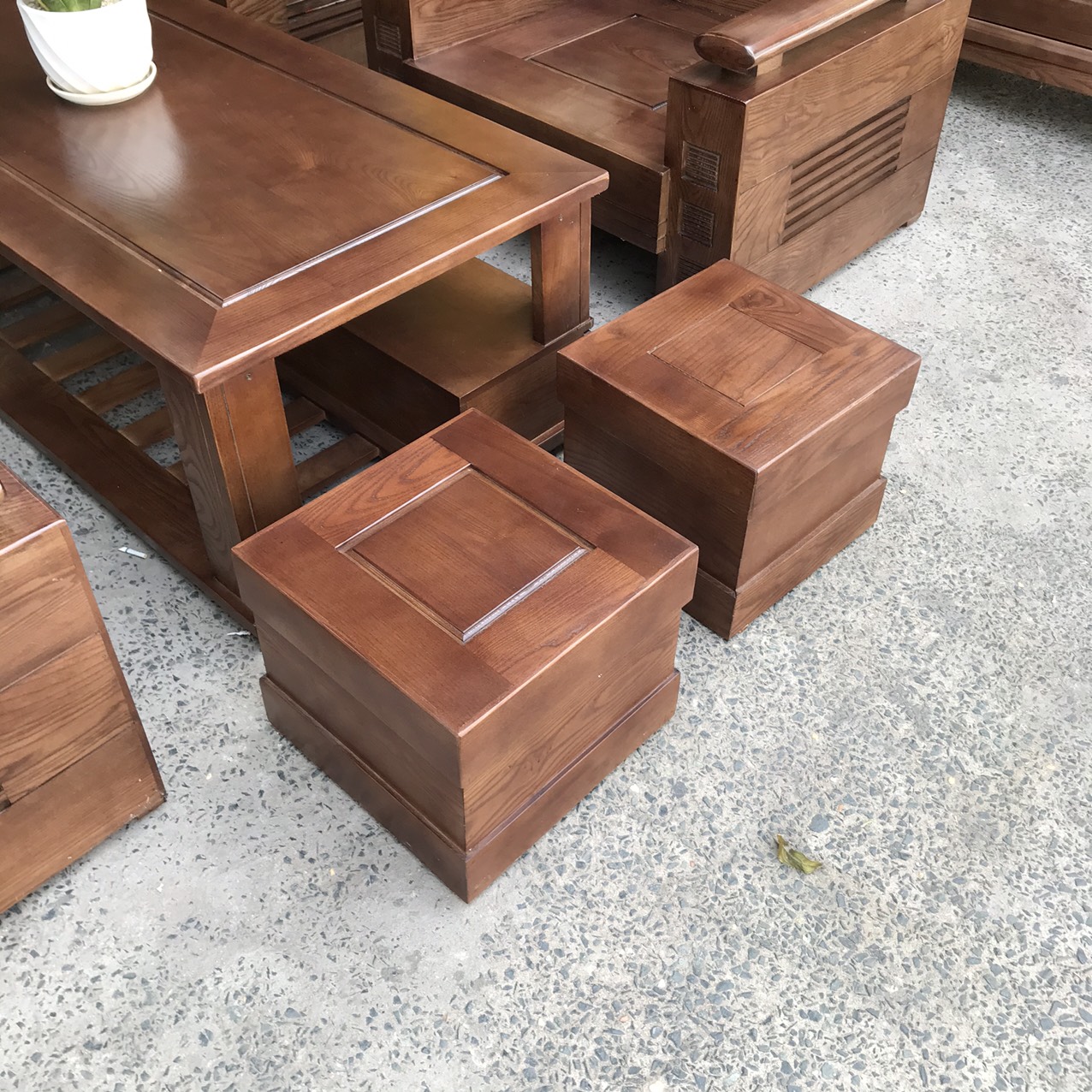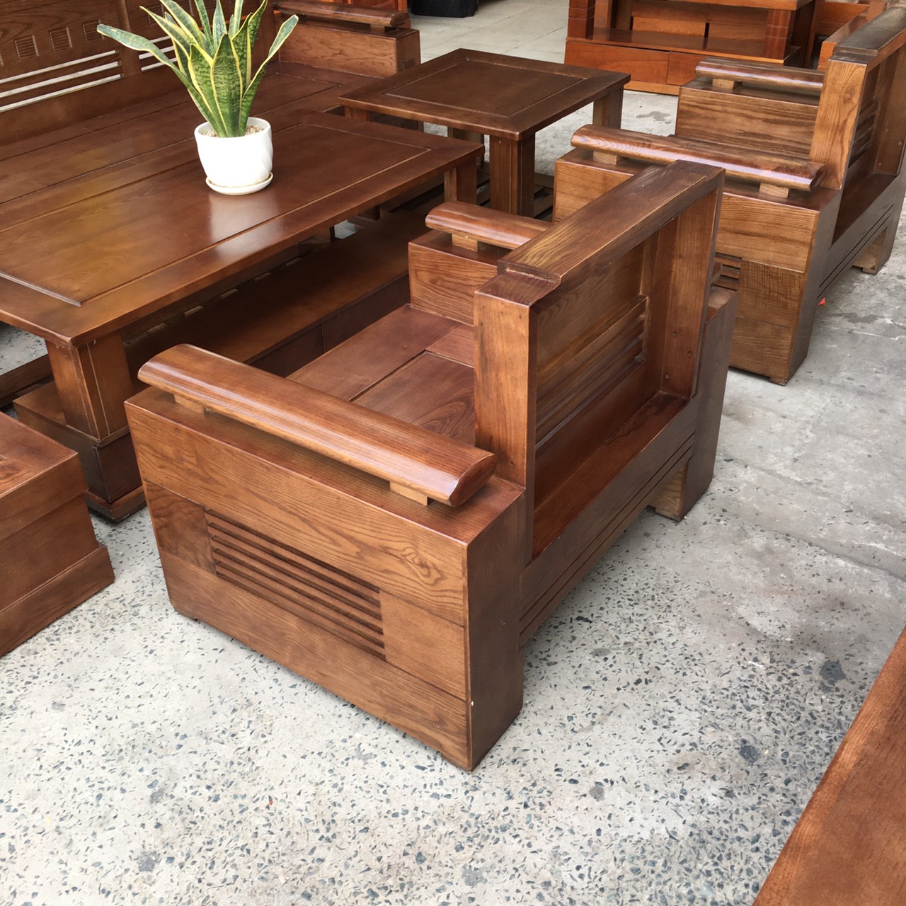 Bàn Ghế Sofa Gỗ Sồi Nga Lau Màu Óc Chó